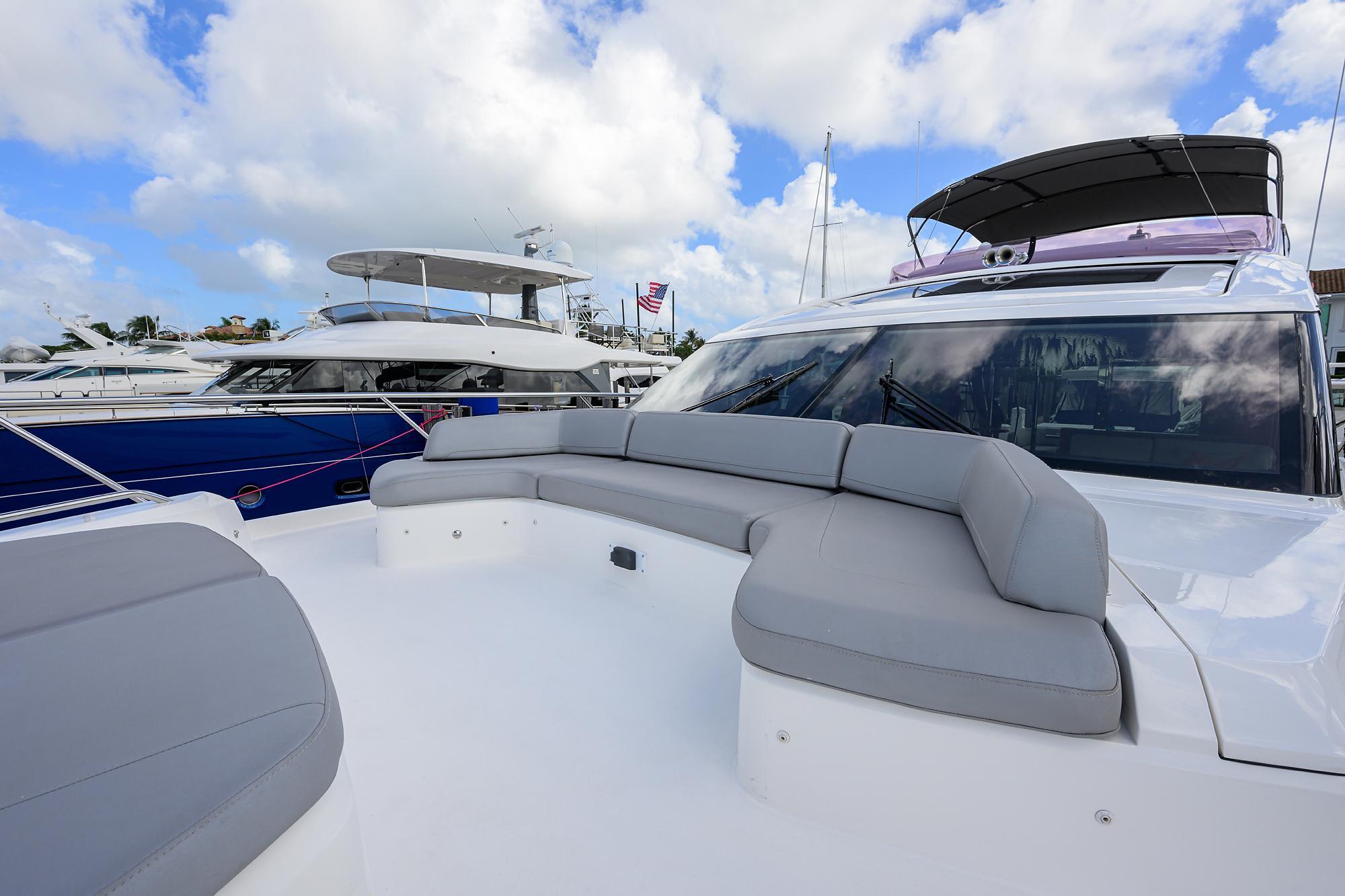 Upgraded upholstery for all exterior cushions including sport bridge cockpit and foredeck sunpad