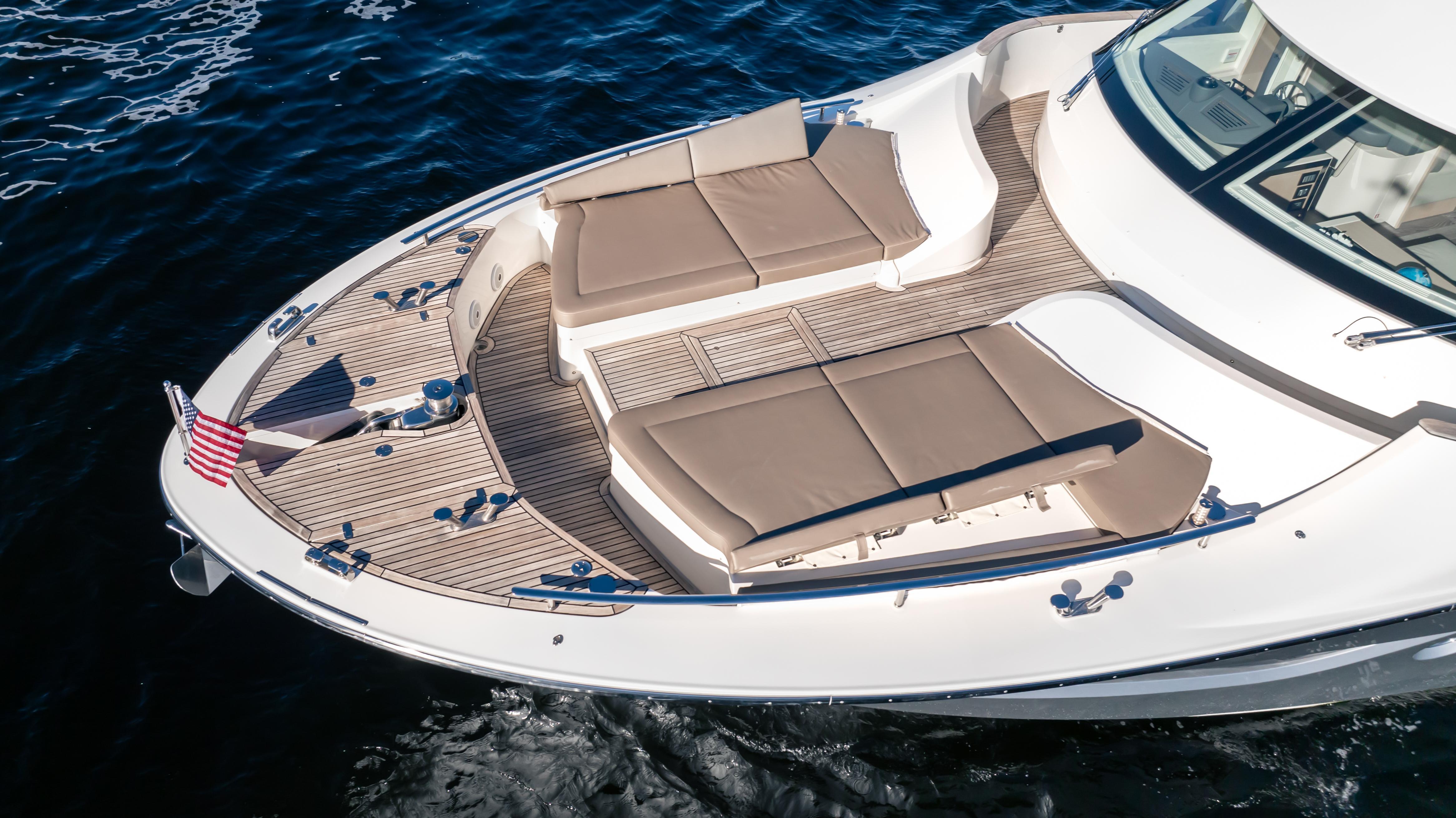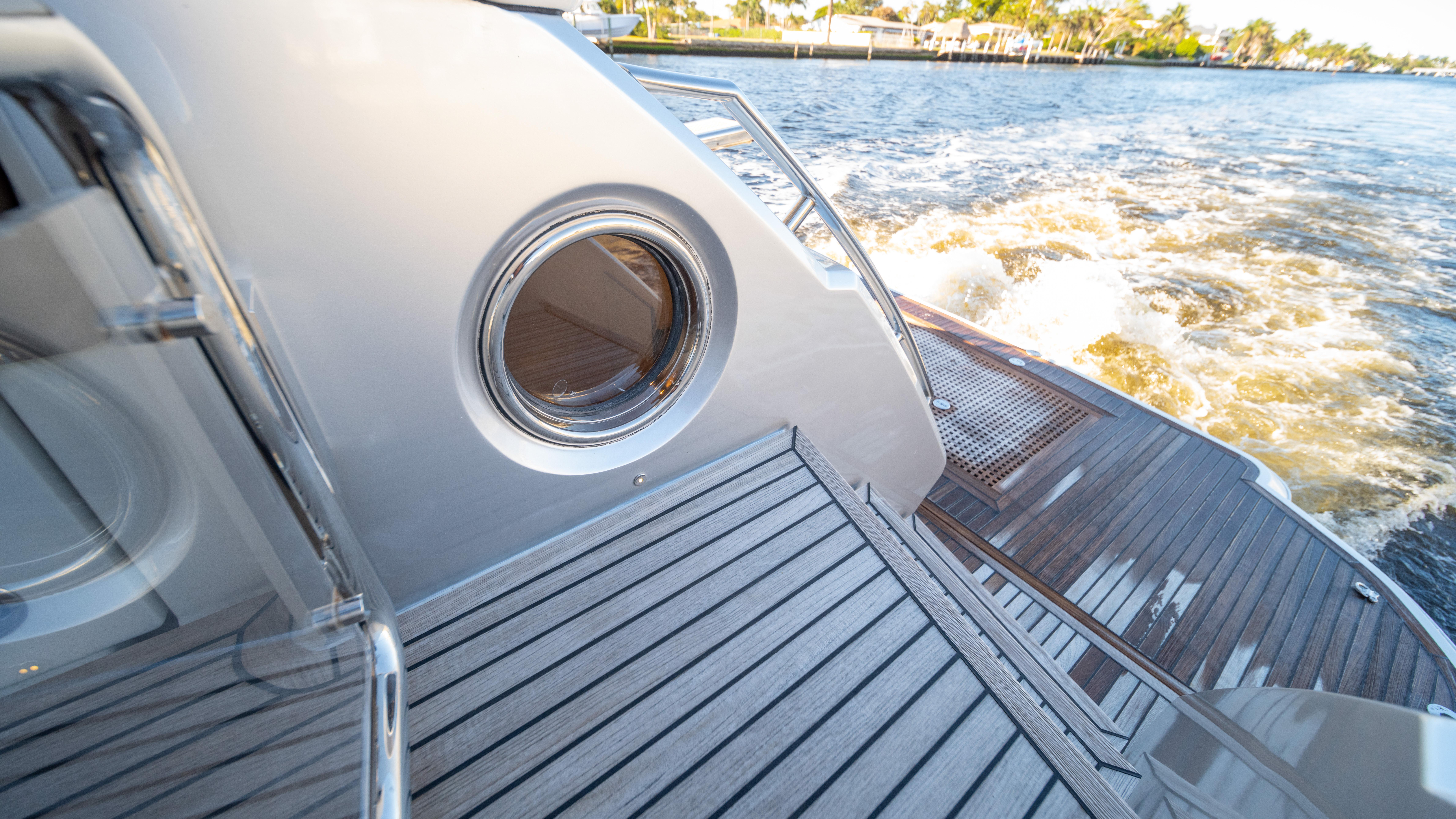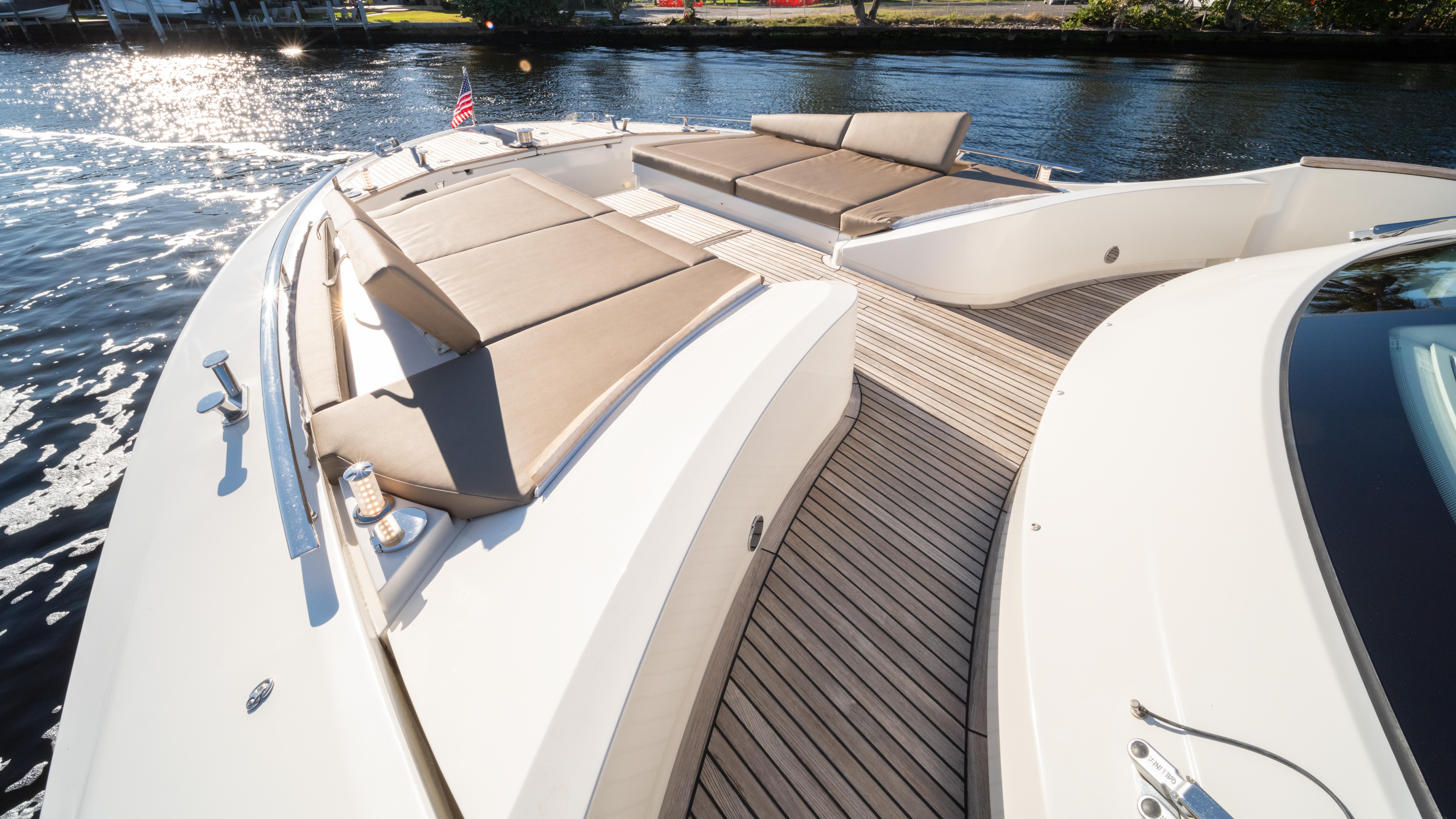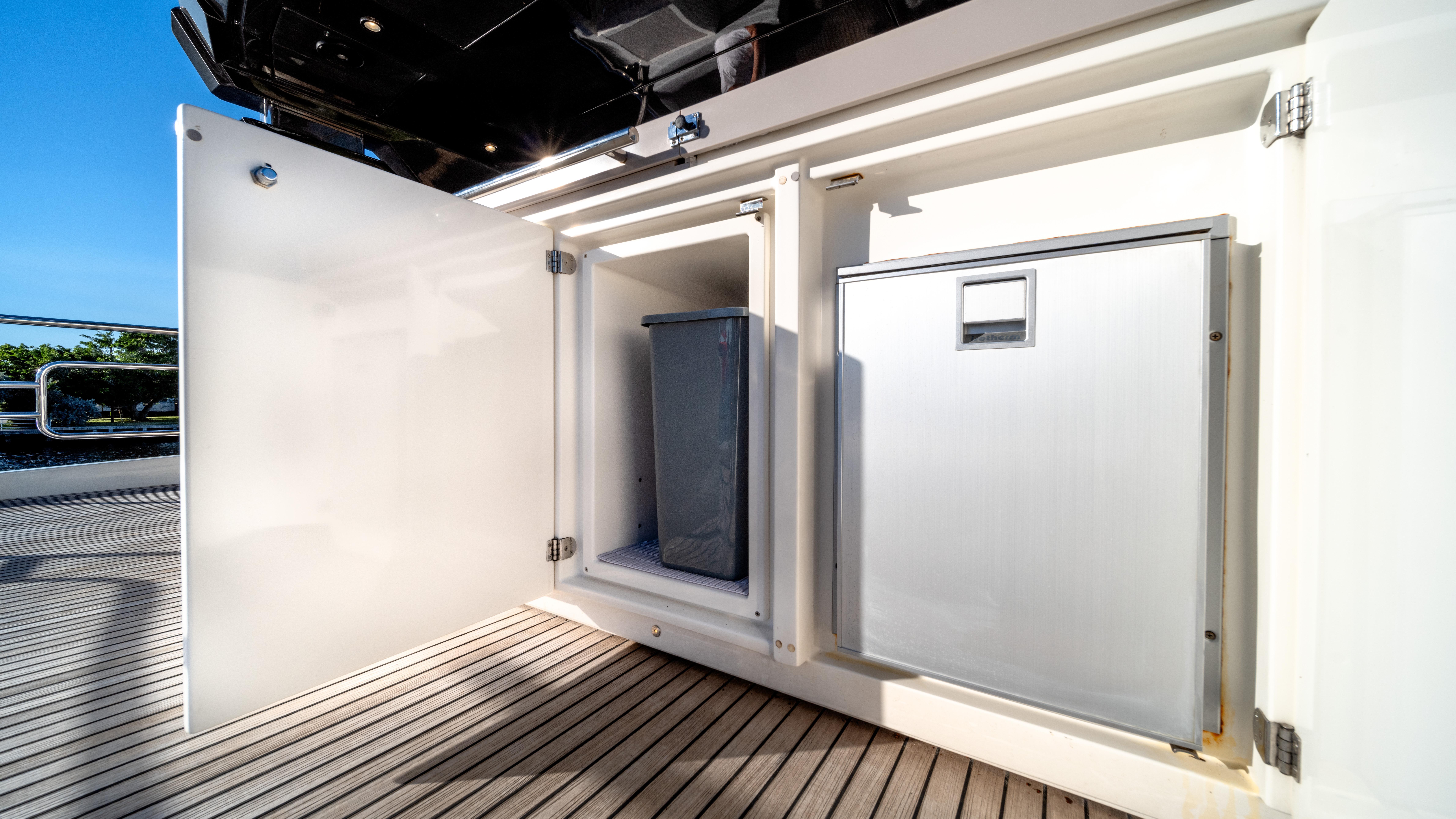 The bulwarks’ wide breaches enable a significant increase in terms of internal volumes and exposure to light. This is particularly highlighted on the main deck where the saloon presents an open space in between the galley aft and the living area located forward.