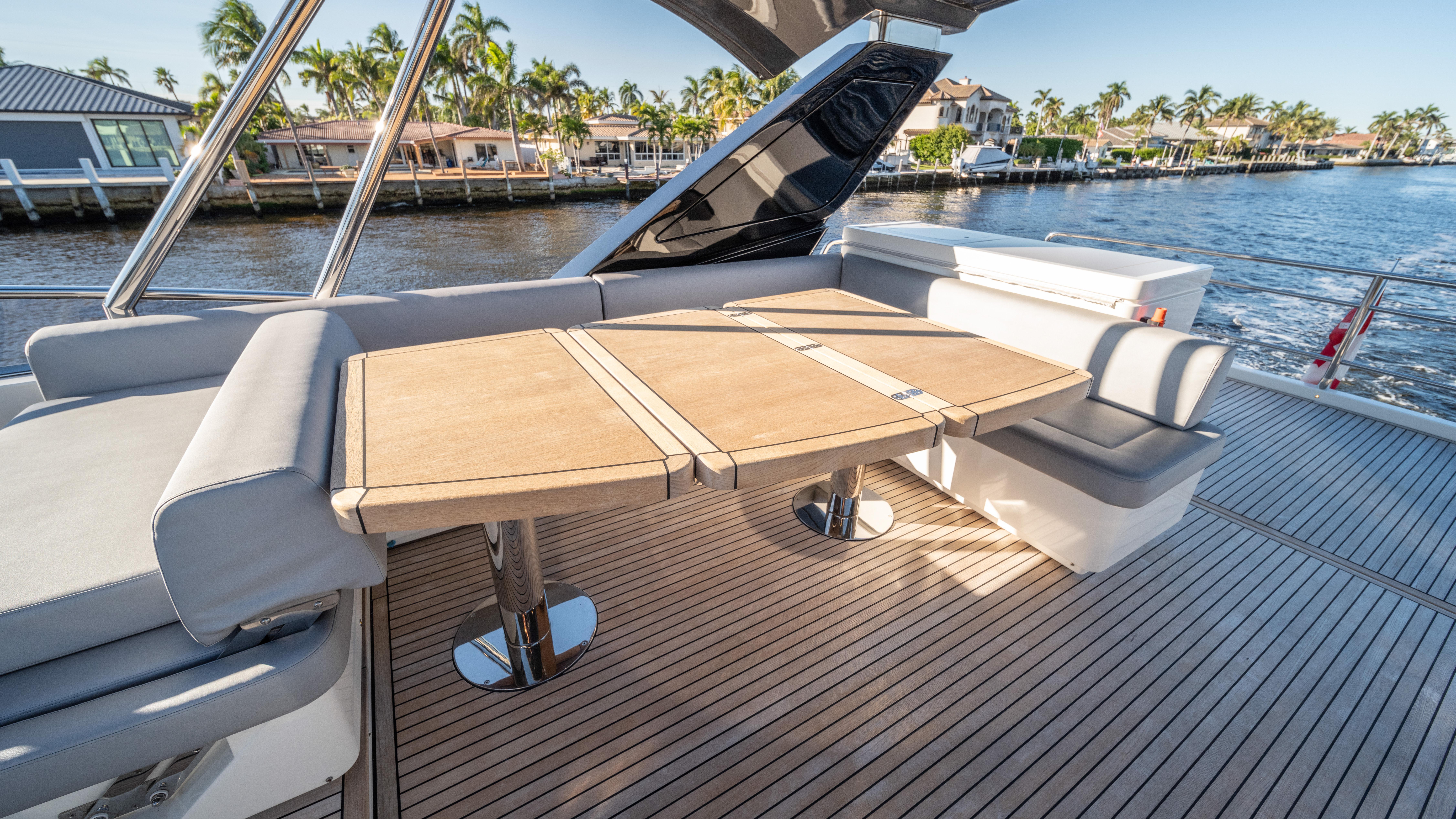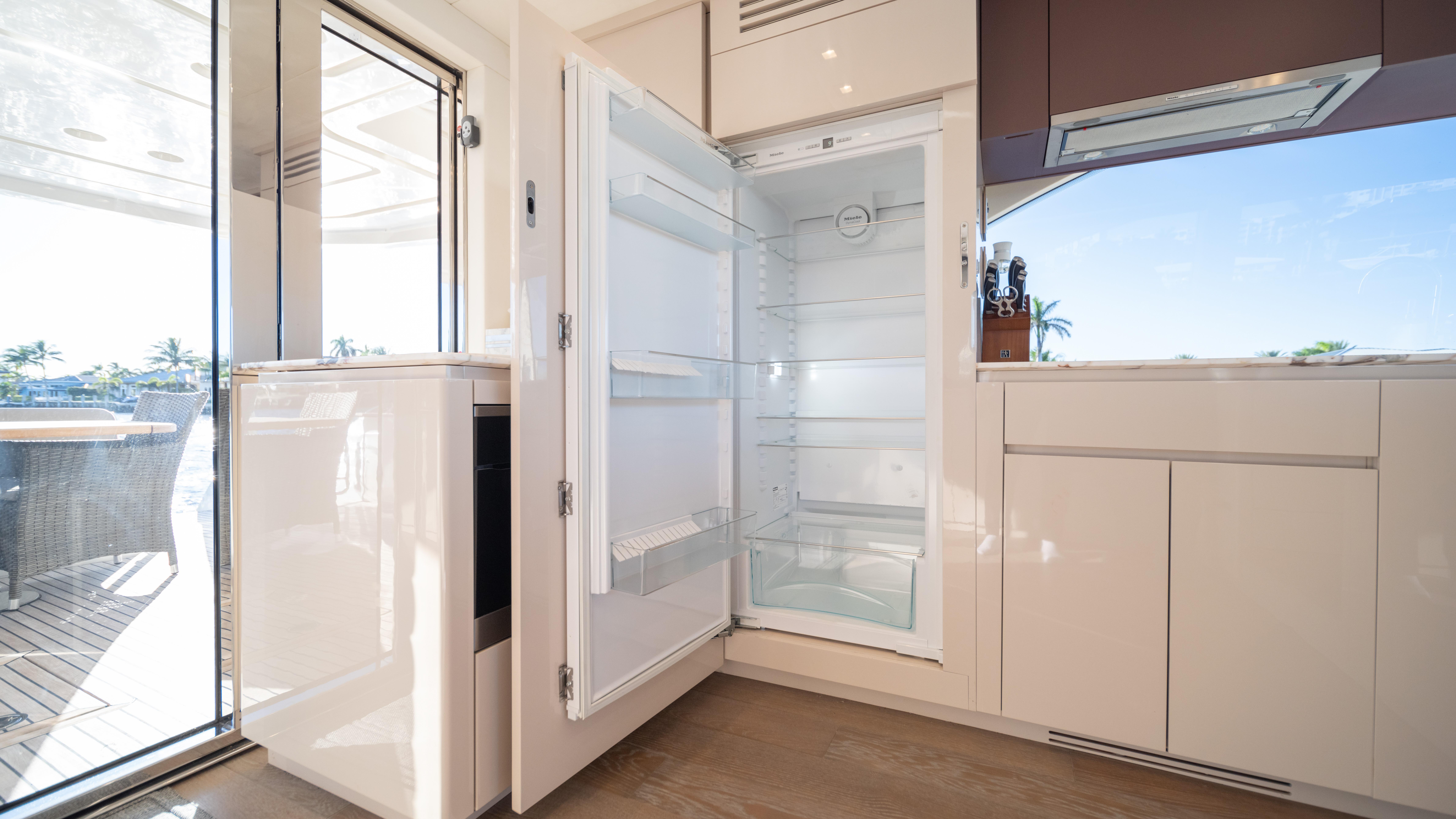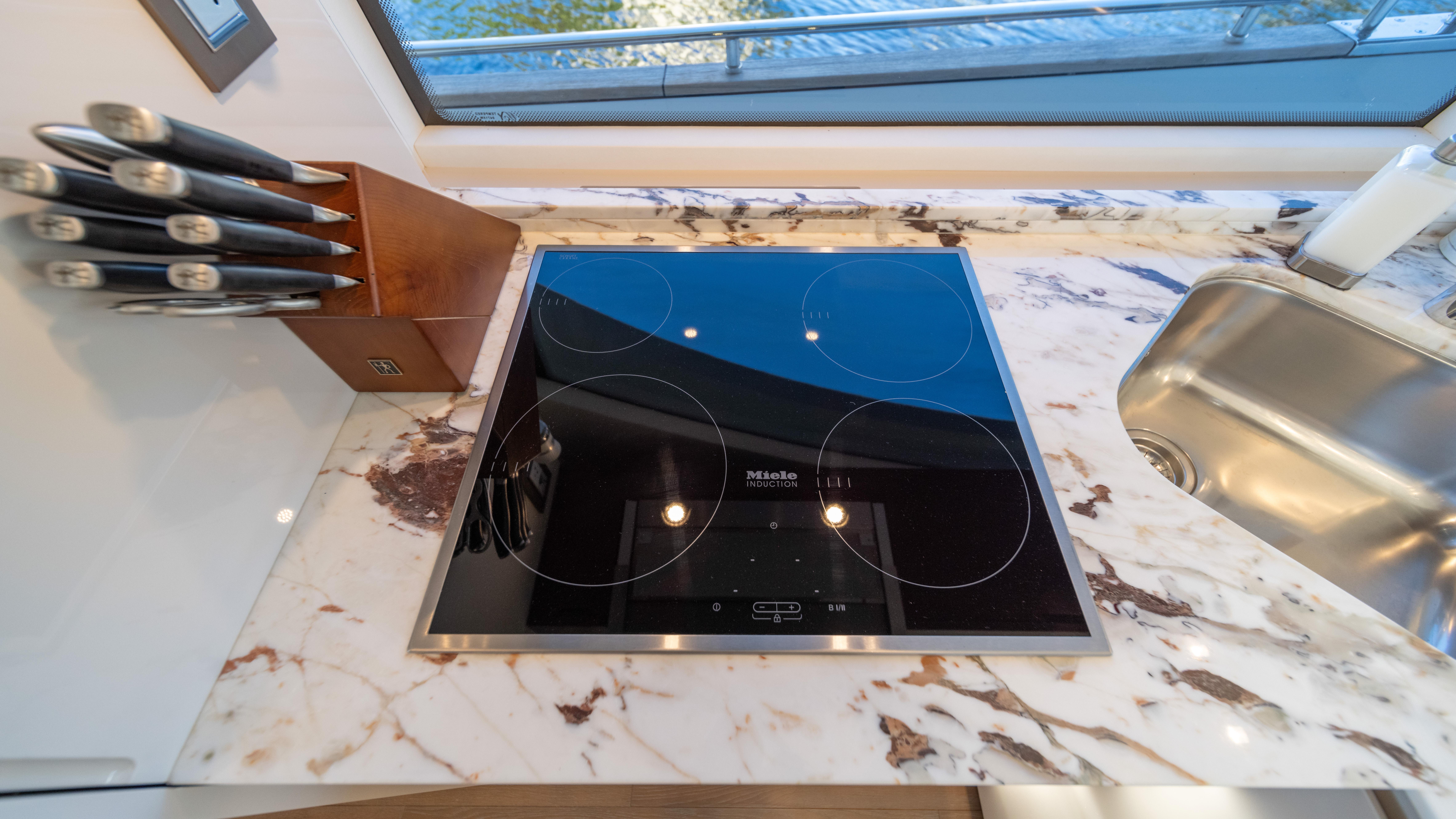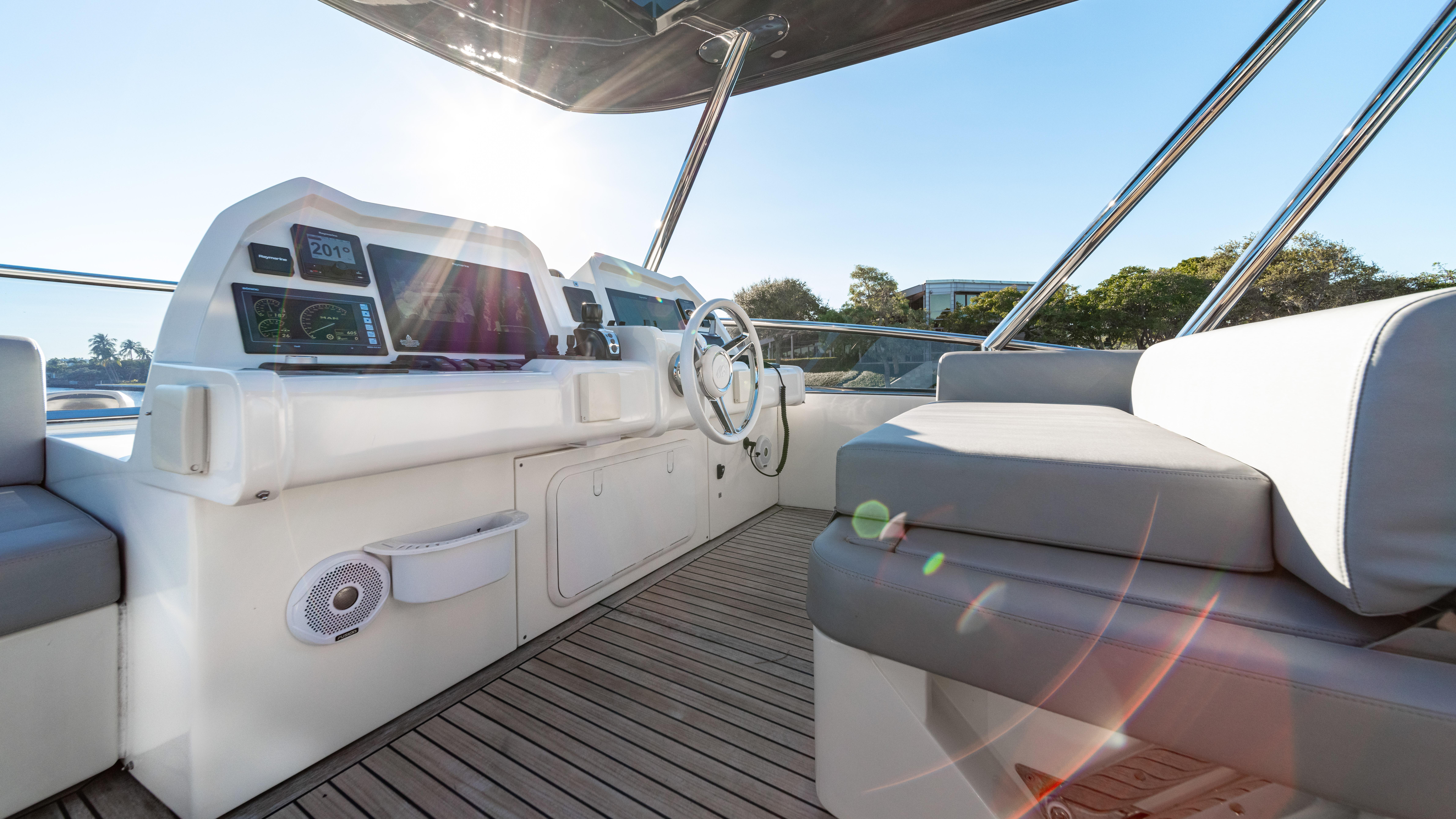 The MCY 66’s unique and sophisticated modern decor is a striking feature throughout the main saloon and all the cabins. High-end fabrics, natural stones and Italian leathers are just a few of the superior materials available on this yacht. Elegant glossy marble elements enriched by a light touch of copper are key defining features of the new MCY 66 interior design. The use of reflective materials, mirrors and lacquered wood, in combination with wide lateral windows enhance the brightness of natural light. In order to satisfy the owner’s needs and wishes, Monte Carlo Yachts offers complete customization of all interior design and layout features.