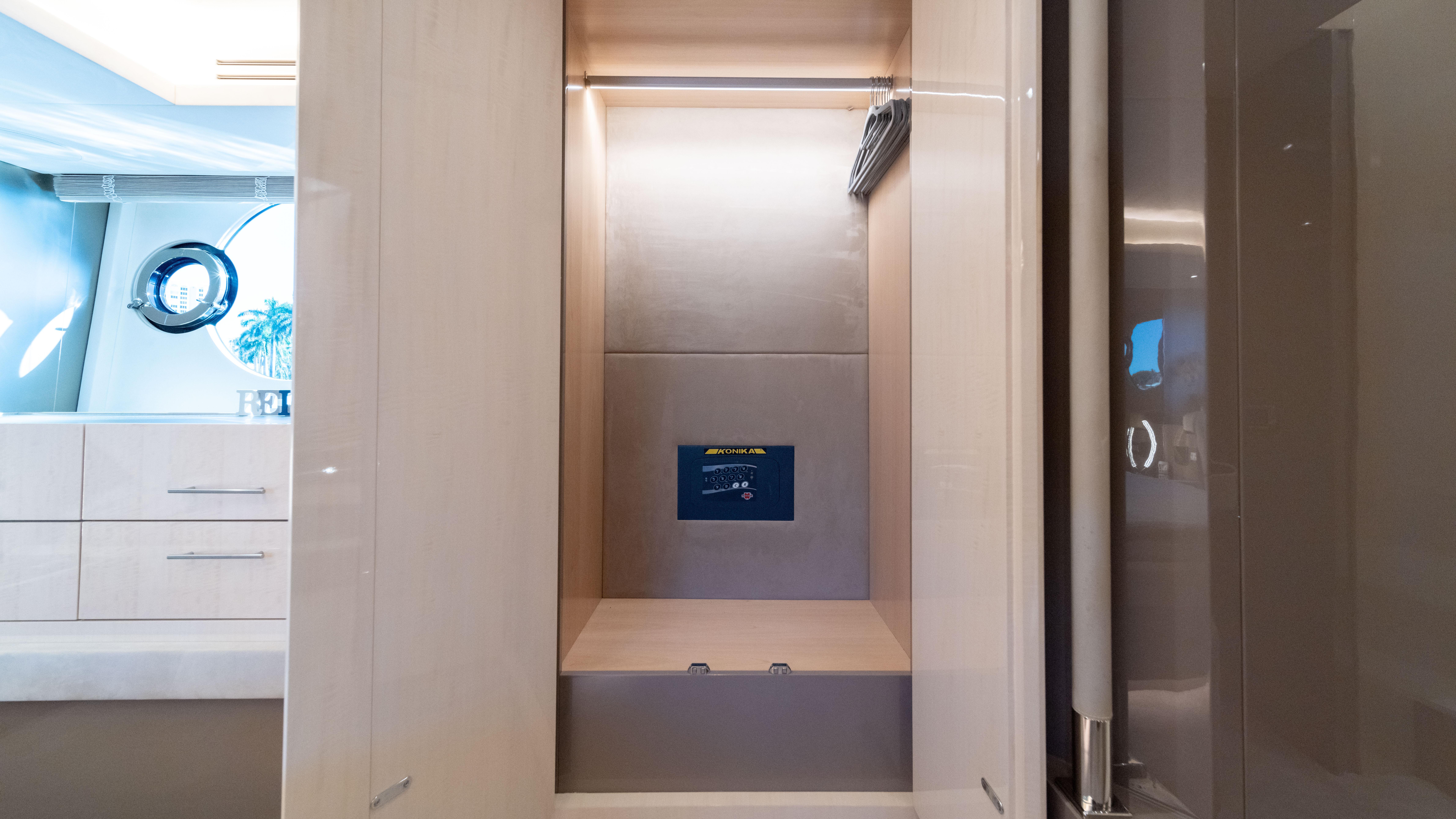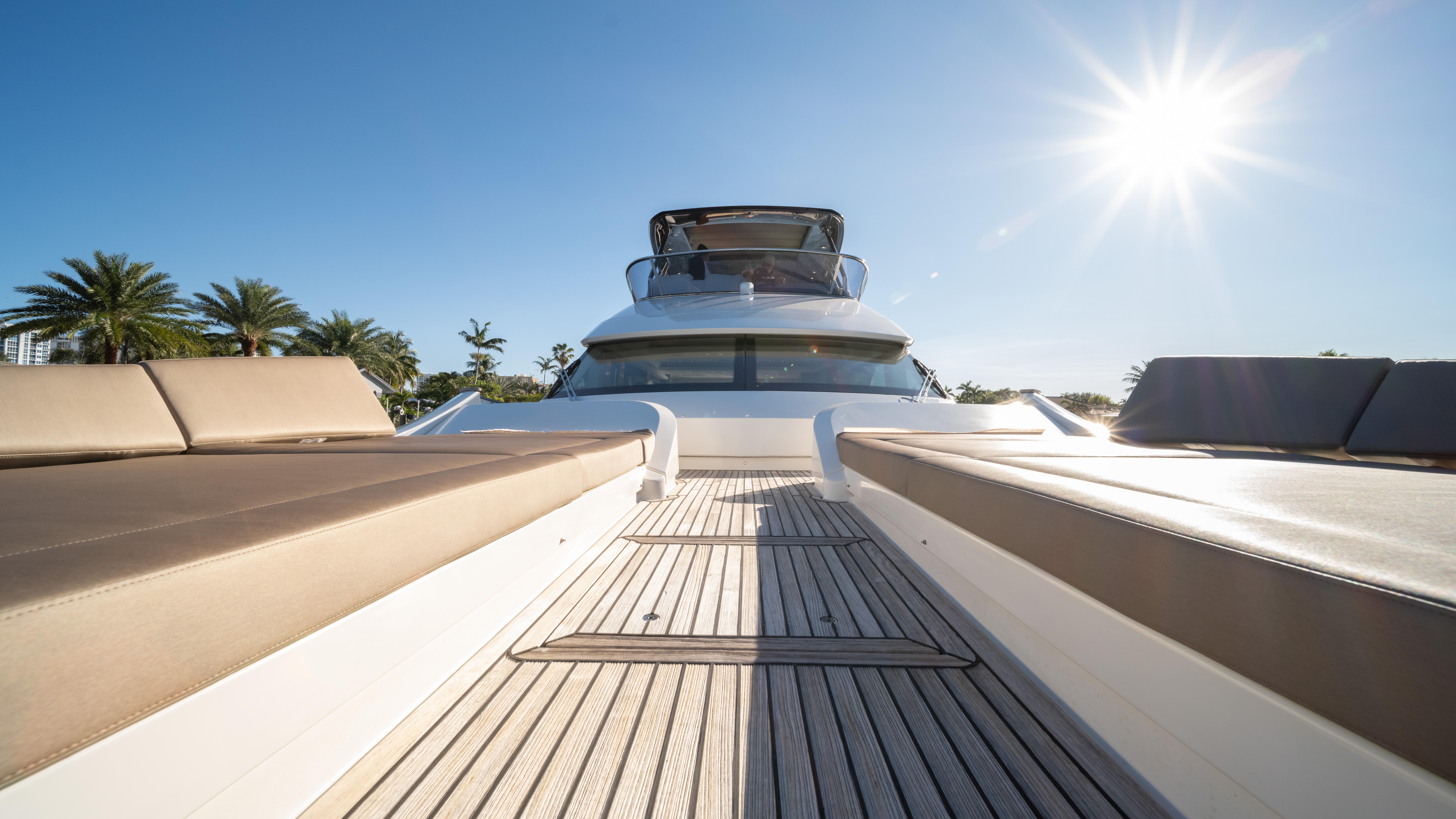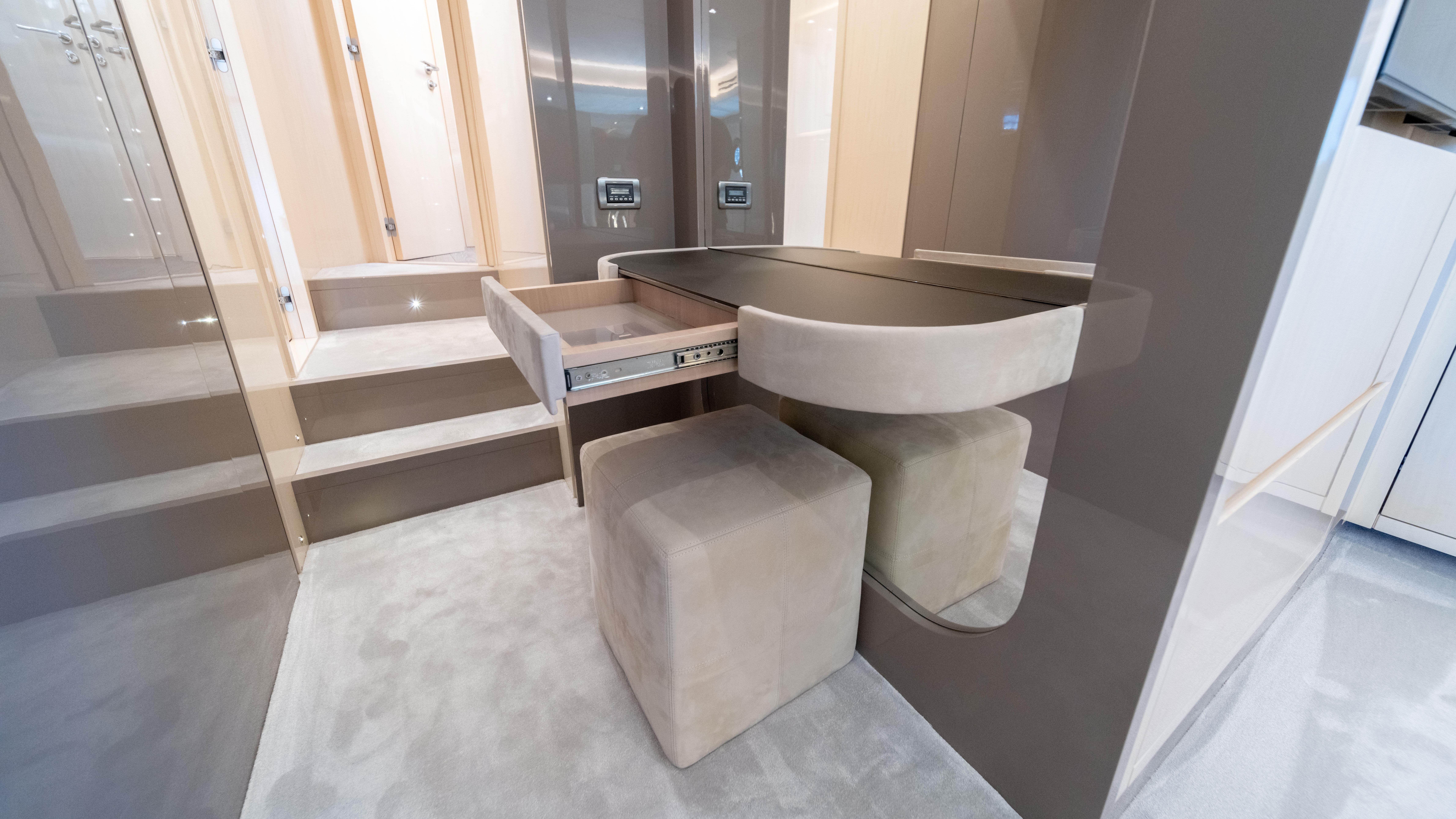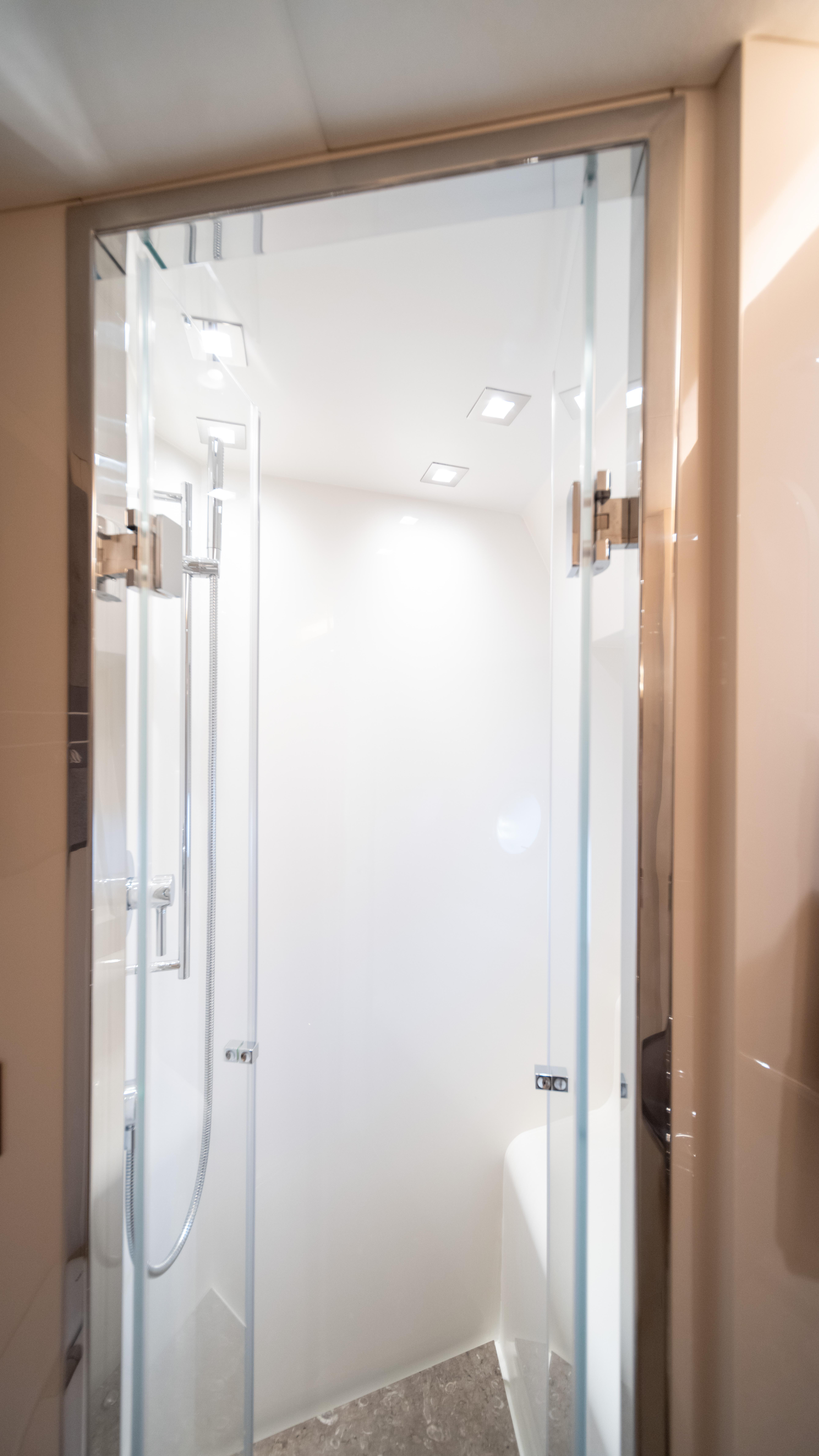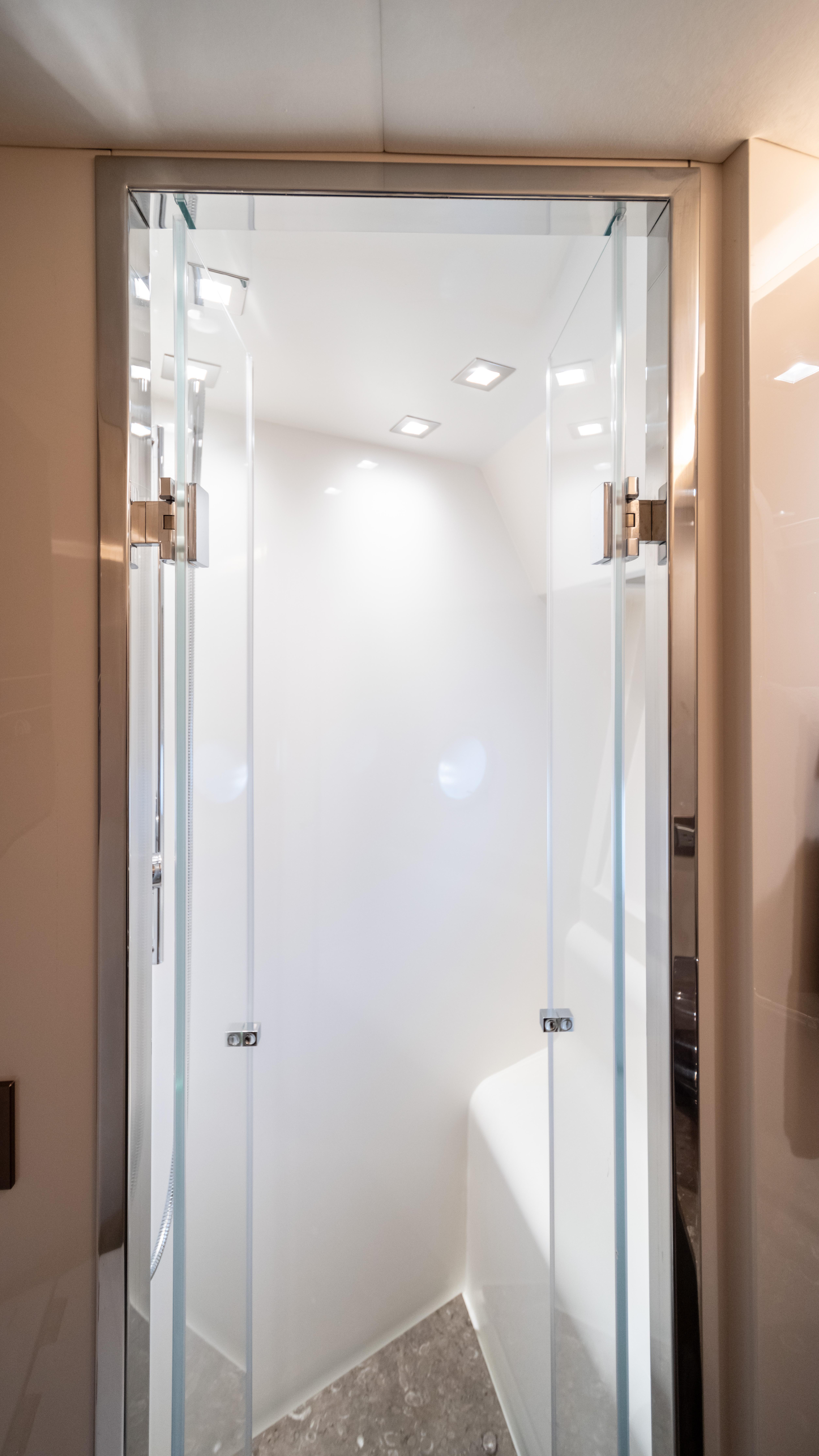 The MCY 66 features incredible internal spaces for a yacht in its size category. The additional bow portholes give the yacht an extended external appearance and provide higher exposure to natural light throughout the VIP cabin. The enlarged MCY’ iconic porthole enhances the intimate and relaxing feeling of the owner cabin. The guests’ cabins with their dedicated bathrooms follow the spacious volumes common to the other areas of this new model.