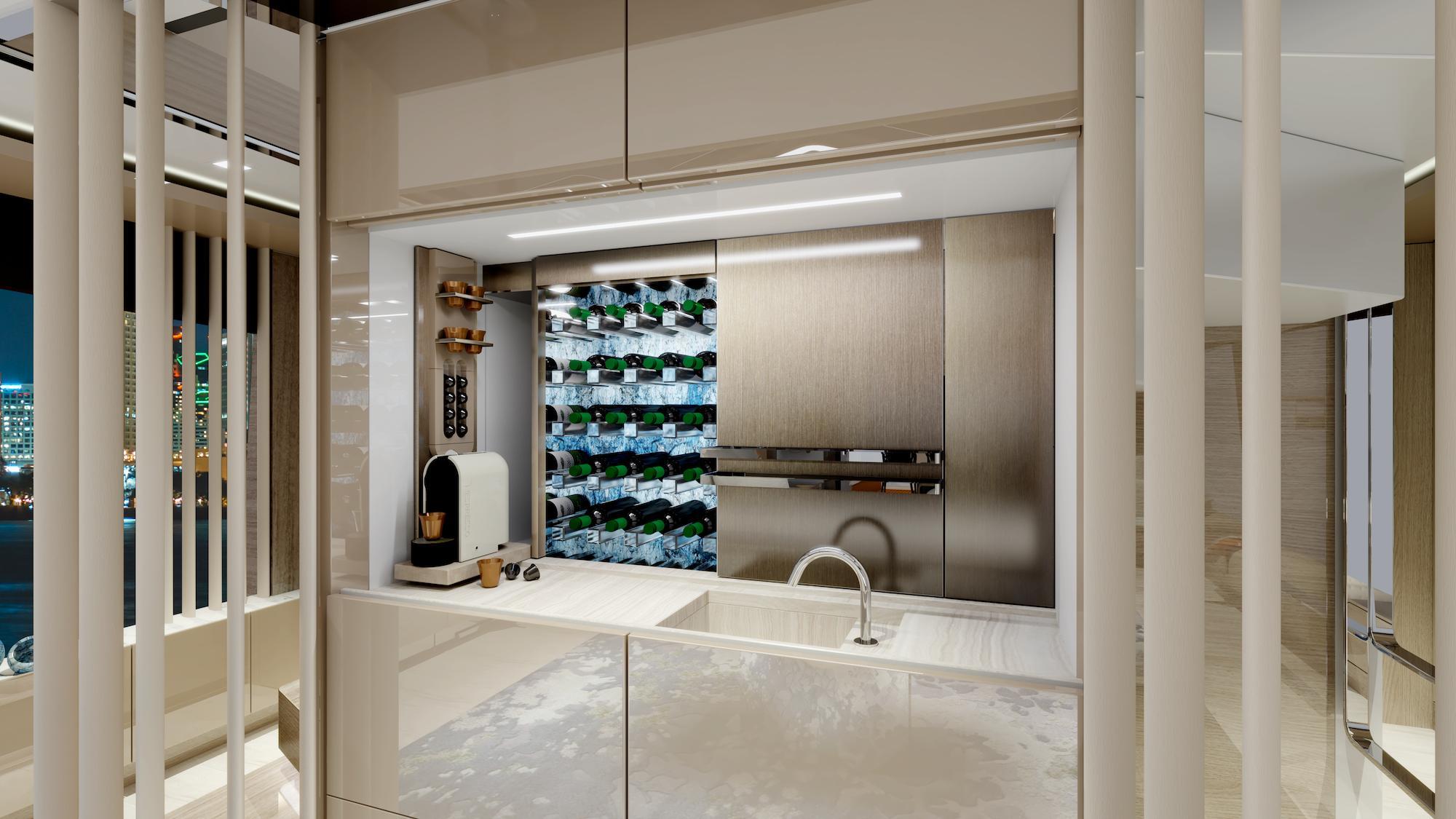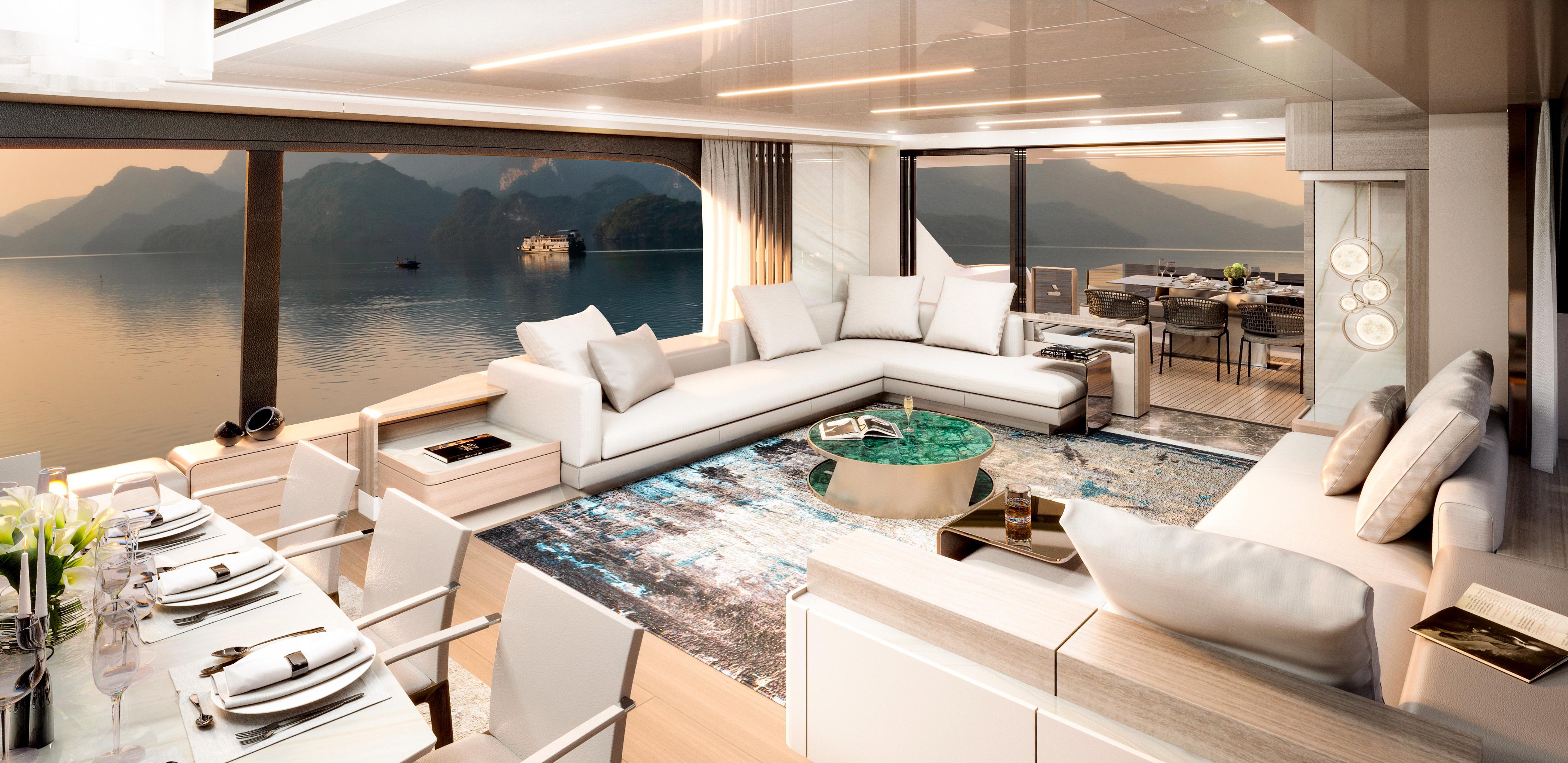 When combined with the 21 sqm multipurpose cockpit, the Beach Club transforms into a stunning, open space designed for relaxation, watersports, and entertainment—bringing the ultimate seaside experience to life.