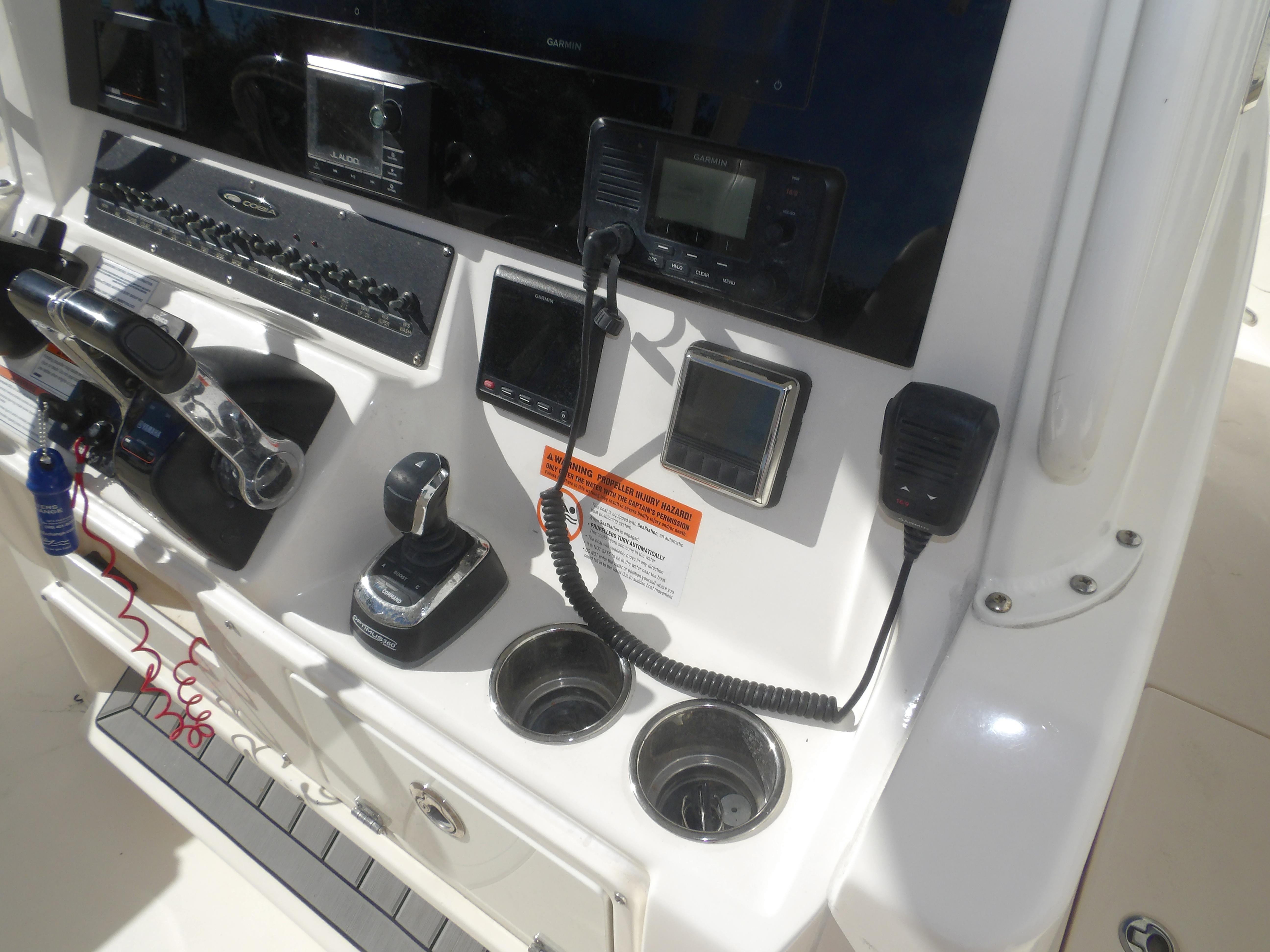 2020 Cobia 320 Center Console with Twin Yamaha 300'sWith an overall length of 32, a beam of 10'3" and a 275 gallon fuel capacity, the 320 CC is a spacious, big water hull capable of long range trips that can still be comfortably trailered. Designed for the discerning family fisherman, the 320 CC blends a tournament ready layout with the elegance, comfort and style of a cruiser. Serious anglers will appreciate the large unobstructed cockpit, a tackle center with sink and bait prep area big enough for all your terminal tackle and baits, under-gunwale rod storage, macerated in-deck fish boxes, and twin pressurized livewells that combine for a 70 gallon capacity. But the 320 CC is much more than a hardcore fishing machine. With elegant front seating, an electric bow table, inward opening side door, spacious walk-down forward entry head with 6'2" of headroom and optional integrated windshield, this boat puts a premium on riding in luxury and style. There is a drop-in helm pod big enough to fit dual 16" multi-function displays and a full compliment of electronics. Combine all of this with the 320 CC hull's top of class ride and the 320 CC is sure to be a stunner whether on the trolling grounds or at the marina.Optimus 360 JoystickTwin Garmin GPS with RadarFLIR Night VisionGarmin VHS with AISJL Audio SystemOutriggersRigged for DownriggersFull HeadElectronic Flush Mount Bow TableGarmin Auto-PilotTons of StorageTwo 35 Gallon LivewellsCall for your exclusive showing of this fabulous fishing machine!