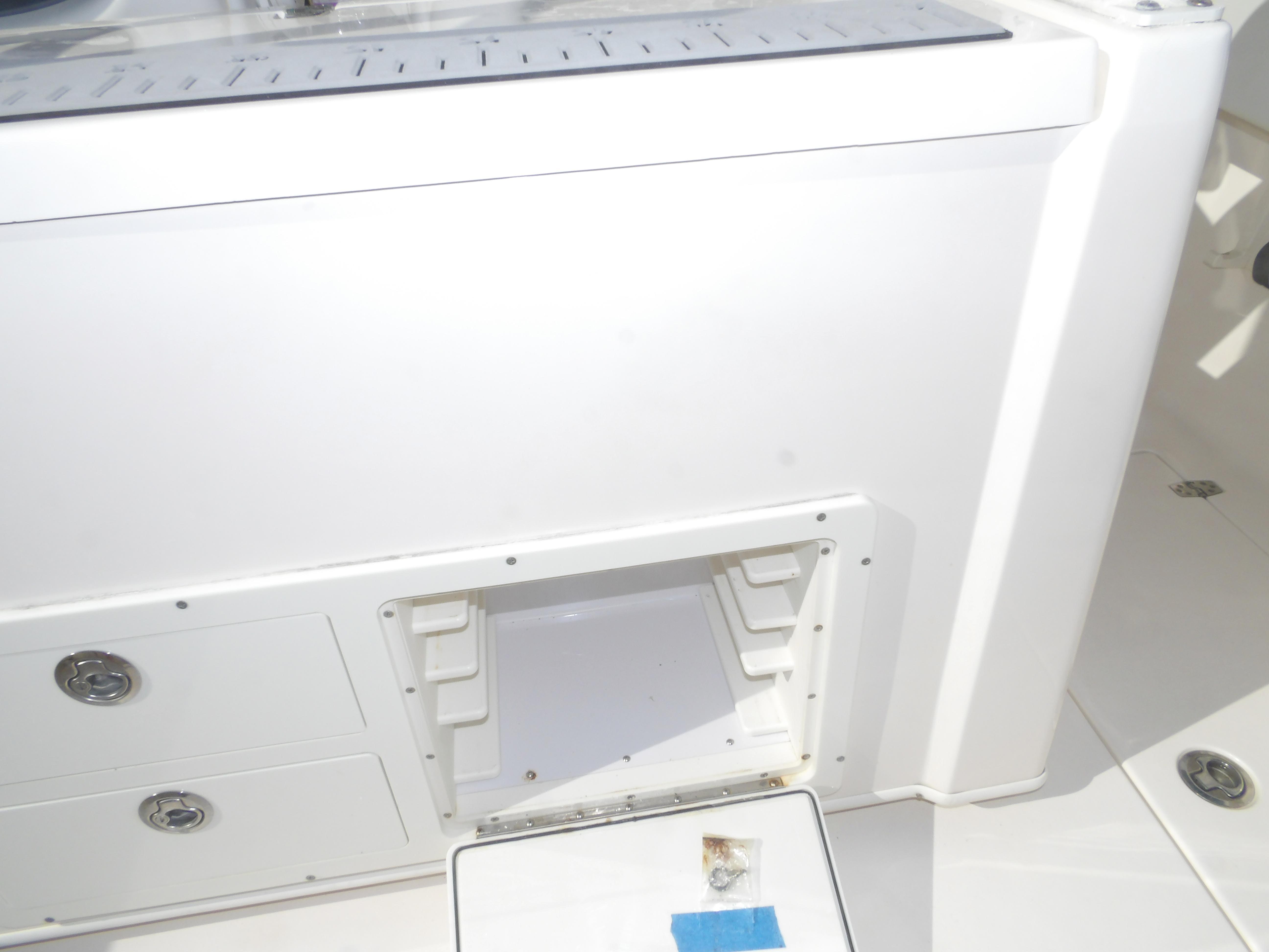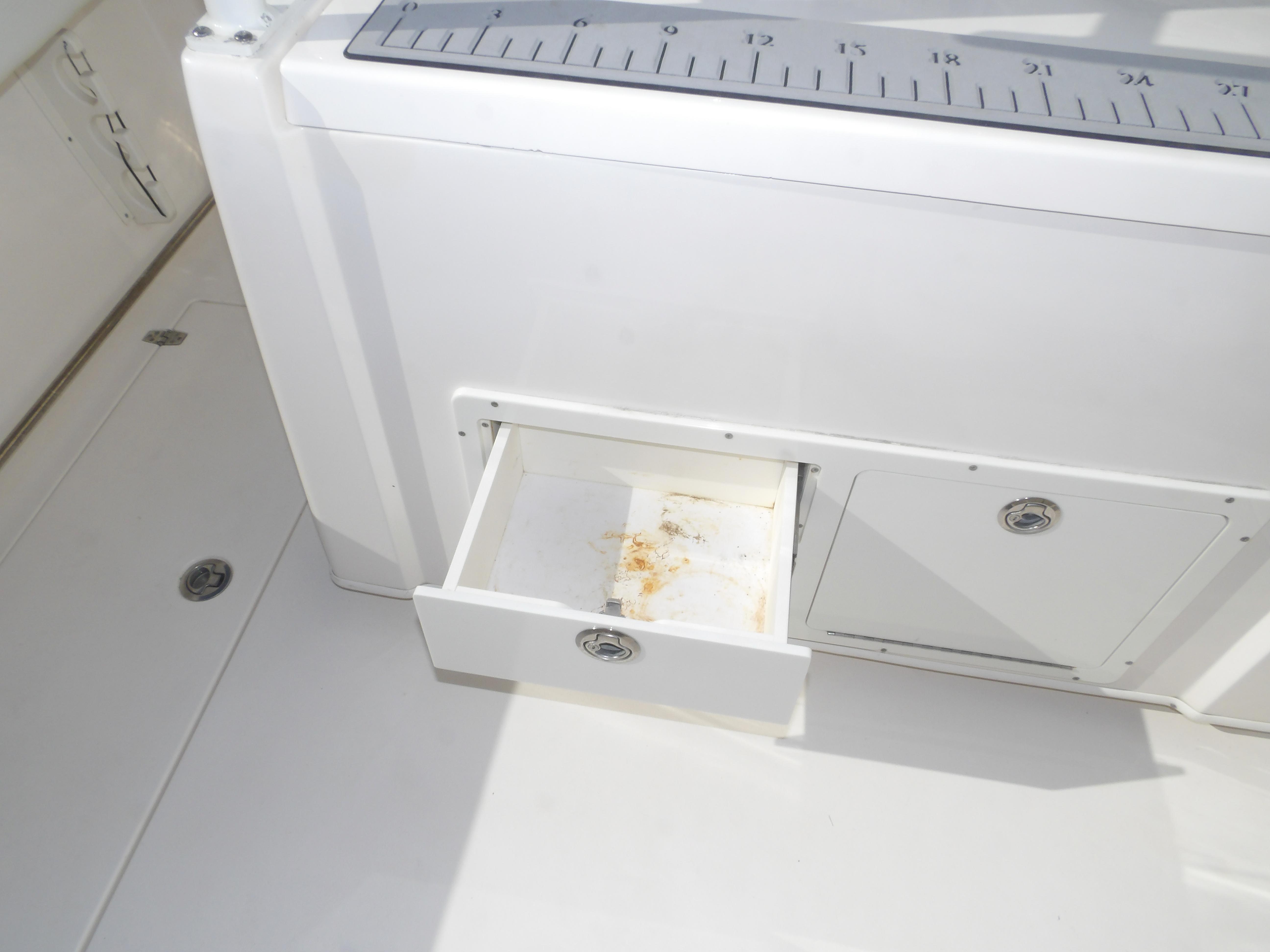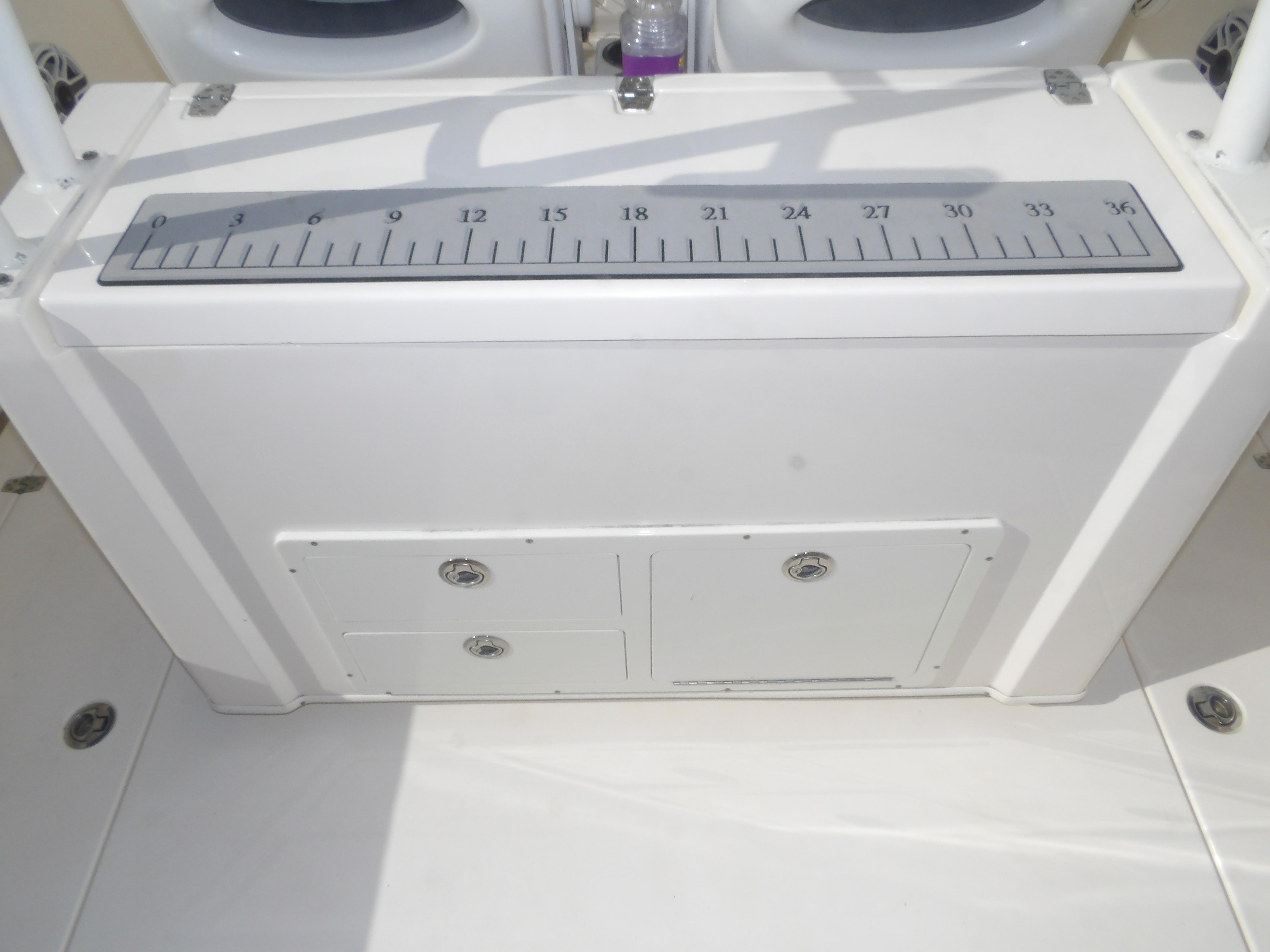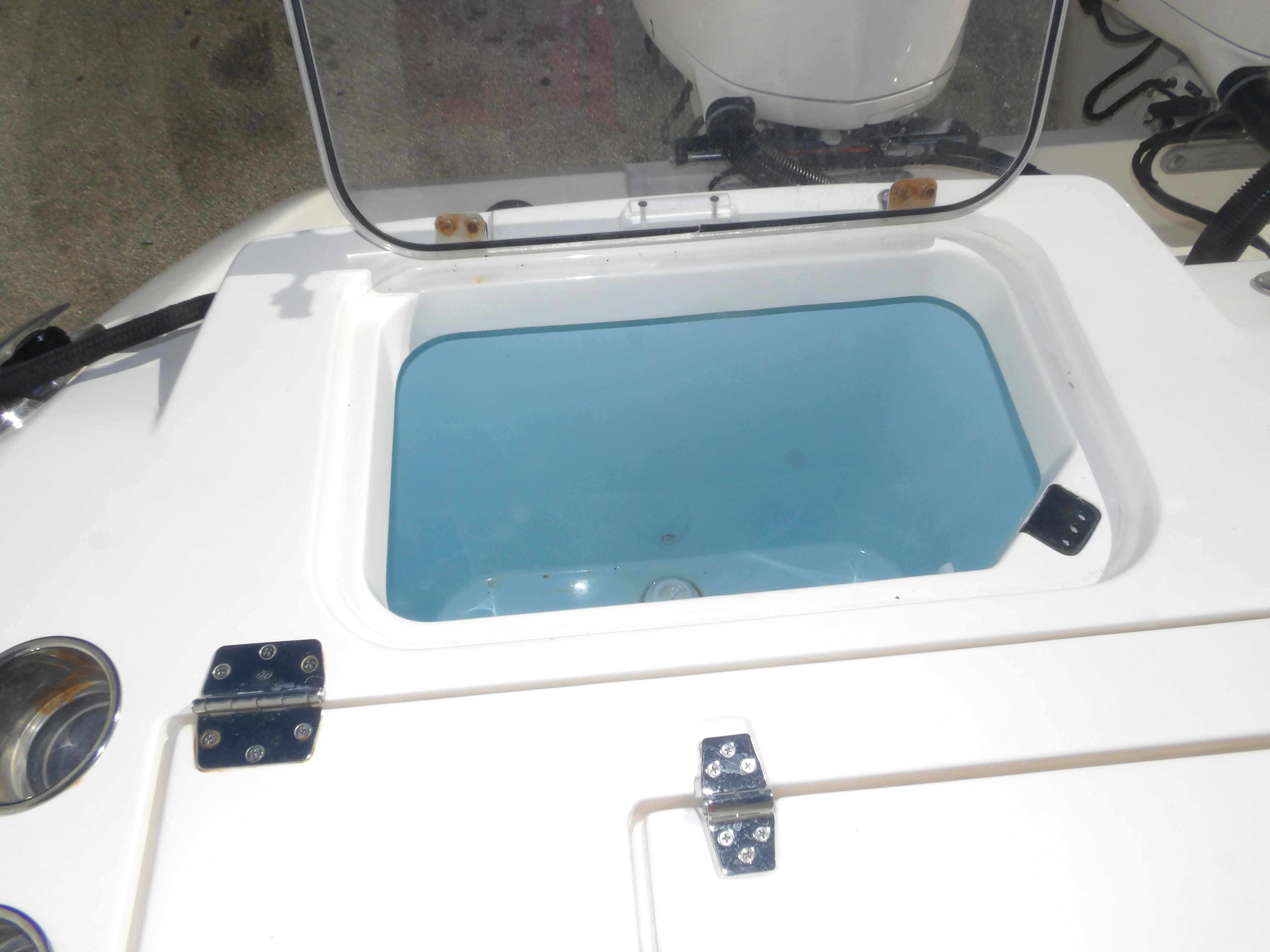 Storage capacity for live bait and the catch is also generous. Twin 55-gallon macerated fish boxes sit below deck in the cockpit, and a pair of 35-gallon livewells, insulated and pressurized, on the transom double the bait supply or enable you to carry two types of live bait. Clear lids make it easy to keep tabs on the bait throughout the day and the sea chest supplying the intake ensures a constant flow of seawater.
