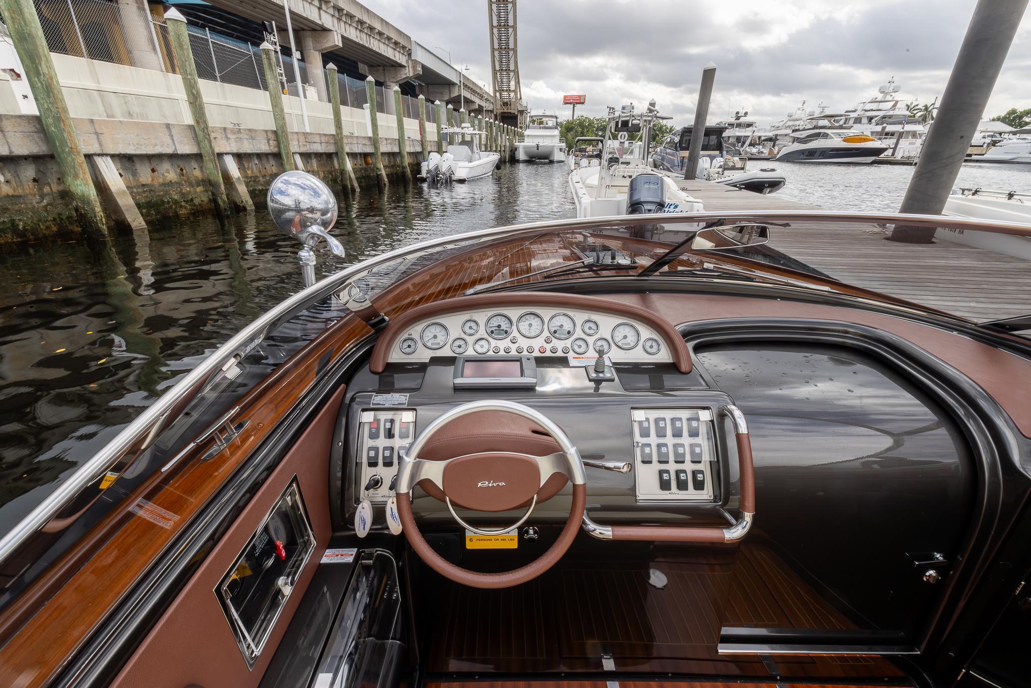The Aquariva Super, a symbol of "Made in Italy" quality as well as craftsmanship, represents the most natural evolution of Riva style from past to present. Its soft, elegant lines reflect a taste for tradition and the value of elegance. Beautifully carved wooden decks and leather trimmings of the dashboard and helm highlight the pleasure of cruising in a timeless classic offering unique, incomparable emotions and comfort. The stainless steel details are masterpieces of design: the air intake, the bow nose is hand-molded on each boat. Even the search light, a hallmark of Riva, is made up of more than 200 parts. The mahogany deck realized with maple inserts obtained from solid wood is protected by 18 hands of varnish. The automatic gear box with the electronic 2-speed control improves the acceleration throughout the lower RPM range and optimizes the top speed.Perfect for coastal cruising or day trips, this stunning 33-foot luxury speedboat marries classic design with modern engineering. Combining tradition with contemporary performance, the Aquariva Super continues Riva’s legacy as an icon in the boating world and is guaranteed to stand out in any marina.For more information or to schedule a viewing, please contact us today. Don’t miss out on this rare opportunity to own a piece of Riva’s rich heritage