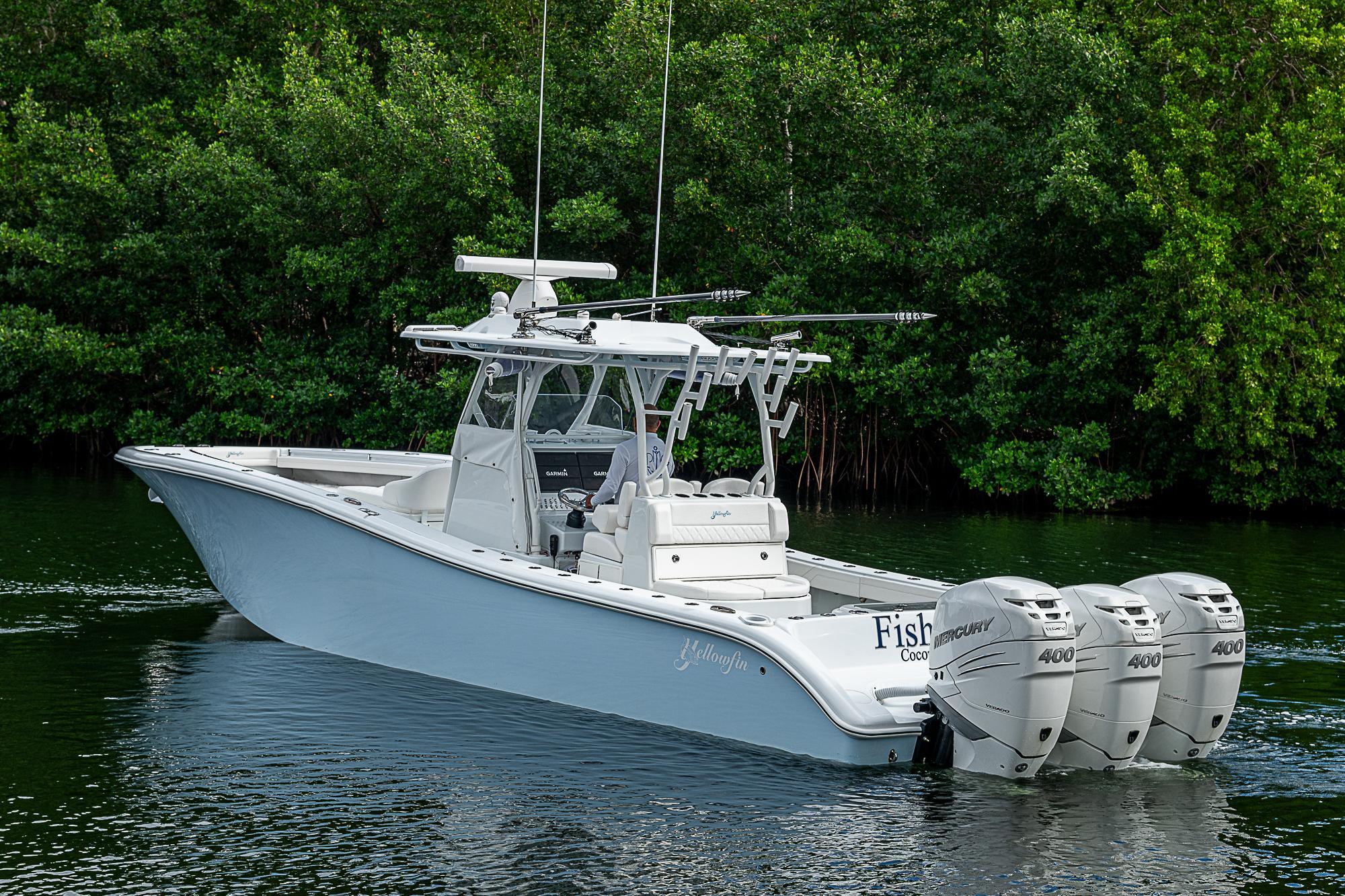 Experience the ultimate blend of power and luxury with this 2021 Yellowfin 36 Center Console. Designed for avid anglers, this vessel combines unmatched performance with premium features. This well maintained boat is ready for its next adventure with fresh service, new upholstery, coffin box, forward seating and console covers offering the perfect platform for offshore fishing or family outings.Aft bench seat included along with the back curved backrest on the coffin box make it a desirable Bahamas runner with her 66mph top speed with her triple 400hp Mercury Verado's with warranty until 5/2026. Triple axle AmeriTrail trailer included.Act now to make this exceptional 36' Yellowfin yours!