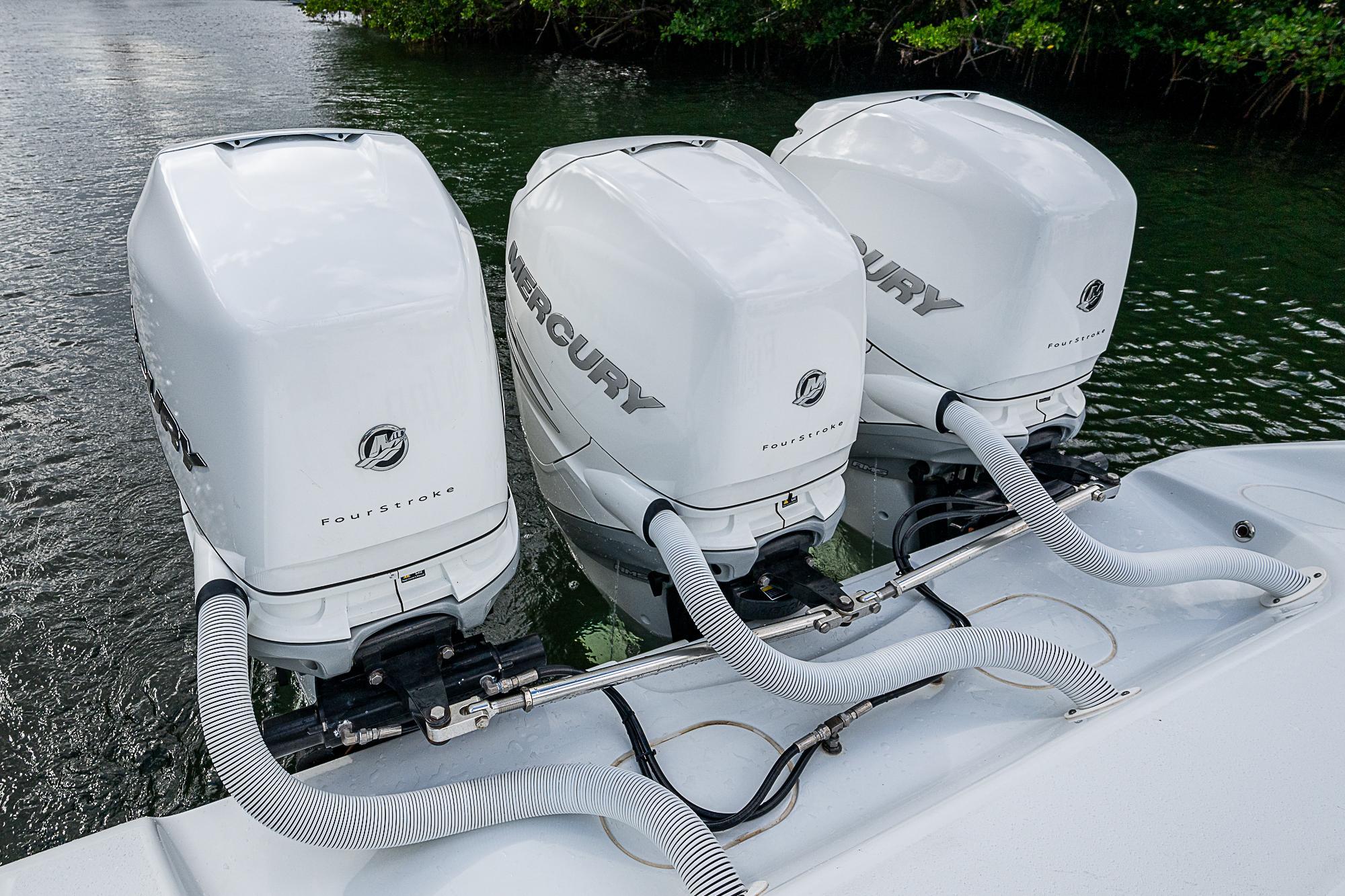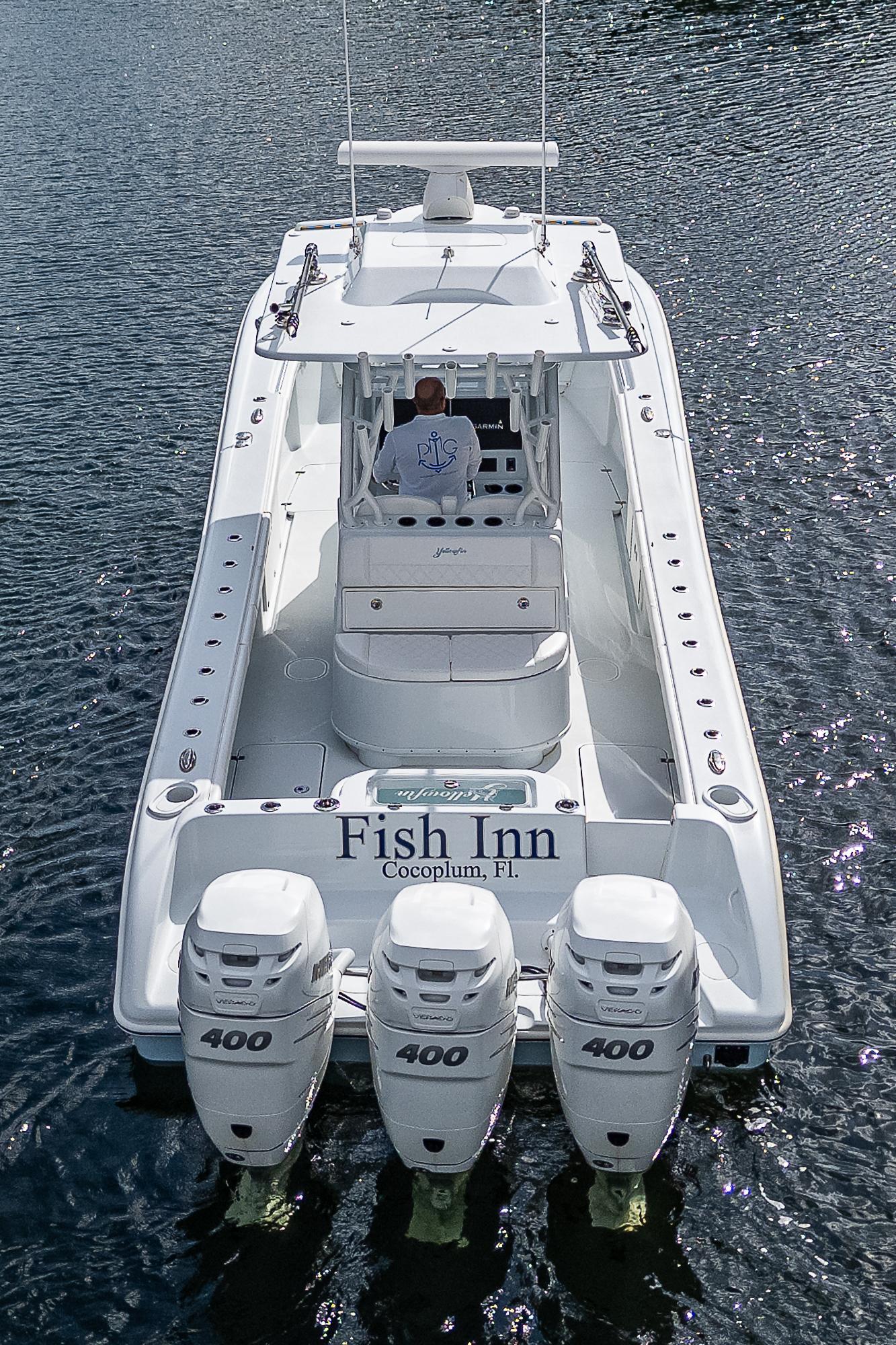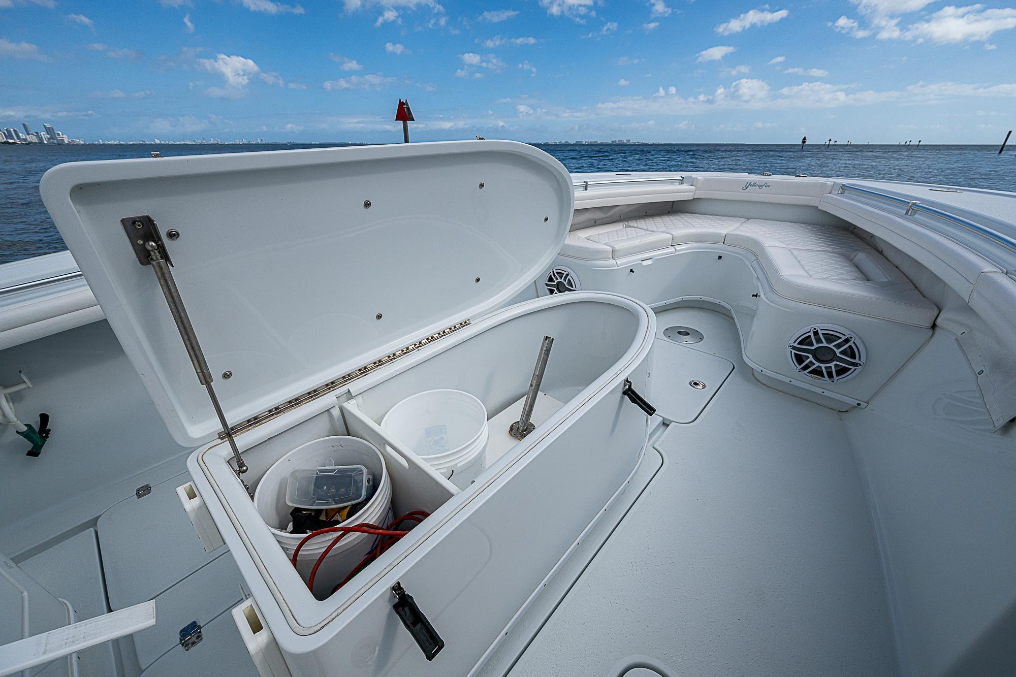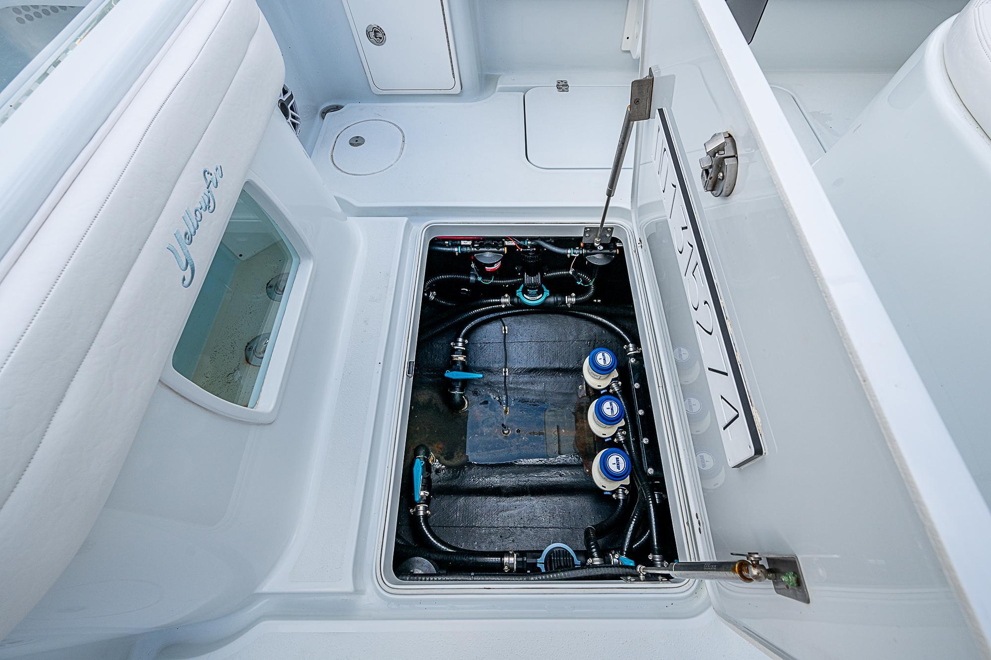 Approximately 50-gallon bait well at the transom aft with another baitwell system aft of the helm and tuna tubes to both port and starboard