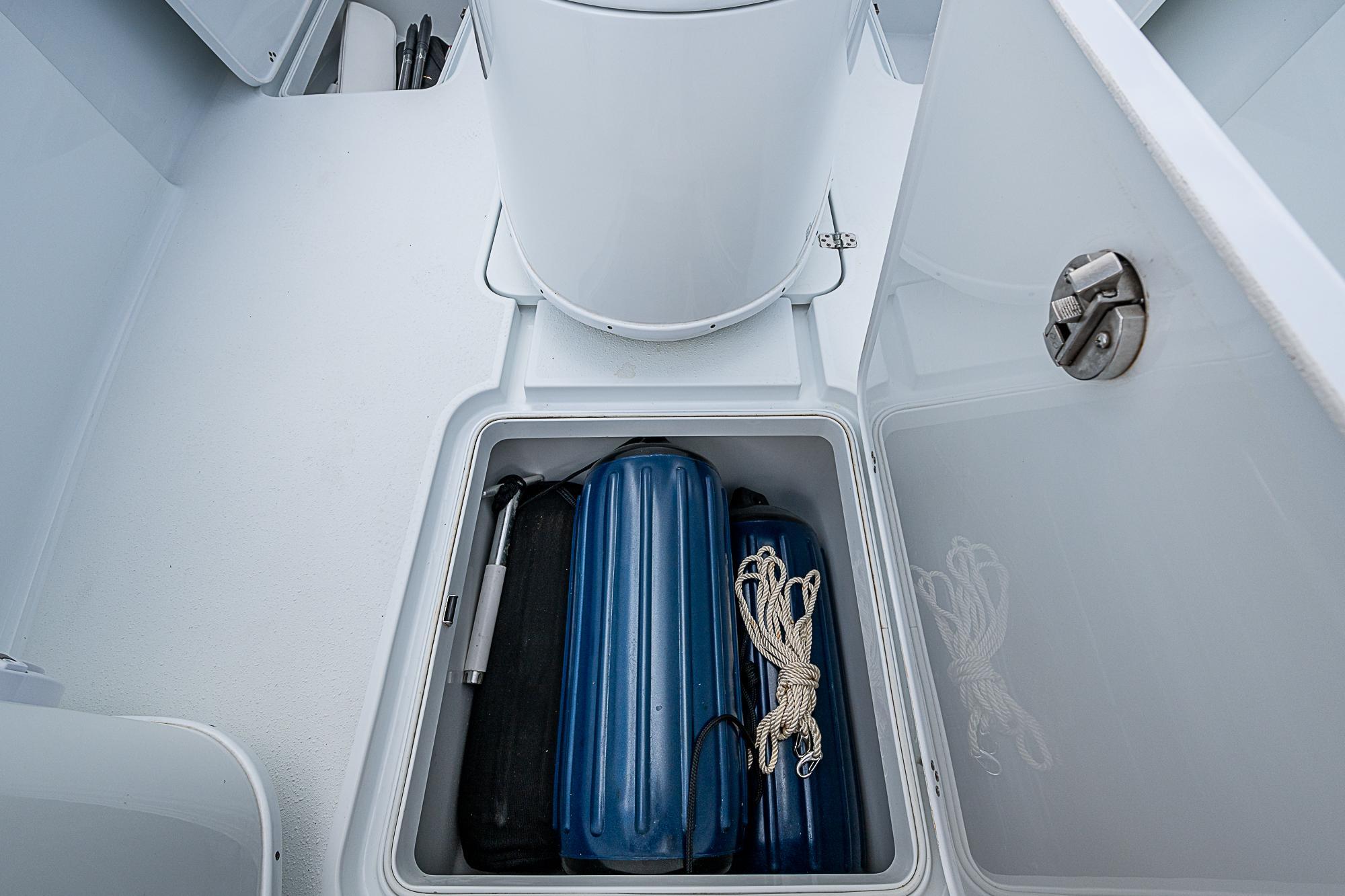 Tackle storage in the helm seat molding port and starboard and under gunwales port and starboard