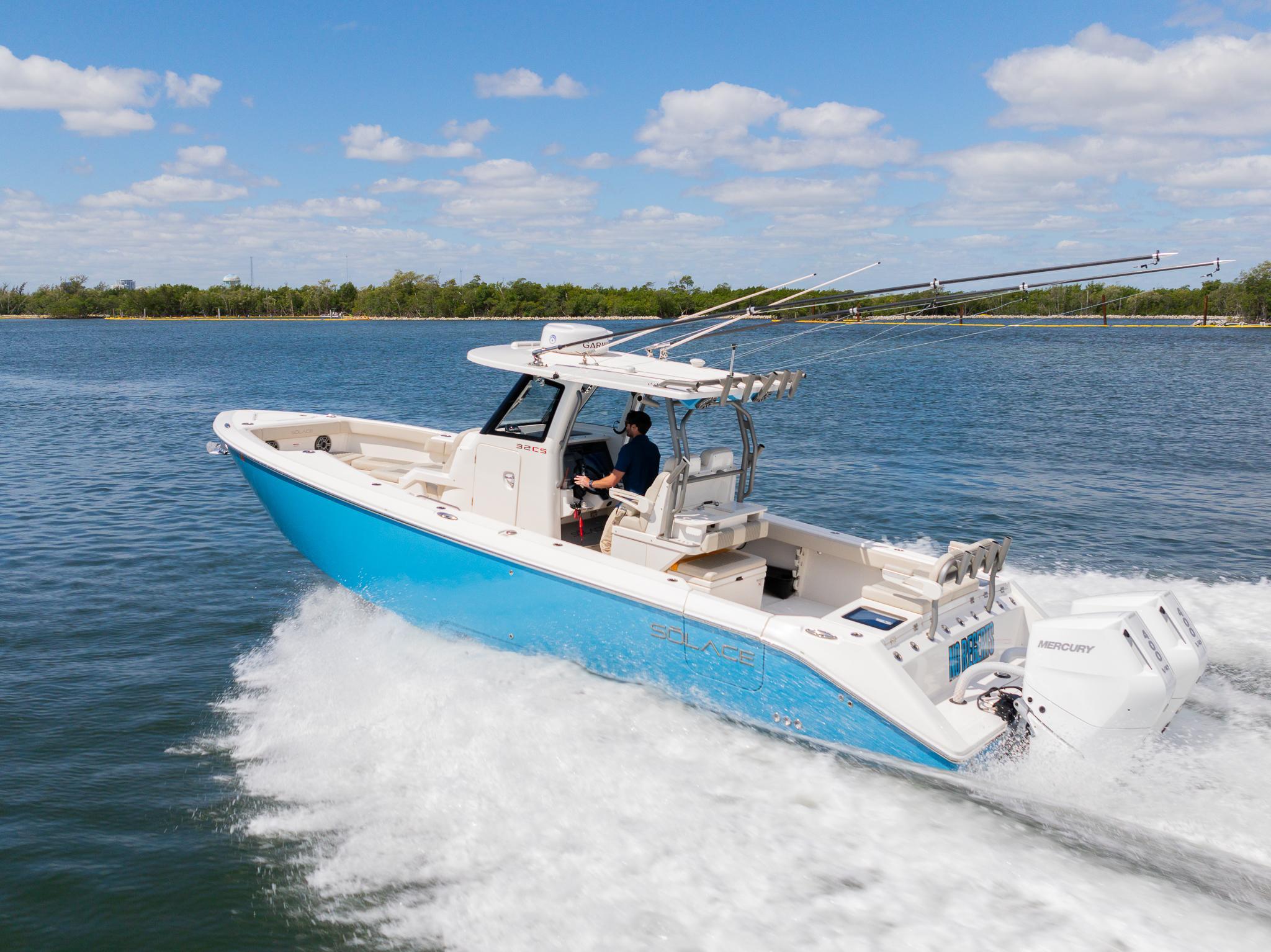 *Custom trailer included (like-new condition)**Mercury Gold Engine Warranty to 2028*Full service completed at SOLACE factory 12/2024.Step into the world of unparalleled performance and comfort with the Solace 32 CS. Crafted to perfection, this yacht epitomizes luxury and versatility, making it a dream vessel for both cruising enthusiasts and avid anglers alike.At its core, the Solace 32 CS boasts exceptional performance capabilities, ensuring a smooth and exhilarating ride on any water surface. Powered by industry-leading Mercury V10 400’s, she effortlessly glides through waves, offering an unmatched cruising experience.Such performance requires no sacrifice to efficiency or range in the 32 CS, thanks to its meticulously engineered design. With an impressive fuel economy, you can explore vast stretches of open water without worrying about frequent refueling stops. Whether you're embarking on a weekend getaway or a long-distance voyage, this boat delivers on both efficiency and endurance.Versatility is a hallmark of the Solace brand. Equipped with state-of-the-art features, it seamlessly transitions from leisurely cruises to adrenaline-pumping fishing expeditions. Ample deck space provides room for relaxation, while specialized fishing amenities cater to the needs of seasoned anglers, ensuring an unforgettable fishing experience.Built to exacting standards, the Solace 32 CS exudes quality and durability at every turn. From the finest materials to precision craftsmanship, no detail has been overlooked in its construction. This commitment to excellence is immediately apparent upon stepping onboard and guarantees years of reliable performance and enjoyment on the water.Whether you're seeking adventure or simply craving a retreat from the everyday hustle, the Solace 32 CS promises to exceed your expectations. With its unparalleled performance, efficiency, versatility, build quality, and luxurious features, she sets the standard for excellence on the water. Don't miss your chance to own this masterpiece of maritime engineering. Inquire now and make your boating dreams a reality.