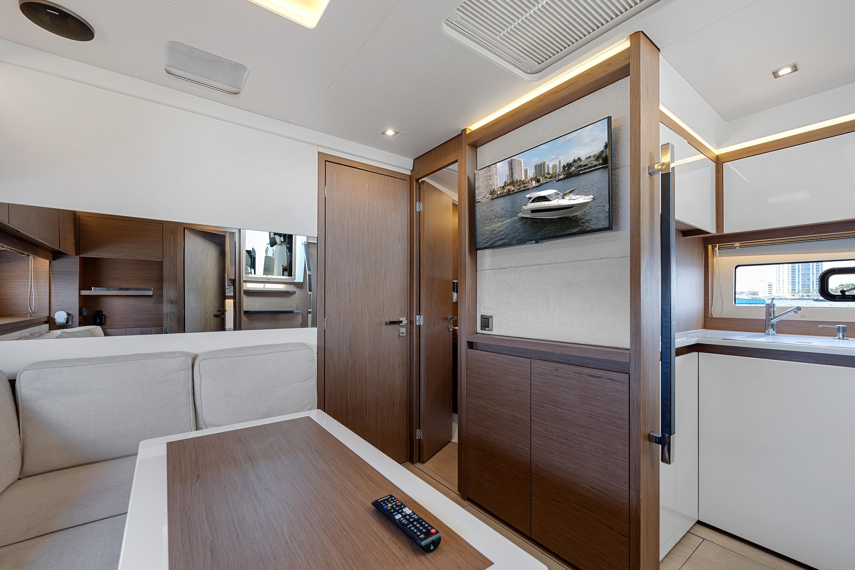 NEW LISTING!SERVICES:100 hours full Engines service August 2025.IPS service including the seals August 2025.Generator Make Onan, Model 13.5MDKDN, 11 KwGenerator 250 hours full service August 2025.Generator Hours: Water Maker Spectra serviced December 2024.3 step Polished and full detailed July 2025.New Sunroof belt just replaced Nov 2024.All Batteries replaced August 2024.4 New underwater lights installed August 2024.New bow cushions and cover Sun-Bed just replaced December 2024.New aft deck cushions replaced August 2025New Air Condition in Cockpit just installed Sept 2024.All 3 Smart tv's Samsung just installed August 2024 (salon, Master and Vip)JL Audio System New installed on Sept 2024.Bottom Paint and Prop-speed August 2025Full covers enclosed Cockpit AreaThe Boat includes a Highland Tender.GENERAL:The Jeanneau Leader 46 is a highly regarded model in the sport yacht market, known for its sleek design, performance, and comfort. Here are some key features of the 2018 version:Main Features • Length Overall (LOA): 46 feet (approximately 14 meters). • Beam: 4.1 meters (13’ 6”). • Engine Options: • Volvo Penta IPS engines • IPS system for enhanced maneuverability and fuel efficiency. • Capacity: • Comfortable accommodation for up to 6 people. • Two main cabins with an optional third cabin or convertible salon. • Top Speed: Around 33knots. • Cruising Speed: Approximately 25 knots.Design and Layout • Exterior: • Large hydraulic swim platform. • Sunbathing areas at both bow and stern. • Spacious outdoor dining area with table and seating. • Interior: • Contemporary style with high-quality wood finishes. • Bright salon with plenty of natural light through large windows. • Fully equipped kitchen with stove, refrigerator, and microwave.Additional Equipment • Air conditioning, generator, and advanced electronics (GPS, sonar, autopilot). • Electric sunroof.