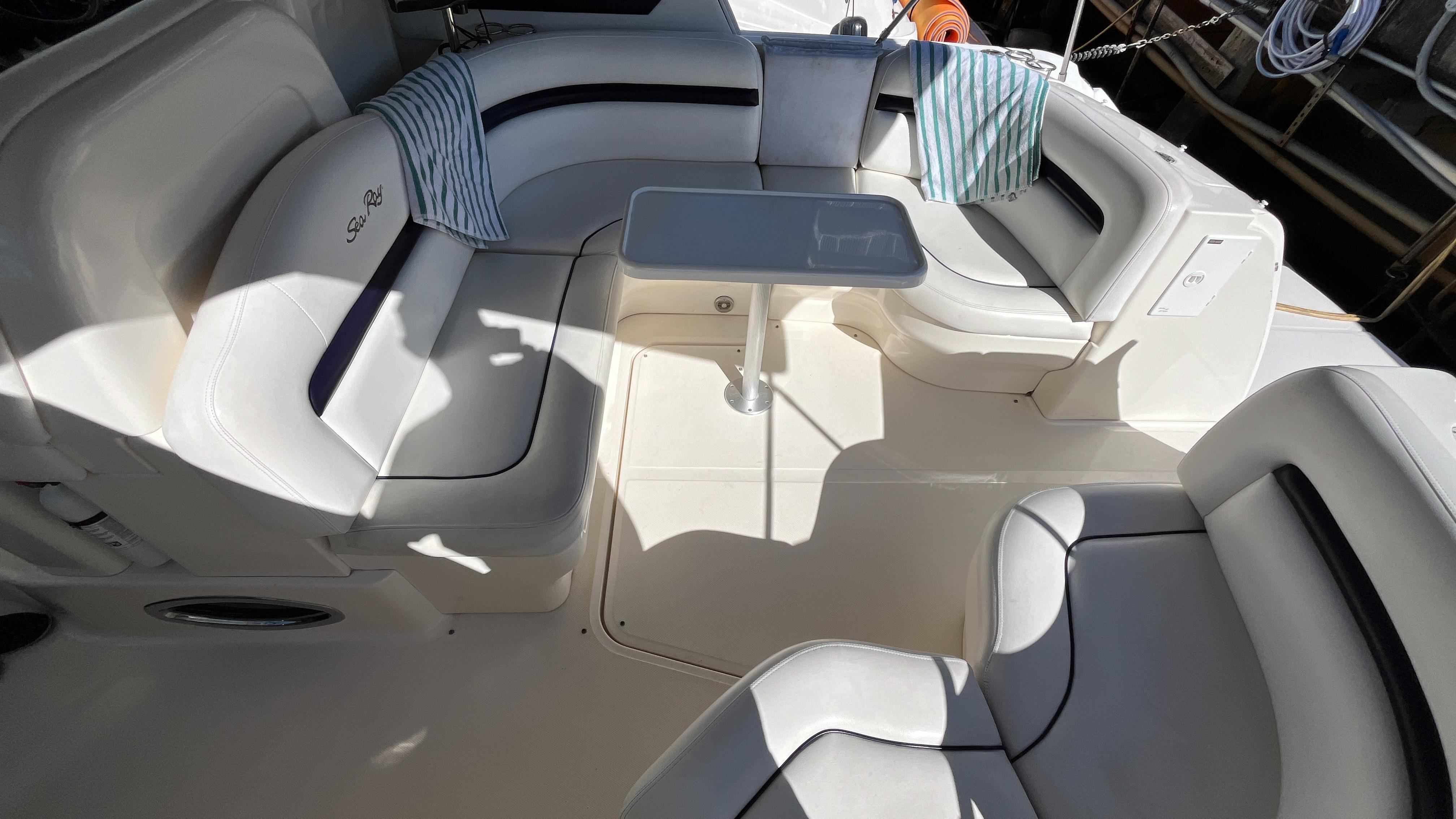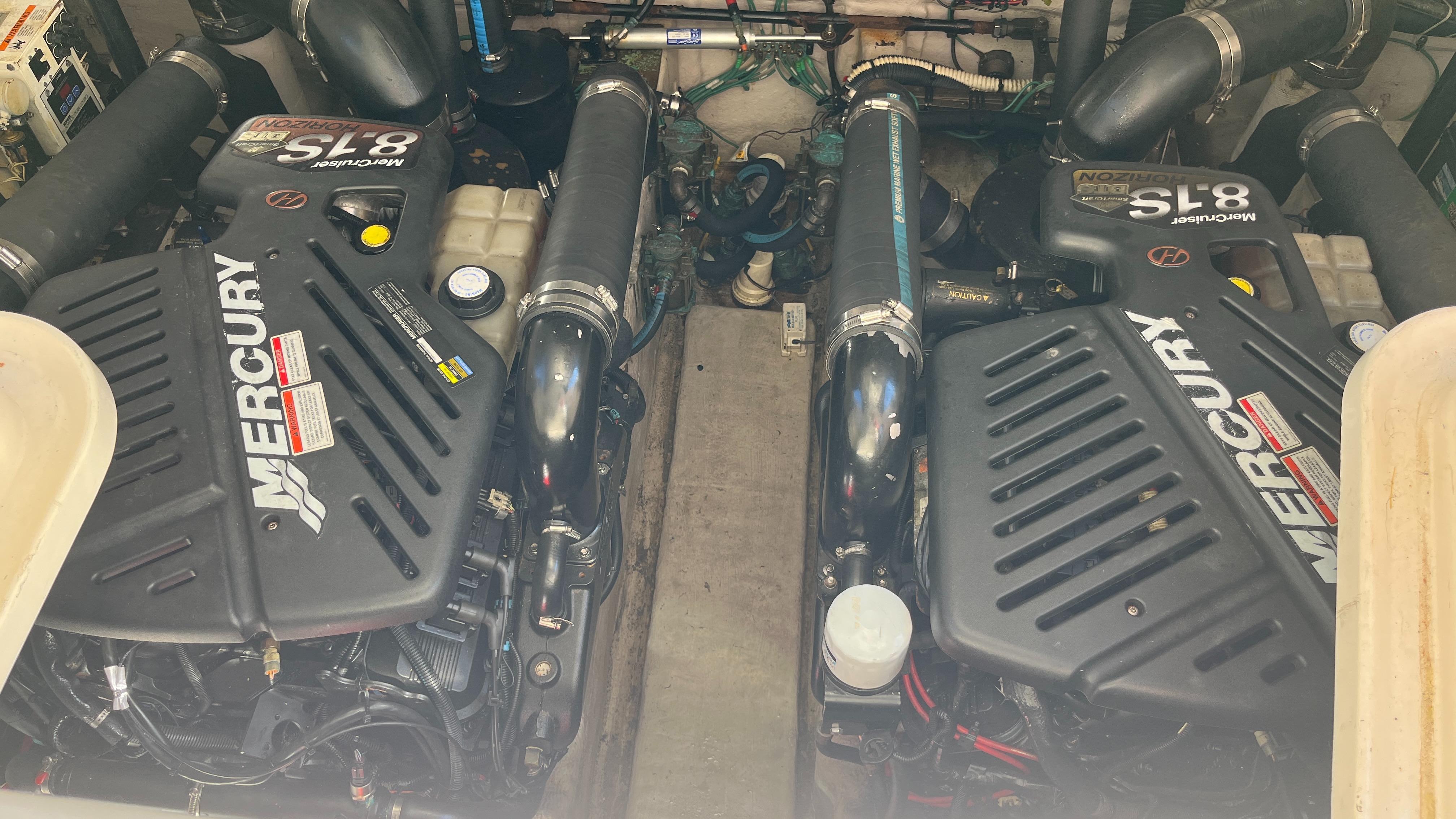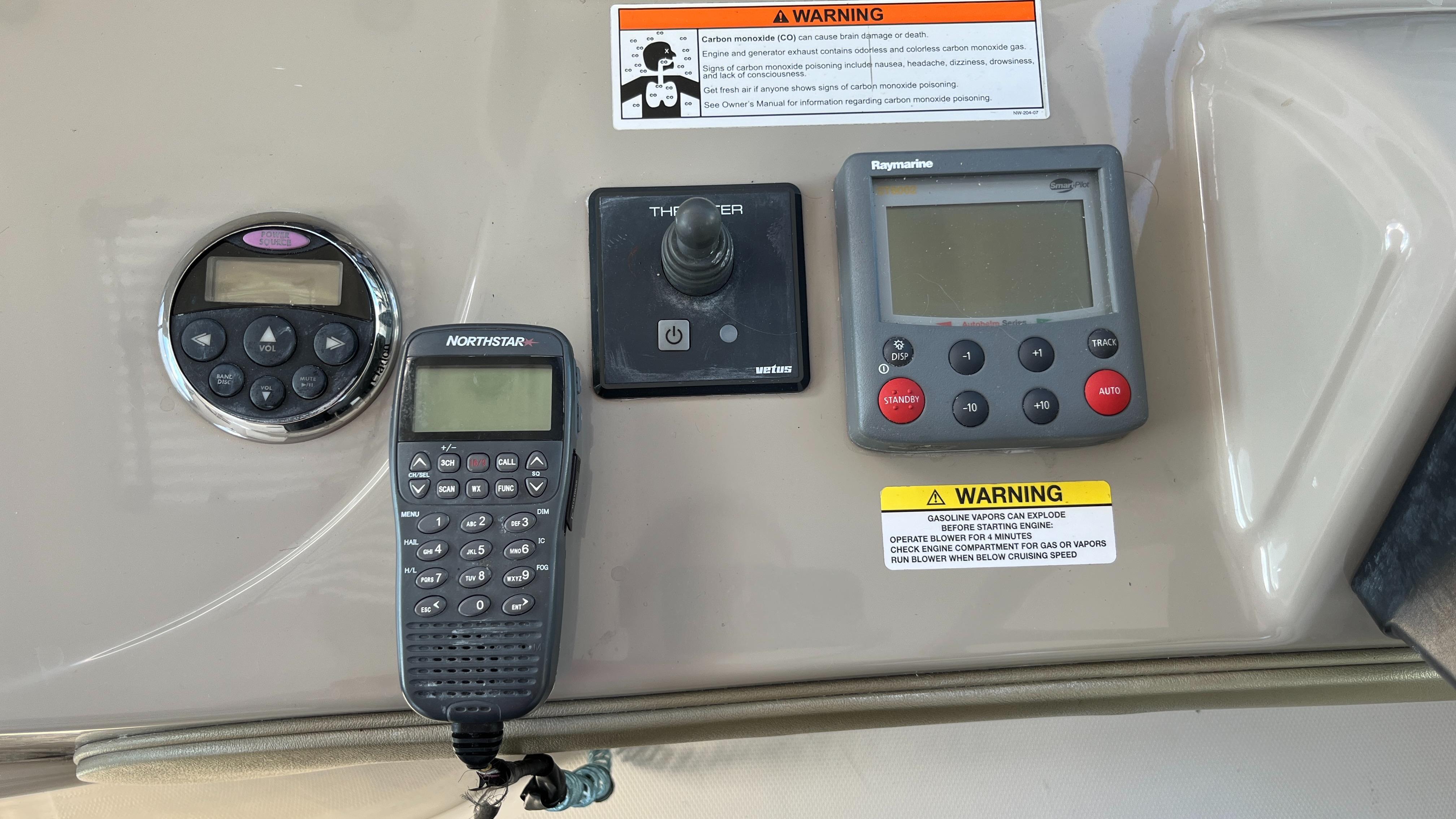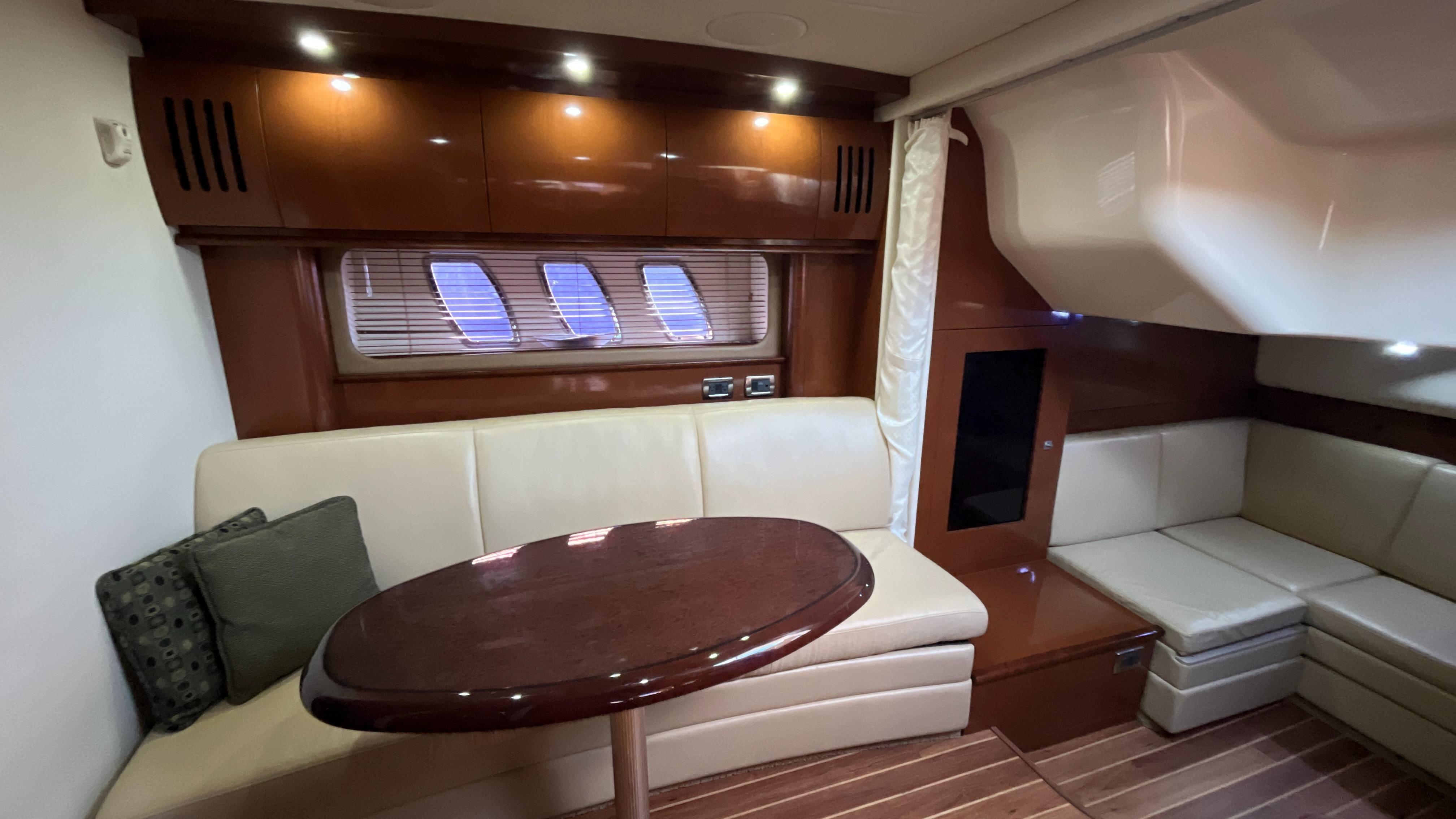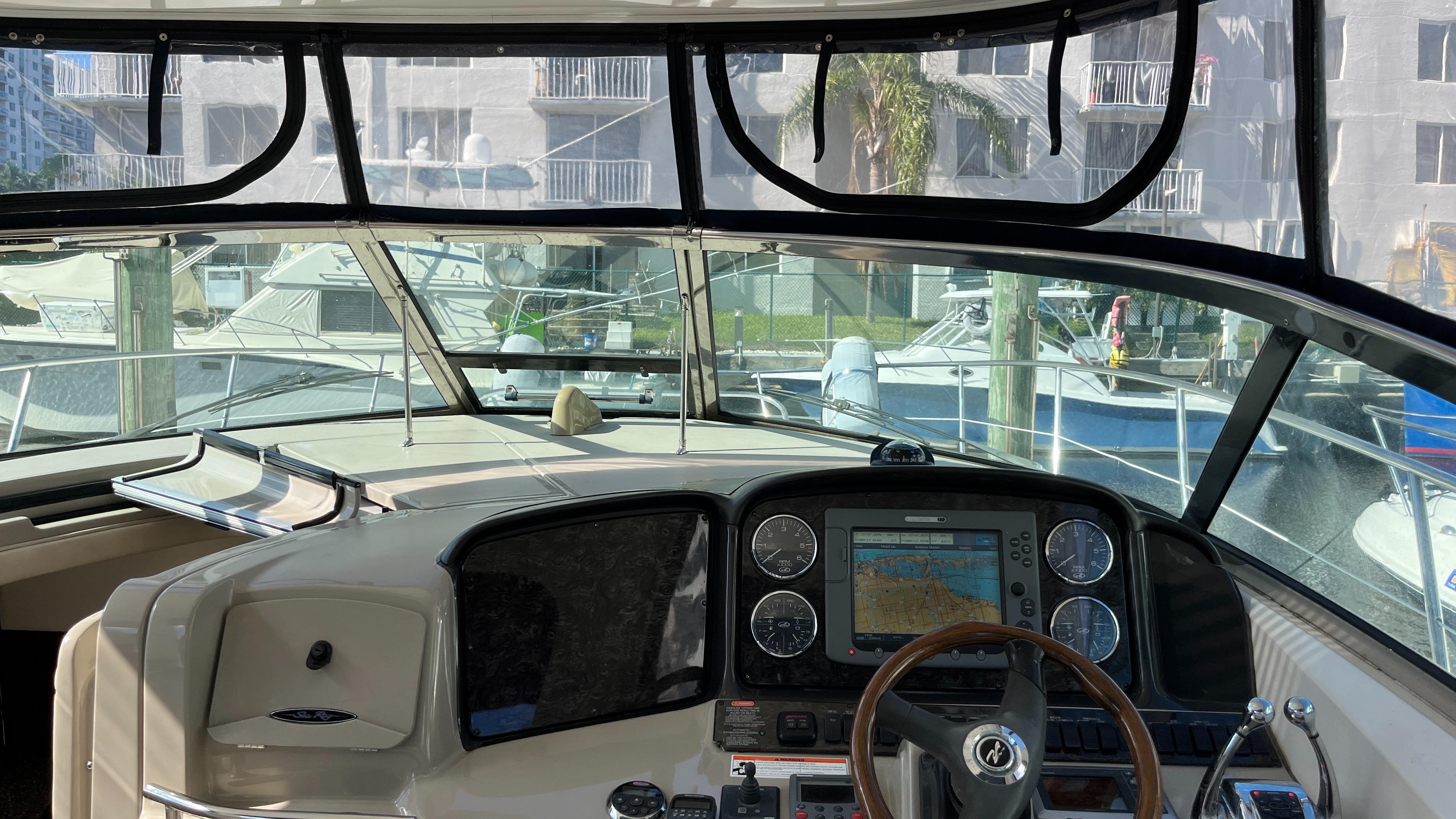 PRICE JUST DROPPED $10,000.00This exciting 38 Sundancer features a stylish fiberglass hardtop with aft sunshade, overhead lighting and stainless-steel grab rails. An innovative center door in the transom provides easy access to the luxuriously appointed cockpit, complete with Corian tabletop, wet bar and icemaker. Powered by twin 8.1 S Horizon MerCruiser V-drives with 370HP fresh water-cooled engines, underwater exhaust, and standard anchor washdown.Standard MerCruiser® 8.1 S DTS Horizon engines with 4-year Mercury® limited warrantyStandard SmartCraft® Diagnostics and VesselView Display.Swivel bucket helm seat with flip-up thigh-rise bolster, armrests, and heavy-duty pedestal with slide, swivel and pneumatic vertical adjustment.Companion bench with molded fiberglass storageElectrically actuated engine compartment hatch.12V AM/FM single CD with six-disc CD changer, eight (8) speakers and digital cockpit remote controlCockpit wet bar with sink and faucet, Corian® countertop, stainless steel handrail, trash receptacle, and cooler with dedicated storageSirius® Satellite Receiver with antenna.Standard LCD drop-down flatscreen TV with DVD in salon.Innerspring mattress is standard in forward stateroom.Separate shower and dual-entry head.Ultraleather HP™ standard on all interior seating.Fiberglass hard top with aft sunshade, overhead lighting and stainless steel grab rails.Standard generator with sound shieldLarge integral/extended swim platform with heavy-duty stainless steel swim ladder.Water manifold system with shut-off valveUnderwater exhaust.Standard anchor washdown.