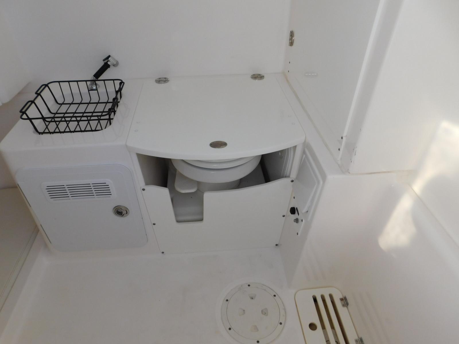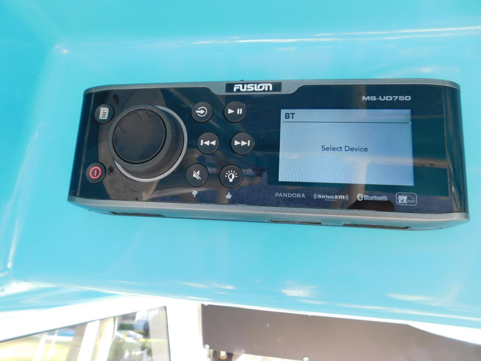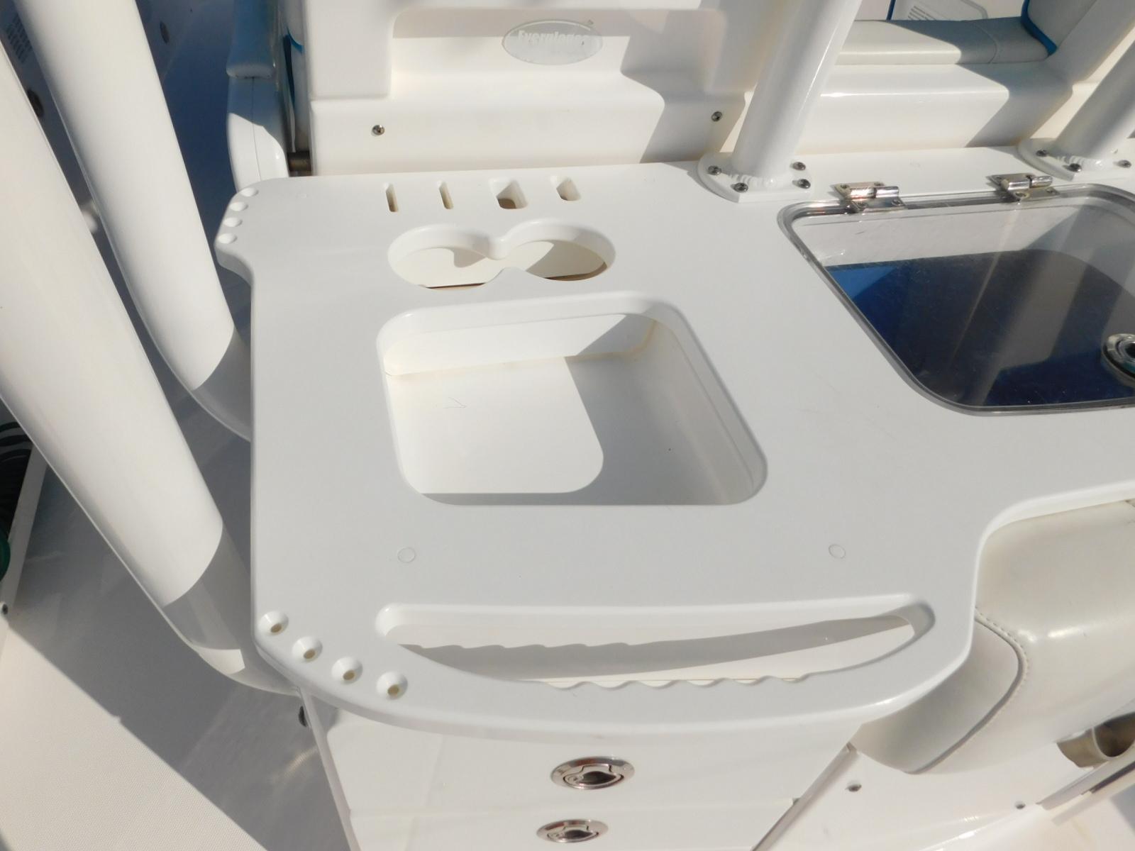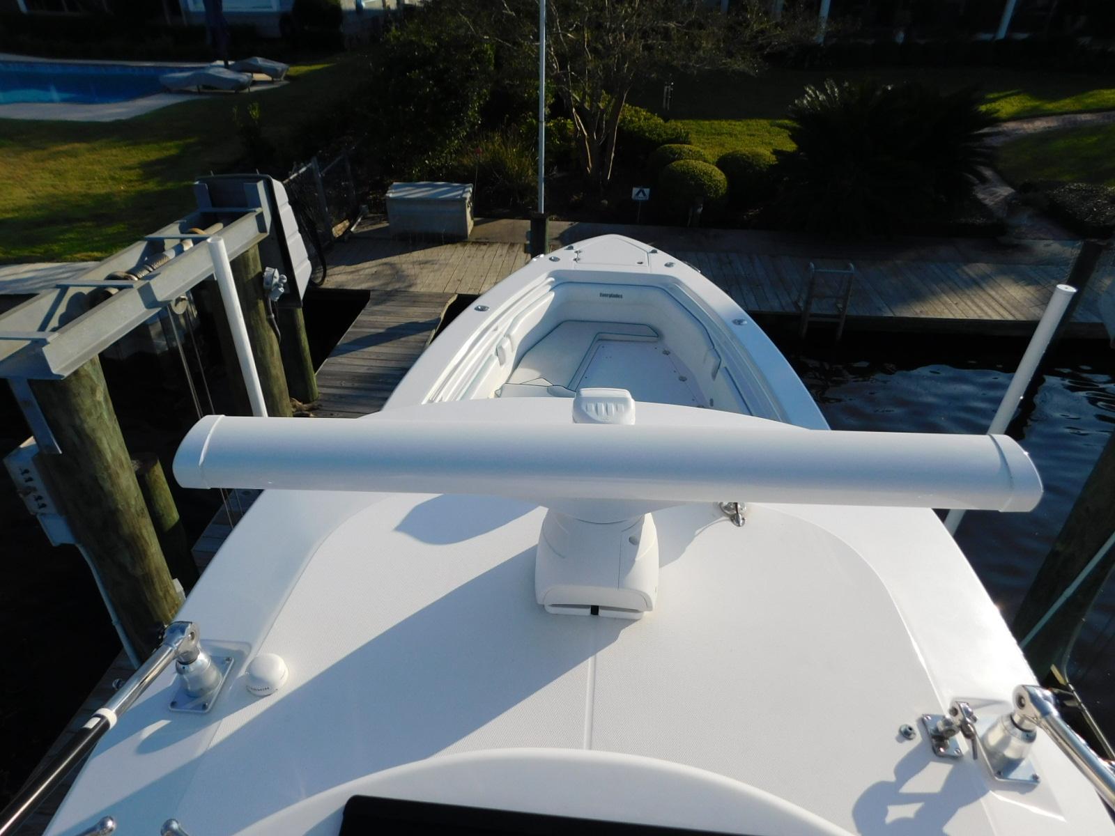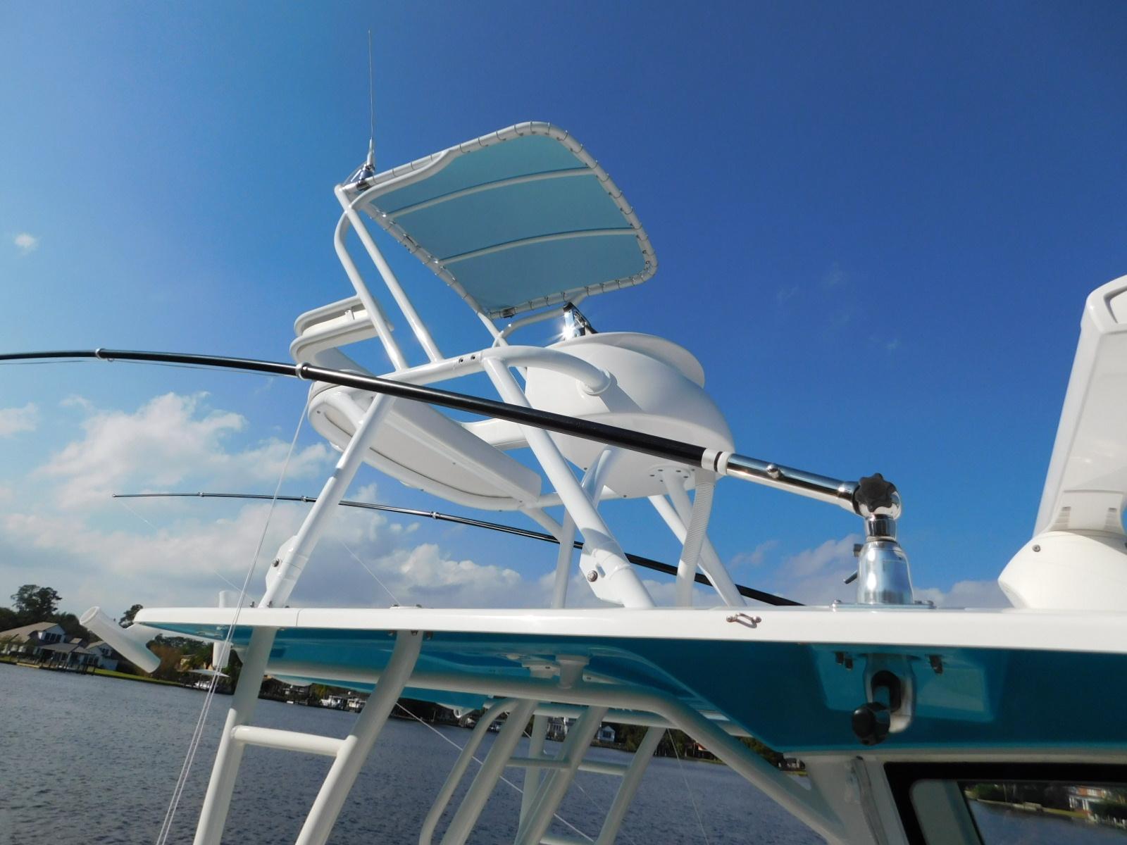 Fiberglass hardtop with aluminum powder-coated frame includes LED lights, spreader lights, electric sliding windshield, electronics box, (5) rod holders, a set of kingfish rod holders