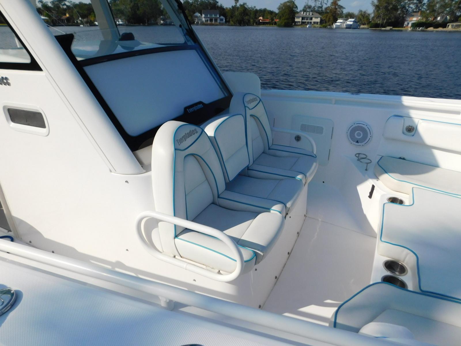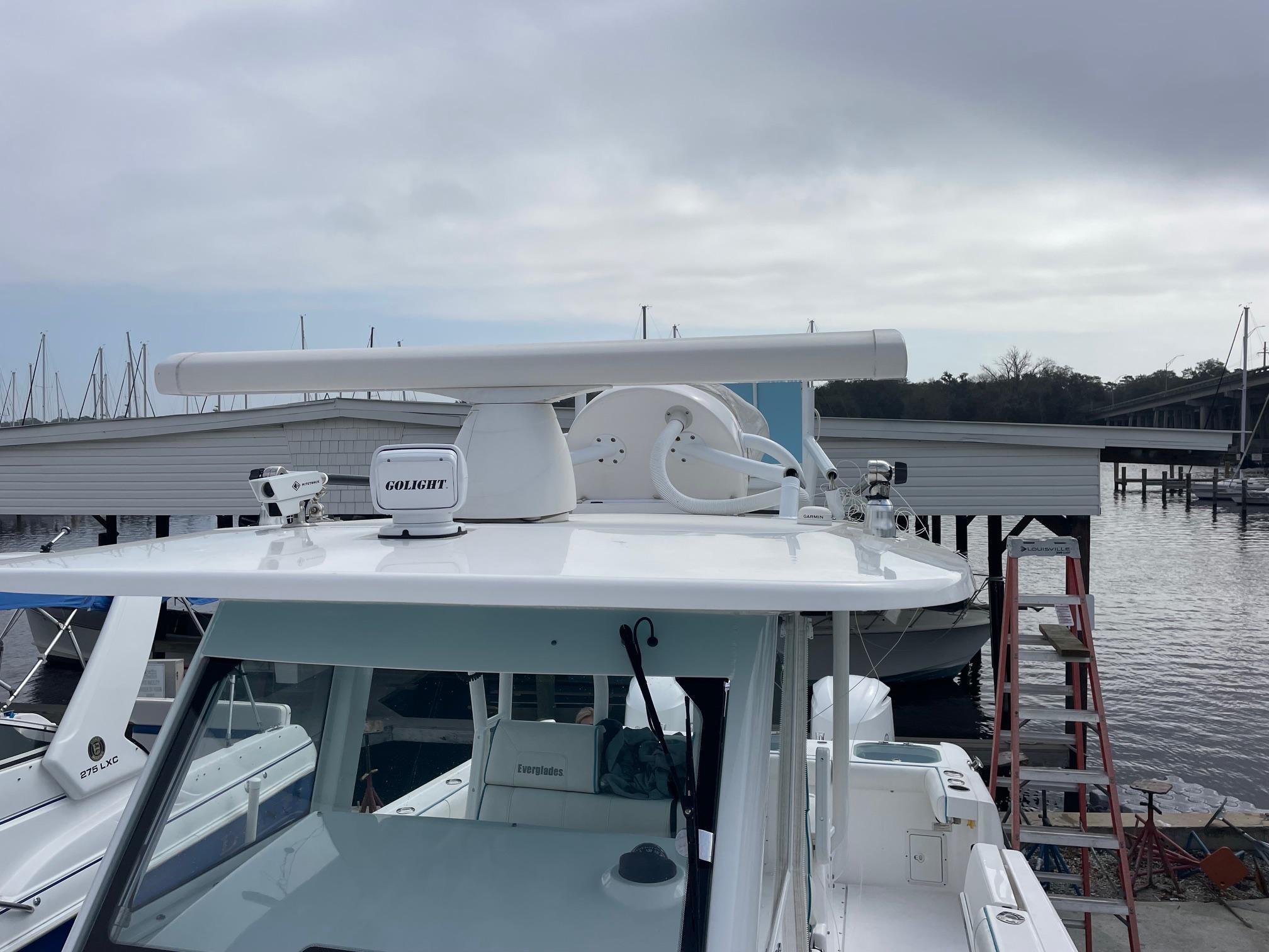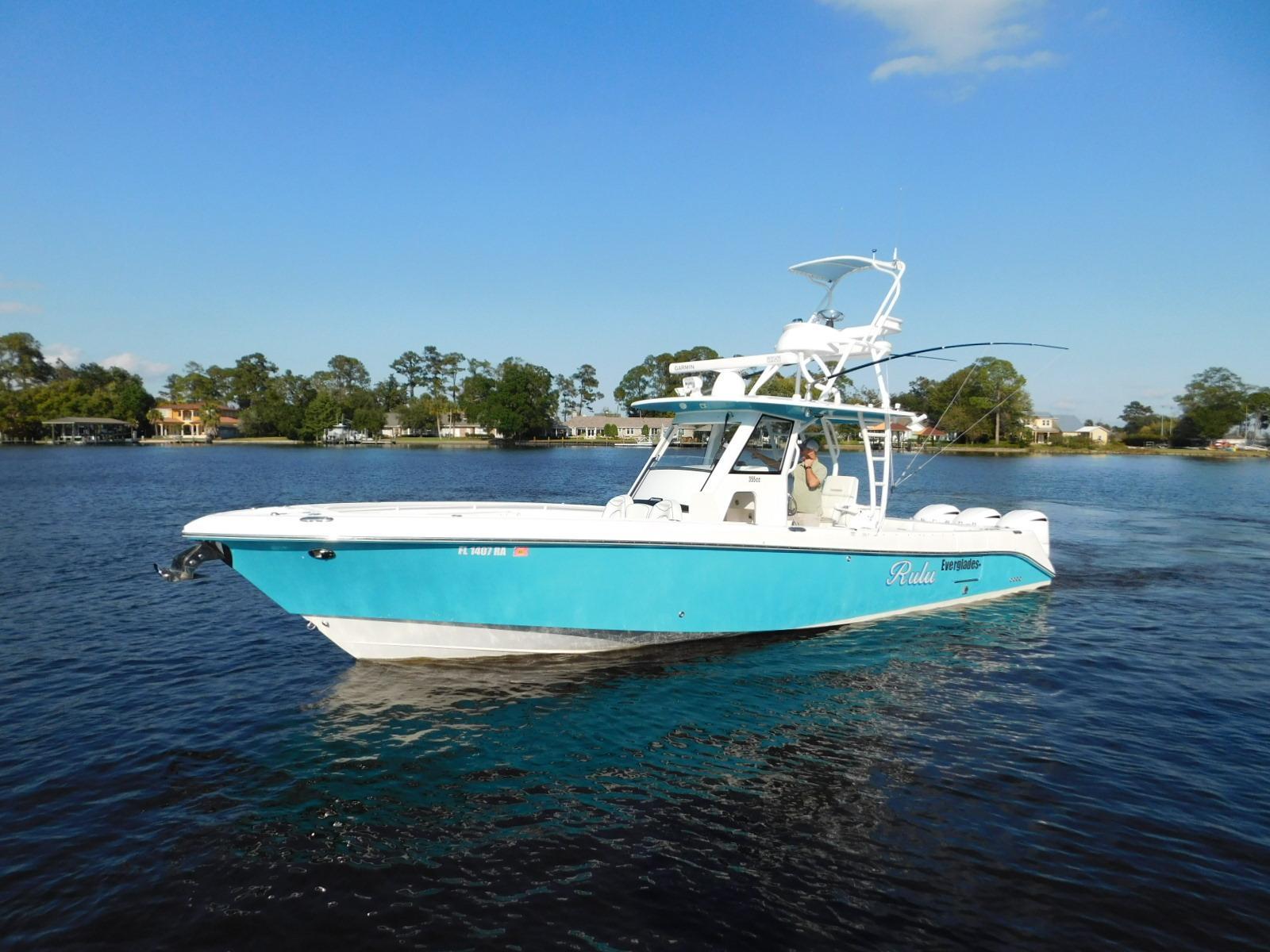 Price Reduced! Outstanding value in the market for a 355CC. All offers strongly encouraged. This Everglades 355CC is a very nice example of this premium brand with lots of upgrades and updates. The boat is powered by triple Yamaha F300XCA motors, the preferred power package on the 355CC for rugged reliability. These motors have given the owners outstanding service in the five years since they purchased the boat. During their ownership, the vessel have seen the addition of the custom upper station with electronics, which does fold for transport. Full Garmin electronics package was updated a few years back. Owners have purchase a larger boat, which is the reason for the sale of this 355CC. The boat has been freshly detailed and is standing tall.