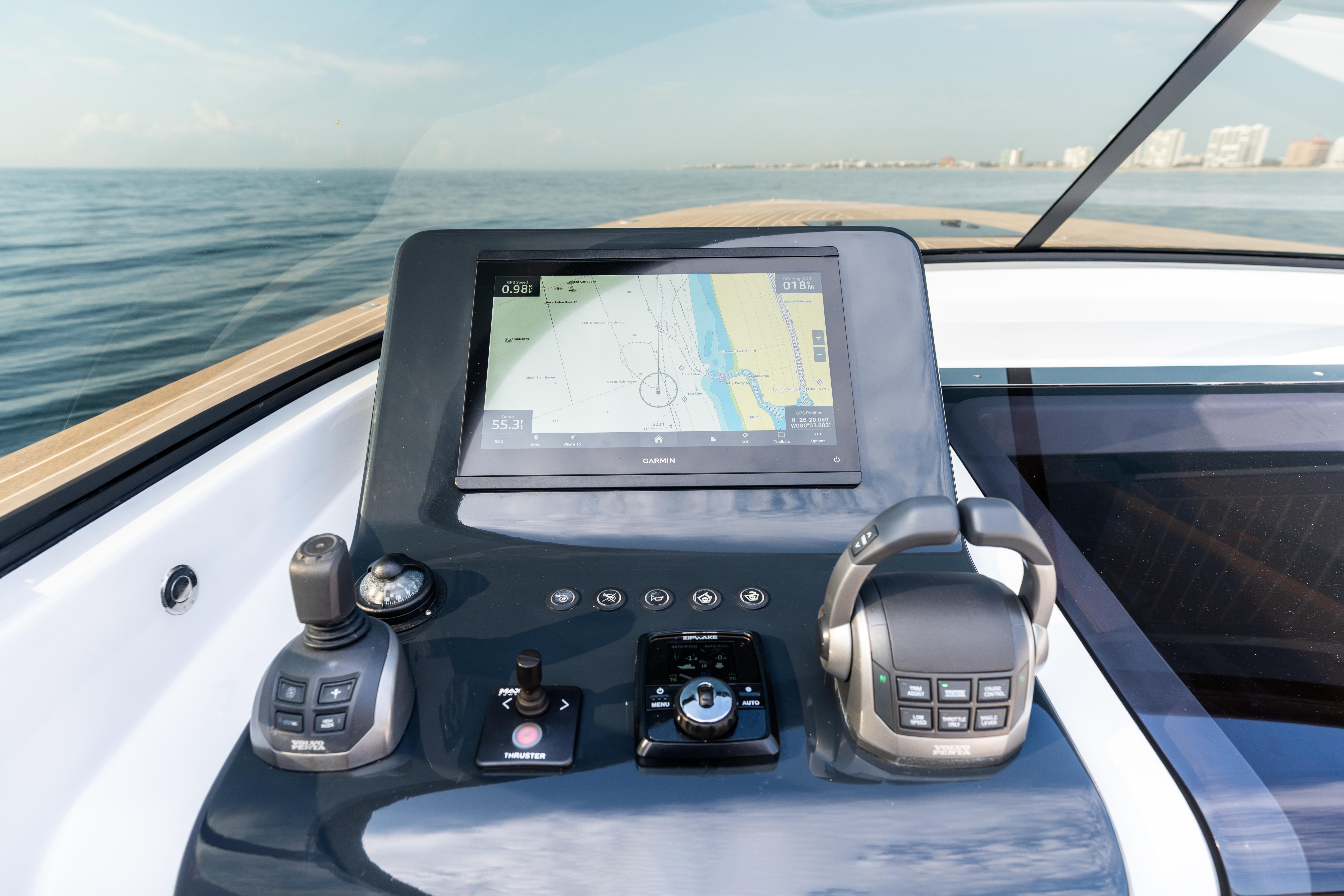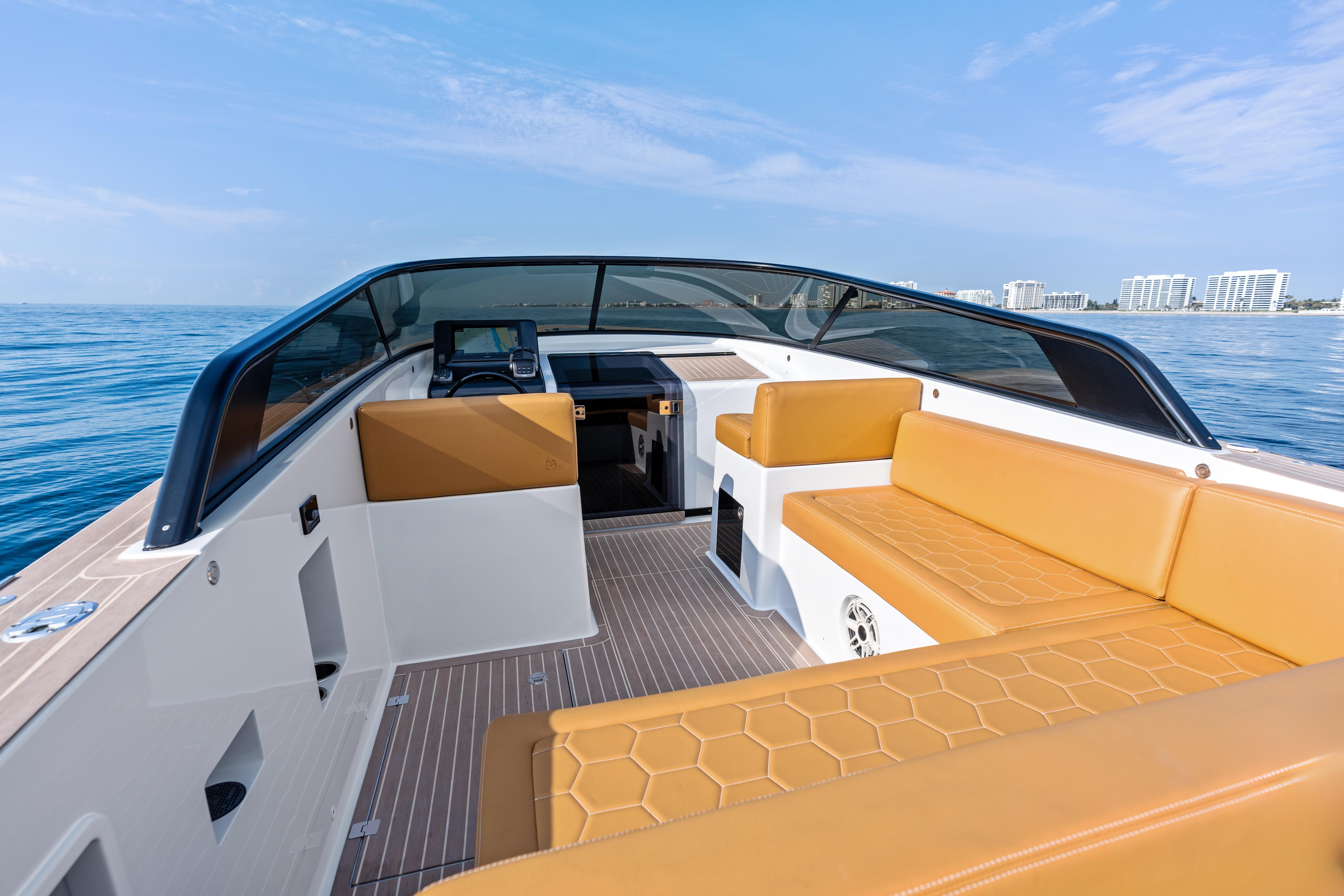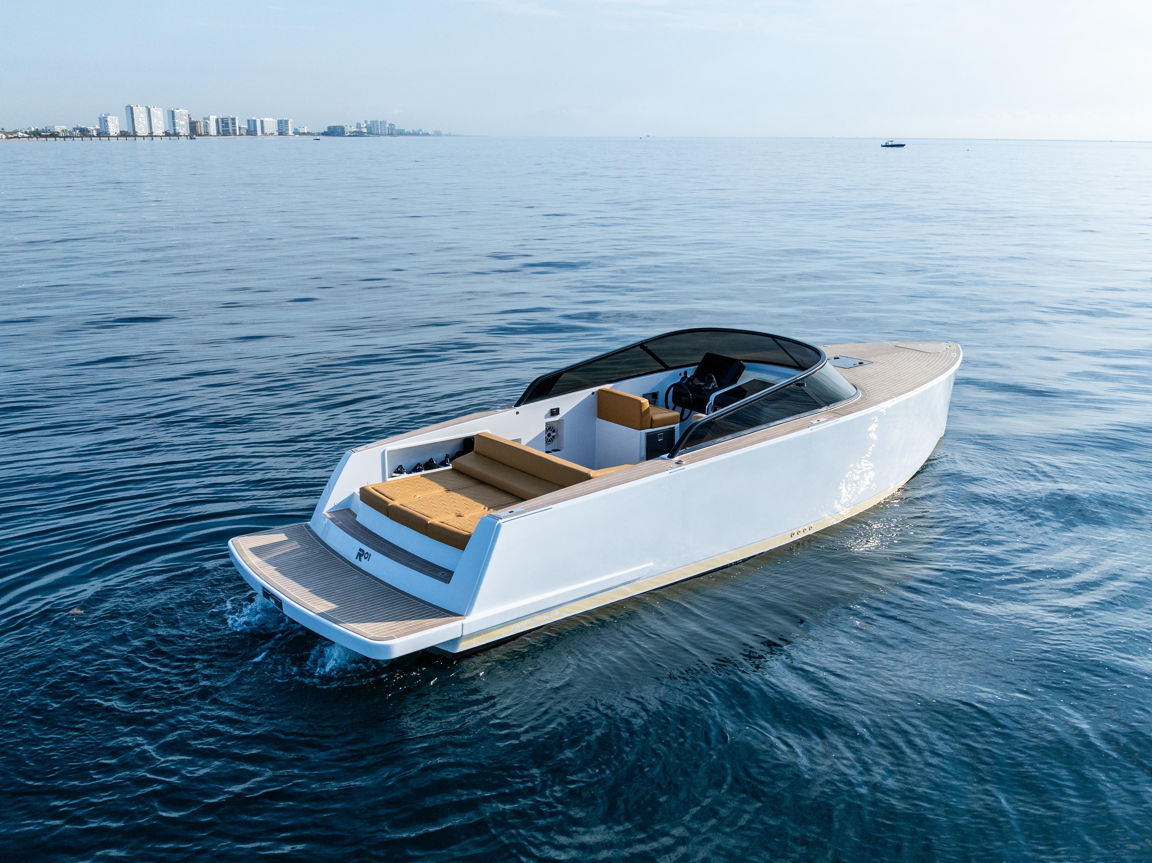 US DUTY PAIDCustom VanDutch 32 with Volvo Engine Warranty through August 2026. R01 features custom options you won't see on another VanDutch 32 in the world, including a 12-point LED deck lights kit, Garmin 16" XSV, 2 types of wireless device charging, upgraded battery bank, twin-amp 6.1 surround sound system, custom "puzzled honeycomb" upholstery and much more. ALL R01 CUSTOM FEATURESTECHNOLOGY12-point LED deck lighting systemUpgraded AGM battery bank (4+ hours of run time)(2) integrated wireless charging locations(2) Underwater lightsNew Garmin 16” chartplotter (2024)Upgraded speaker box down lightsMax Power bow thrusterDESIGNCustom paint palette: cloud grey, rich cream, greystone, ammoniteHelm & steering wheel painted in carbon to match windshieldCustom L-backrest with polished stainless steel bracketsCustom "Puzzled Honeycomb" upholstery in dune/whiteAdditional headrest cushion for aft sun padInterior wall panels refaced in light greySOUNDTwin-amp [1,000 RMS] 6.1 sound system with JLM6 8.8 speakers & 8” subTwo-tone custom-painted speaker grillsCustom-recessed fiberglass speaker boxesAdditional audio controller in cockpitSTRUCTUREUpgraded windshield: 1/4" tinted acrylic panels with frame painted in carbonExtra-thick gasket on cockpit and engine room hatchesEngine room stringers and bilges painted in clean whiteReinforced swim platformAnti-fowling (black)PropspeedSTANDARD SPECIFICATIONSLength: 32.19 ft (9.81 m)Beam: 9.51 ft (2.90 m)Draft: 2.99 ft (0.91 m)Displacement: 10,400 lbs (5.2 t)Fuel tank: 106 gal (400 l)Water tank: 19 gal (70 l)Engines: 2 x Volvo D4 300 HPDrive Type: Stern DriveFuel: DieselCabins: 1Bathroom: 1