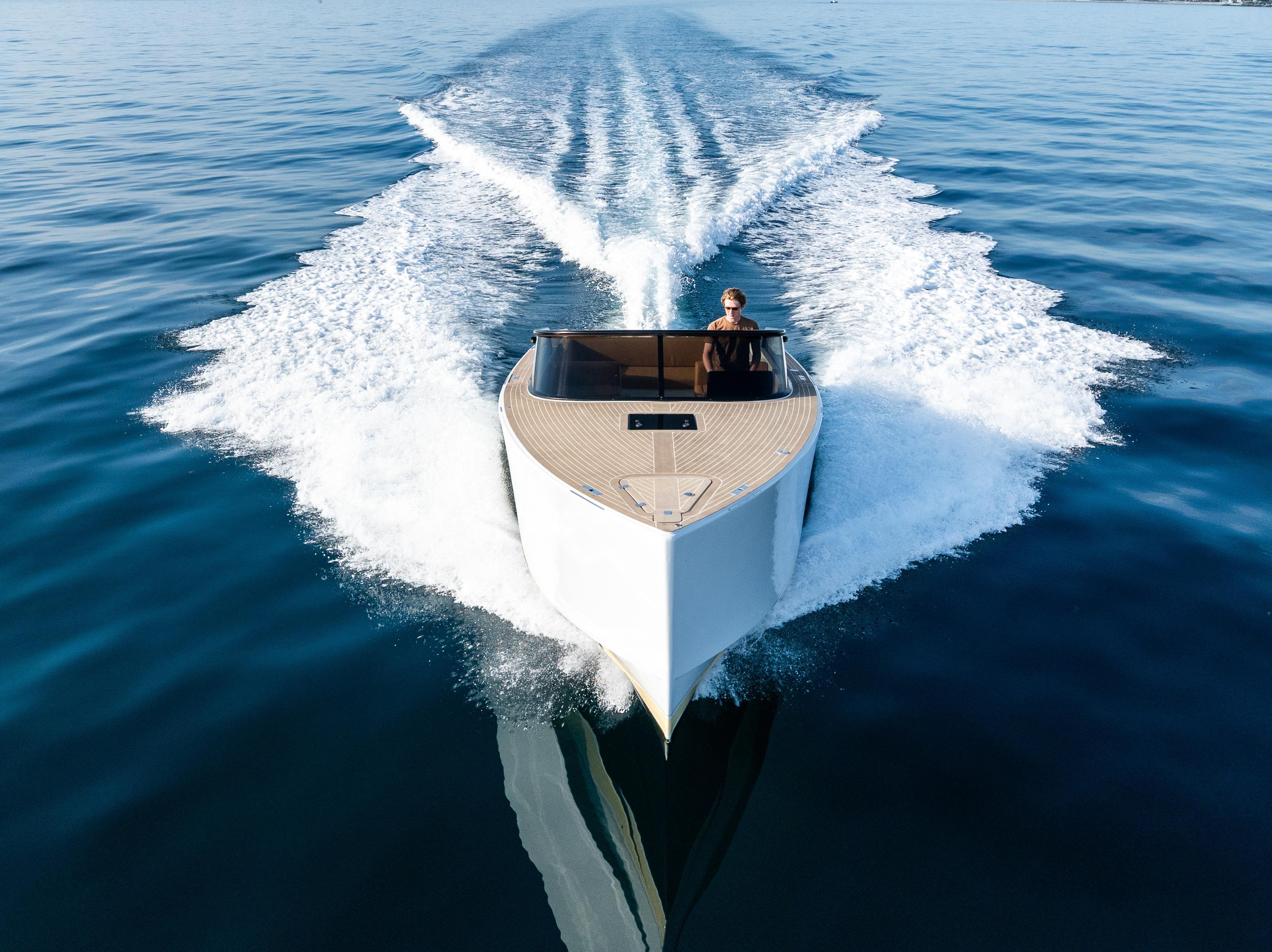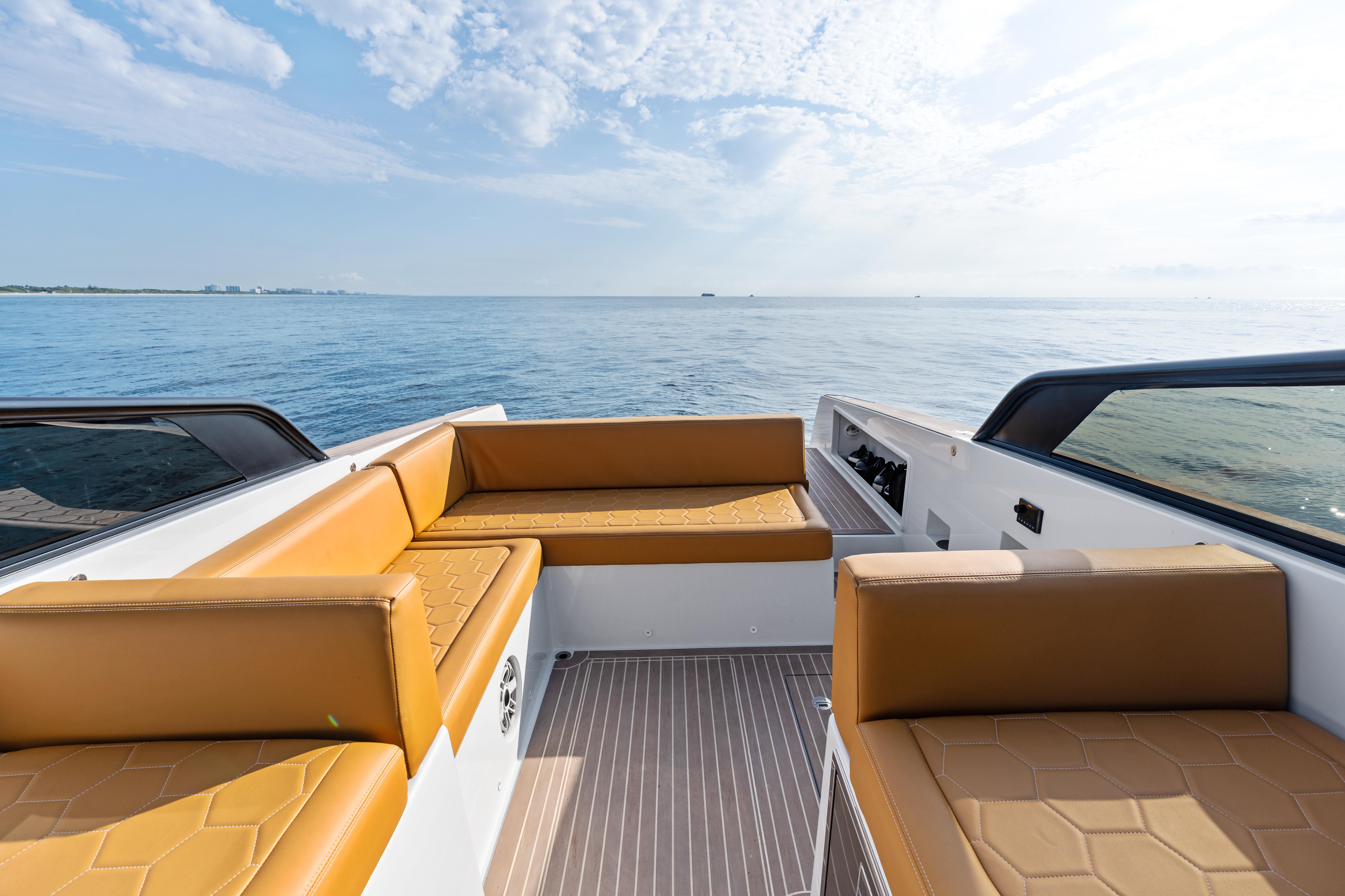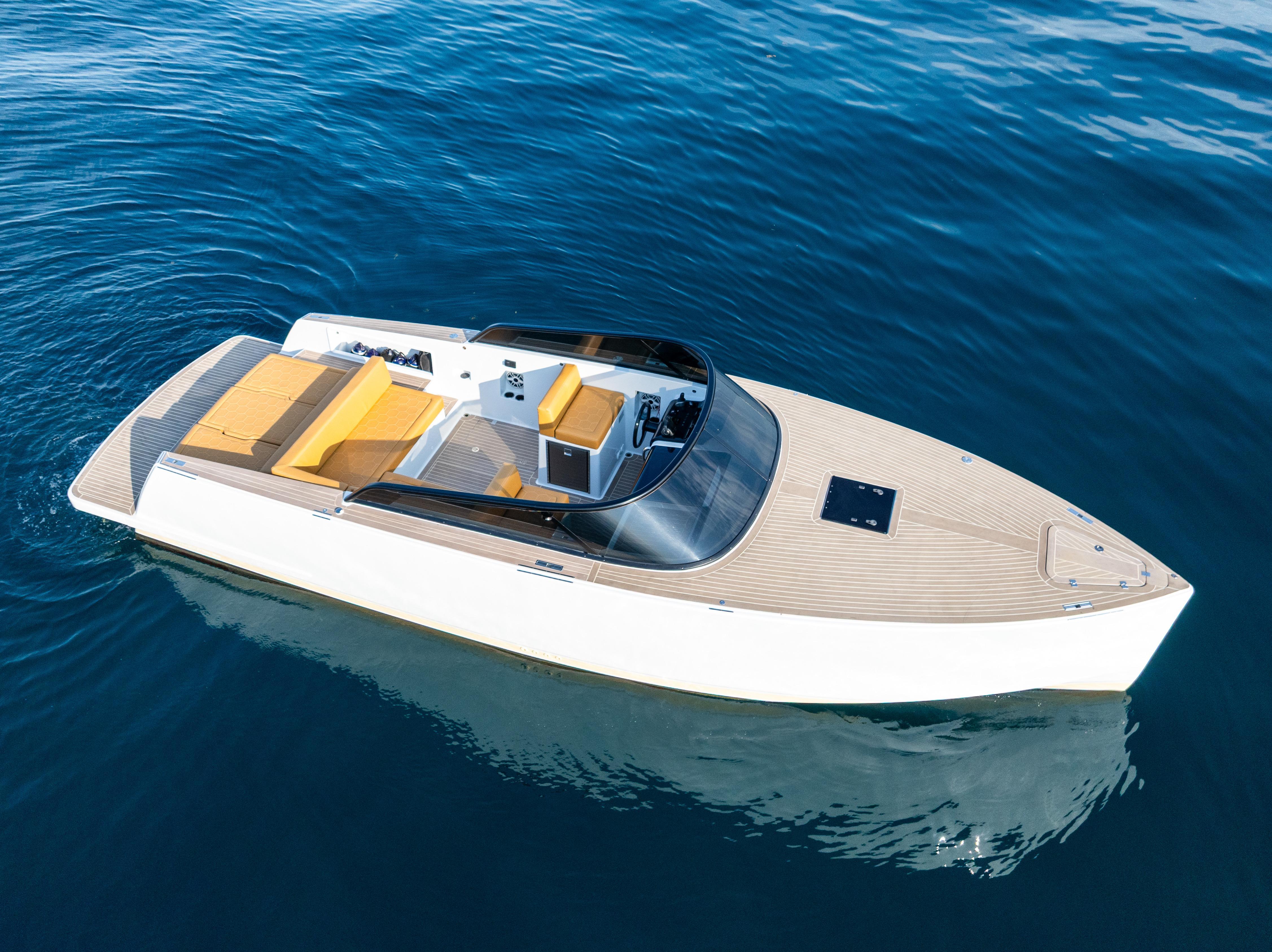 US DUTY PAIDCustom VanDutch 32 with Volvo Engine Warranty through August 2026. R01 features custom options you won't see on another VanDutch 32 in the world, including a 12-point LED deck lights kit, Garmin 16" XSV, 2 types of wireless device charging, upgraded battery bank, twin-amp 6.1 surround sound system, custom "puzzled honeycomb" upholstery and much more. ALL R01 CUSTOM FEATURESTECHNOLOGY12-point LED deck lighting systemUpgraded AGM battery bank (4+ hours of run time)(2) integrated wireless charging locations(2) Underwater lightsNew Garmin 16” chartplotter (2024)Upgraded speaker box down lightsMax Power bow thrusterDESIGNCustom paint palette: cloud grey, rich cream, greystone, ammoniteHelm & steering wheel painted in carbon to match windshieldCustom L-backrest with polished stainless steel bracketsCustom "Puzzled Honeycomb" upholstery in dune/whiteAdditional headrest cushion for aft sun padInterior wall panels refaced in light greySOUNDTwin-amp [1,000 RMS] 6.1 sound system with JLM6 8.8 speakers & 8” subTwo-tone custom-painted speaker grillsCustom-recessed fiberglass speaker boxesAdditional audio controller in cockpitSTRUCTUREUpgraded windshield: 1/4" tinted acrylic panels with frame painted in carbonExtra-thick gasket on cockpit and engine room hatchesEngine room stringers and bilges painted in clean whiteReinforced swim platformAnti-fowling (black)PropspeedSTANDARD SPECIFICATIONSLength: 32.19 ft (9.81 m)Beam: 9.51 ft (2.90 m)Draft: 2.99 ft (0.91 m)Displacement: 10,400 lbs (5.2 t)Fuel tank: 106 gal (400 l)Water tank: 19 gal (70 l)Engines: 2 x Volvo D4 300 HPDrive Type: Stern DriveFuel: DieselCabins: 1Bathroom: 1