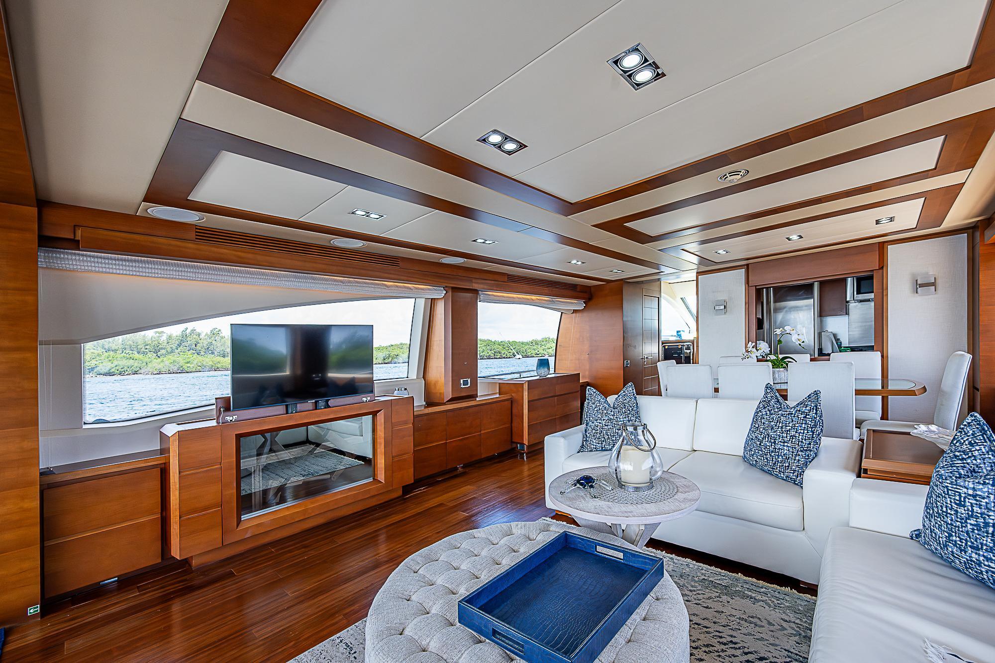 The Azimut 82 yacht is a spacious, stylish, and comfortable yacht. She is built to ensure that everyone aboard enjoys every second of their trip. The full-beam master suite has large windows giving the stateroom a light and airy feel. This stateroom is full of an abundance of LED lighting with a walk-in master bath right around the corner. Three additional ensuite cabins, give a comfortable and at home feeling with the added privacy. The vast flybridge is spacious and has everything needed to provide entertainment for guests.The Azimut 82 is the perfect combination of style, comfort, and performance. Owners can expect a top speed of up to 30 knots and a cruising speed of 27 knots. All while enjoying the amenities of a luxury yacht with ample space for everyone aboard the ship. NOT FOR SALE TO U.S. RESIDENTS WHILE IN U.S. WATERS.