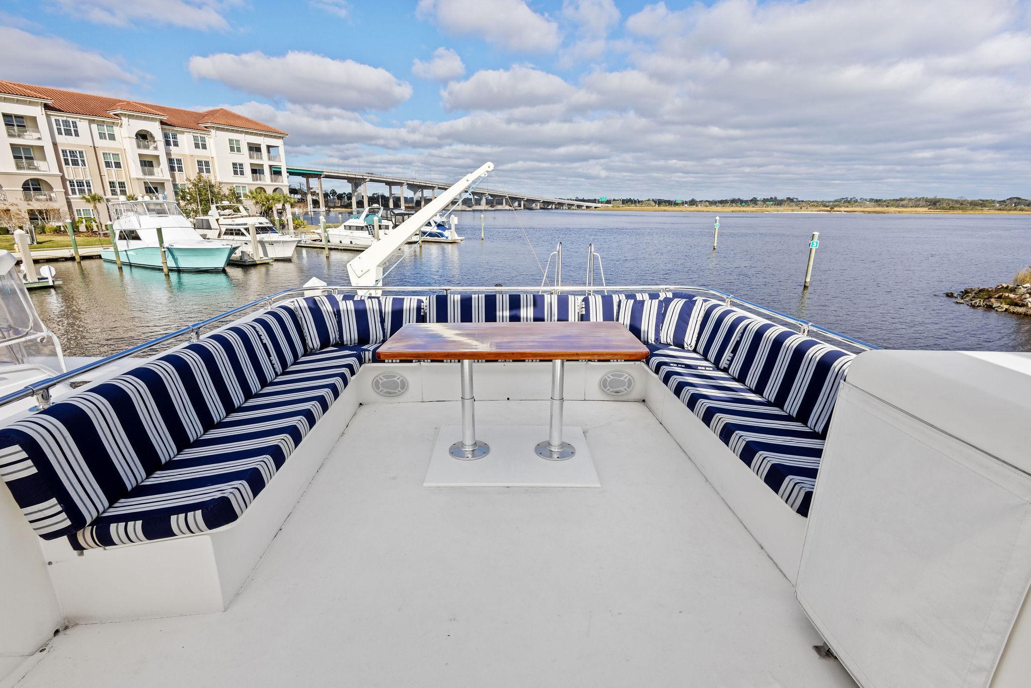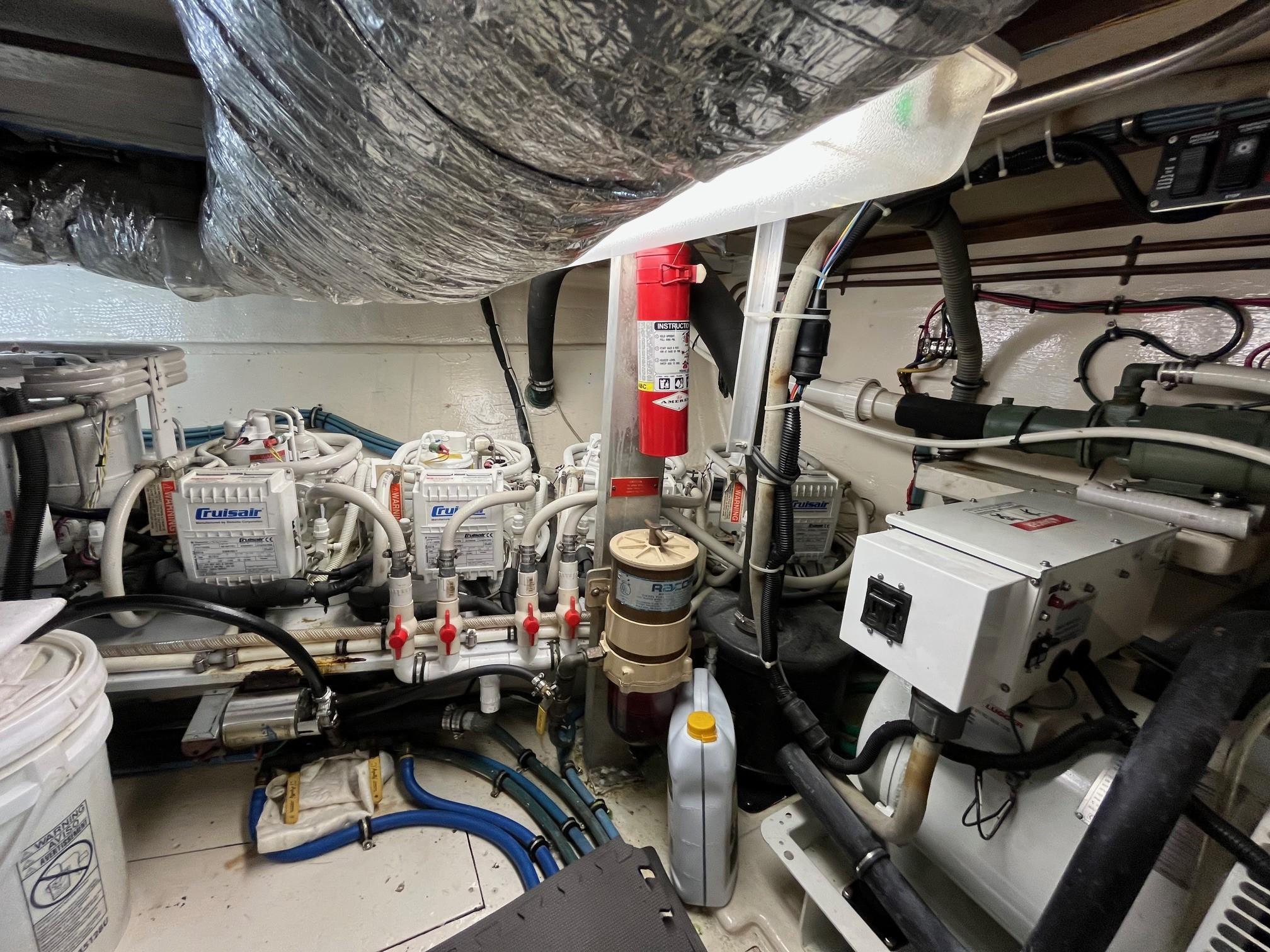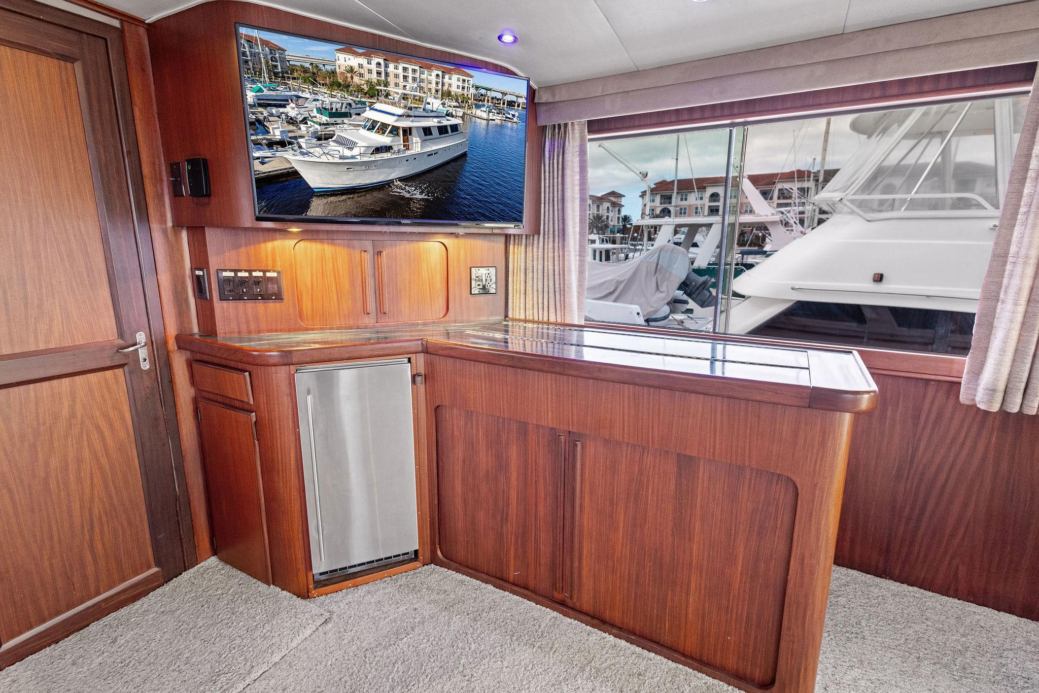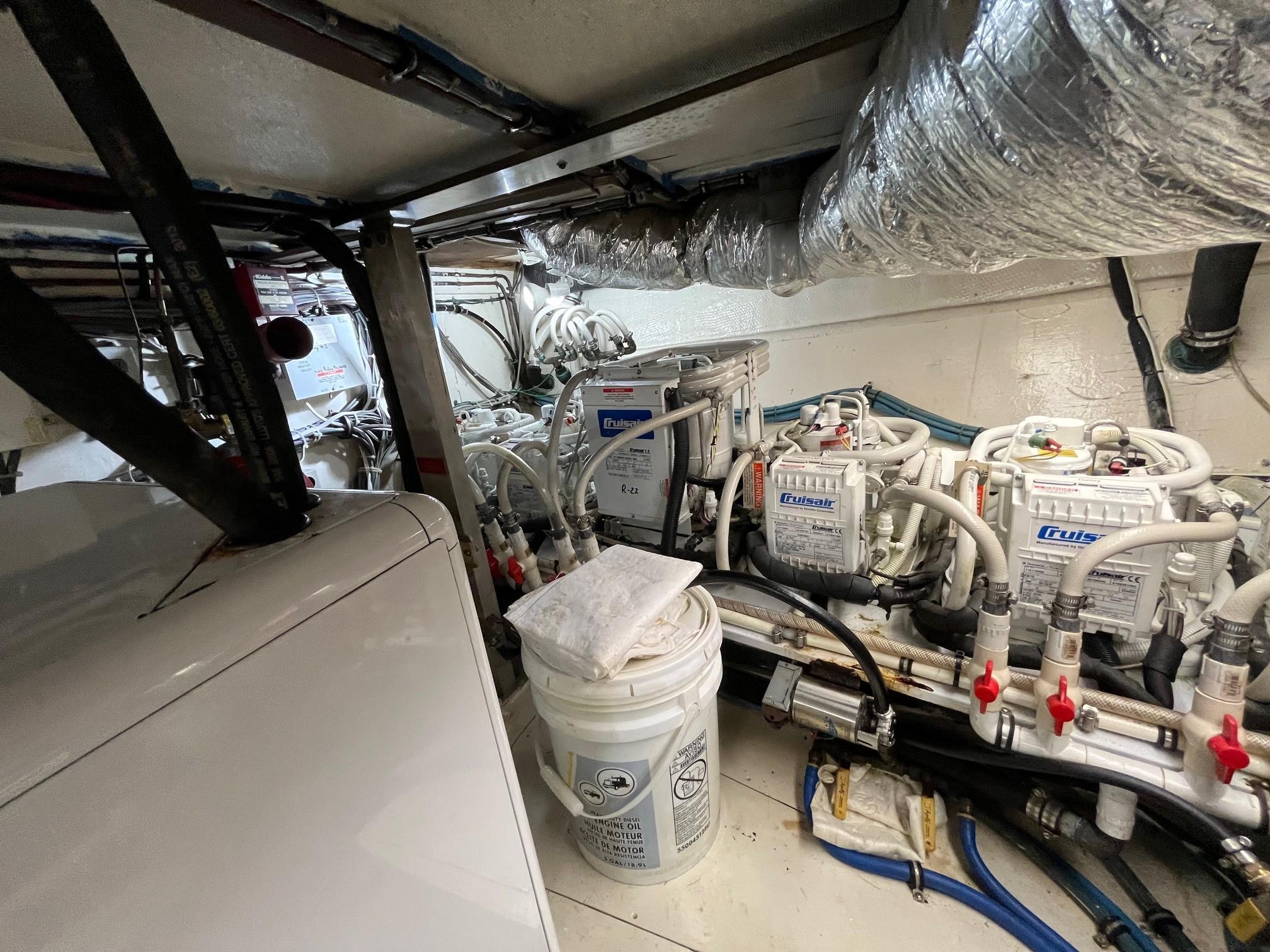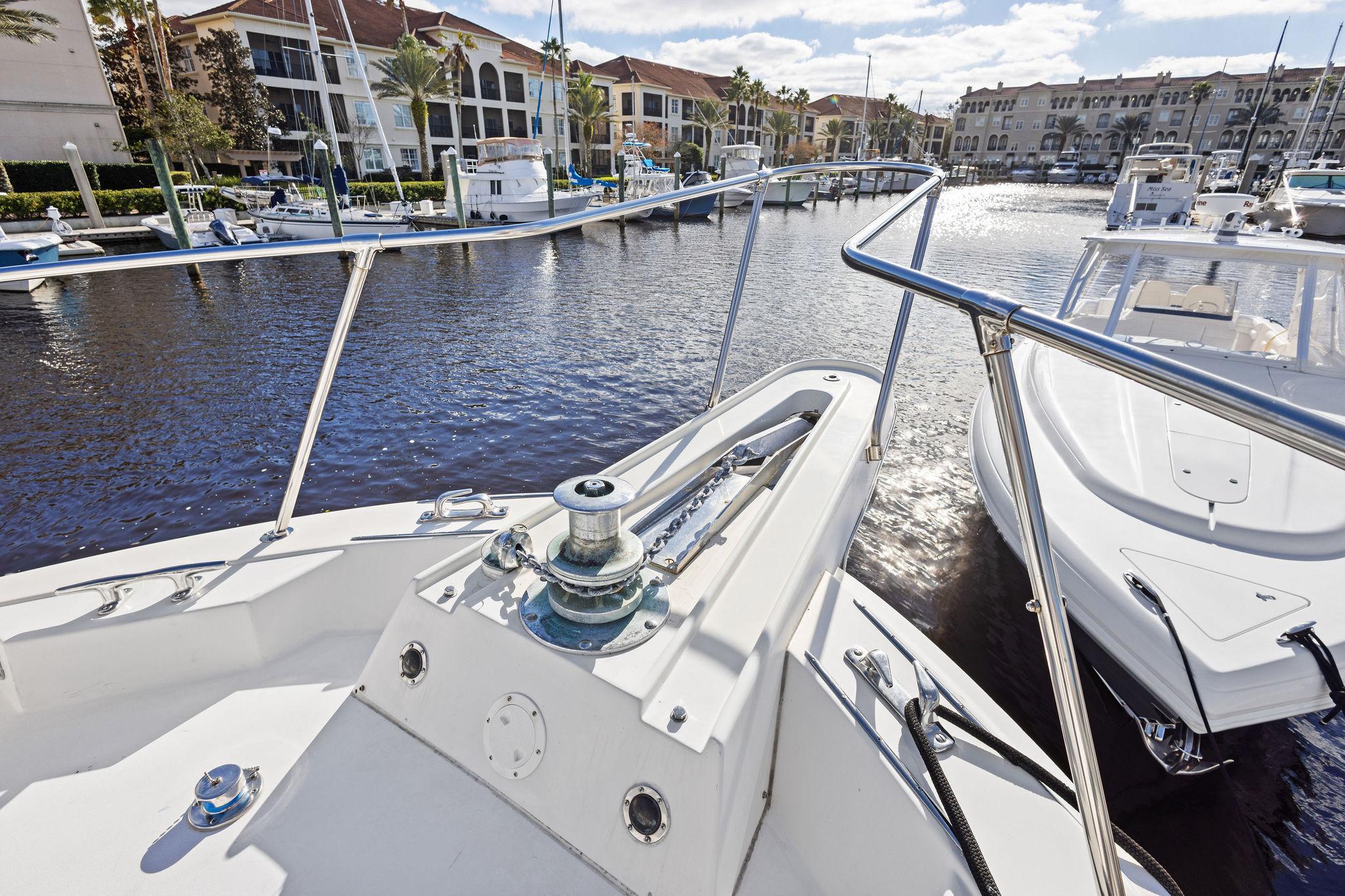 AIRWAVES is one of seven 68 Hatteras cockpit motor yachts whose owners have continually maintained her in an exceptional condition with many upgrades over the years. The vessel has extensively cruised the East Coast and is now in Jacksonville, Florida. The hull is solid fiberglass with a wide beam and deep keel. She features a four stateroom layout each with it’s own head, the galley is on the main deck, a large master stateroom, separate engine rooms and a large spacious salon and dining area. The large flybridge has generous cushioned seating. Her cockpit allows for easy boarding of the vessel, has aft engine controls and custom ladder to flybridge boat deck. She was reportedly painted in 2012 and was hauled in October, 2024 for a complete bottom job and new cutlass bearings. Main engines have 3700 hours since engine blocks were replaced.AccommodationsThe large salon features an L-shaped sofa aft to port, a built in bar area forward to starboard with icemaker and VIZIO 40” flat screen TV above. Dining area is opposite to port. Forward is the galley area with Amtico flooring that extends to the wheelhouse, recent appliances with dinette table to starboard. Further forward is the pilothouse with a bench helm seat, wing doors and a ladder to the flybridge.Descending from the pilothouse are the living quarters. Below the cabin sole prior to entering the staterooms is a very unique double size hinged access to the genset room. The bow stateroom has upper and lower bunk berths to starboard with ensuite head and stall shower opposite. Aft to port is the second stateroom with crossover berths and a head with handheld shower. Further aft and down a few steps is the third stateroom to port with twin berths. Opposite to port is a head with stall shower. Moving aft between the twin engine rooms is the very spacious main stateroom, the size which you don’t normally find on a 68 foot vessel. A large king-size berth centerline aft with a unique dressing area forward to port and ensuite head with tub and shower to starboard.Up from the pilothouse is the very spacious U-shaped seating, bar area to port and helm forward. On the aft end of the hardtop is a davit for lifting a dingy. Galley Ninja air fryer Double SS sink with garbage disposal Kenmore dishwasher Frigidaire Professional microwave GE Profile 4 burner cooktop Kenmore Elite double door refrigerator/freezer Whirlpool trash compactor (under stairs) Comfort & Entertainment Three Vizio flat screen TVs in staterooms and Salon Sony video and disc player in master stateroom Bosch washer and dryer Electric 120/240V AC 12 VDC 20 KW Northern Lights genset in sound shield w/303 hours 20 KW Northern Lights genset w/304 hours Two shore power cords Electronics and Navigation Lower helm: Northstar 800 Loran Northstar 951X GPS Icom VHF Datamarine depth indicator Simrad AP20 auto-pilot Garmin 7610 GPS map 6’ compass in binnacle Upper helm: Datamarine depth indicator Simrad R135 rudder angle indicator 6” Danforth compass in binnacle Deck: Varnished teak side rails w/covers Foredeck seating cushion w/cover 2 Foredeck fiberglass dunnage boxes Galley Maid windlass w/wildcat, 300’ chain, plow anchor in SS shute w/deck controls Davit for dinghy Swim platform Transom door Custom ladder from cockpit to boat deck Cockpit fiberglass storage box Five rod holders in cockpit coaming Marquip boarding ladder Mechanical Cruisair reverse cycle AC with new style digital controls and seven recently installed new compressors Naiad stabilizers Aft clutches and throttles Hot water heater Plumbed for water maker All heads replumbed for fresh water Comments:With her many upgrades and recent bottom job, AIRWAVES is ready to go boating now. Owner is motivated to sell.