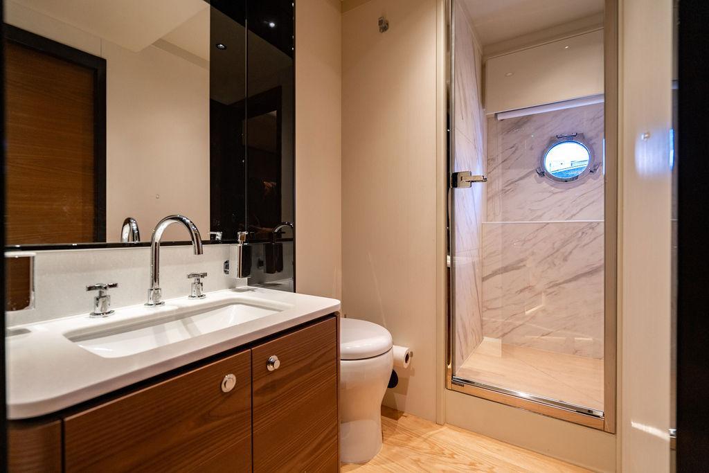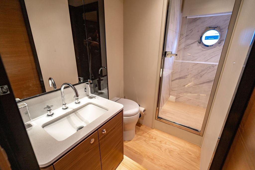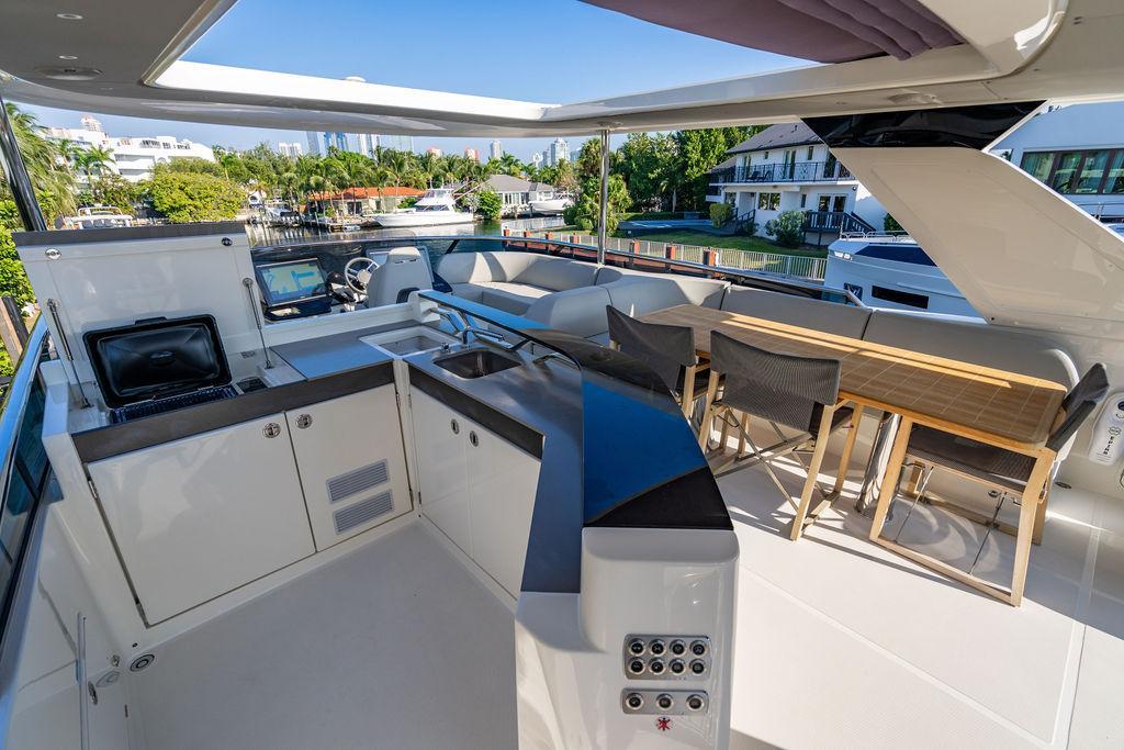 Welcome aboard “Kingship” a 2023 64’ Absolute Navetta. The 64’ Absolute Navetta is an award winning vessel and in a league of its own when it comes to design, layout, comfort and style. The salon offers beautiful high end Italian furniture under the high ceilings with large panoramic windows, allowing you to keep the natural light flowing in all while having uninterrupted views. The galley is strategically placed aft in the salon to keep you connected to your guests while you prepare a meal at sea. Your raised lower helm is fully equipped and tucked away, offering great visibility for easy navigating from the comfort of the salon. Below deck, the full-beam master suite offers luxury and privacy, featuring a king-sized bed, expansive side windows, and a spacious en-suite bathroom. The VIP cabin and third twin cabin, both with en-suite bathrooms, offer the same level of refinement, ensuring that every guest enjoys maximum comfort and privacy. "Kingship" also offers an enclosed laundry room with large storage and pantry space not often found in vessels this size. Moving outdoors, the 64’ Absolute Navetta checks off all boxes. Just a few steps above the cockpit, the spacious flybridge features ample seating, a fully equipped wet bar, and a thoughtfully designed helm for easy navigation. You can enjoy the option to stay sheltered or, with the push of a button, retract the sunroof and aft awning to soak up the sun. At night, you can also gaze at the moon and stars while navigating under the open sky. The cockpit has two beautiful hi-lo tables that convert into one large dining table in two easy steps. Electrical privacy curtains are integrated into the cockpit roof on both port and starboard side and along aft end to raise or lower as needed. Moving to the bow area you will find a u-shape sofa complimented by a hi-lo teak dining table, and large sun pad forward. This area also has a sun fly option giving you protection from the sun. As you make your way back to the cockpit on the starboard side, you will notice the entrance to the crew cabin that is equipped with sleeping accommodations for two and full head with shower. To cap it off, we’ll head to the beach club, located behind the watertight glass doors. Fully air-conditioned, this space can easily be converted into an additional stateroom with a queen-sized bed and a full head. The hydraulic swim platform, designed to carry a tender, can also be shielded from the sun with an optional Sunfly. The owners of “Kingship” are seasoned yacht owners and know how to equip and maintain a vessel. “Kingship” is the best 2023 64’ Absolute Navetta on the market.