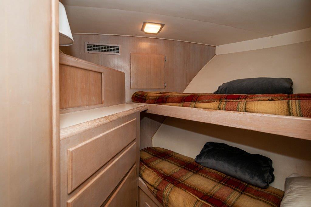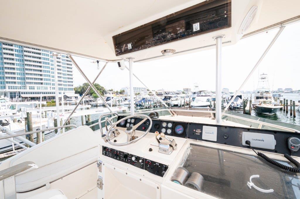 1991 45 Hatteras Convertible Yacht REEL BROKE for sale. With extensive outfitting done in the last 18 months, REEL BROKE is ready for her next owner. The 692 Detroits have 1600 hours and less than 250 hours on the rebuilds with new turbos. The ship cruises at about 18 knots, burning 30-31g/hr combined. The top-end speed is about 21 knots. This ship’s 132-square-foot cockpit features a molded bait and tackle station, live well, in-deck fish box, and transom door with a coaming gate. Moving into the salon, you see a tasteful U-shaped seating starboard with a serving bar, upgraded entertainment system, and TV. The galley is located to port as we descend to the staterooms. The mid-ship master has a queen-sized island bed with a separate stall shower. The guest stateroom in the bow has over/under bunks starboard, washer and dryer opposite, and private access to the day head. The quality of care is apparent when walking through and around this boat. The bottom was cleaned every month; biweekly if fishing. Updates Completed June 2024:Aftercoolers cleaned/servicedNew Impellers on Mains and GeneratorNew Freshwater Pump on GeneratorBottom JobAdded an in-hole secondary 1kw ChirpExpanded A/C through-hole and strainer intake from 3/4" to 1 1/4"Steering Ram rebuiltAdded a 16,000 BTU Self-contained A/C unit to Salon(2) 19" Secondary Displays (1 in cockpit, 1 in Bridge)Dedicated battery in Windlass Locker (Still synced with house power) w/ master shutoff and smart chargerNew Stern Anchor w/ LineNew LED lights under gunwales New LED accent lights along the gangway and above windows on the exteriorNew LEDs in Salon overhead and backlit TV