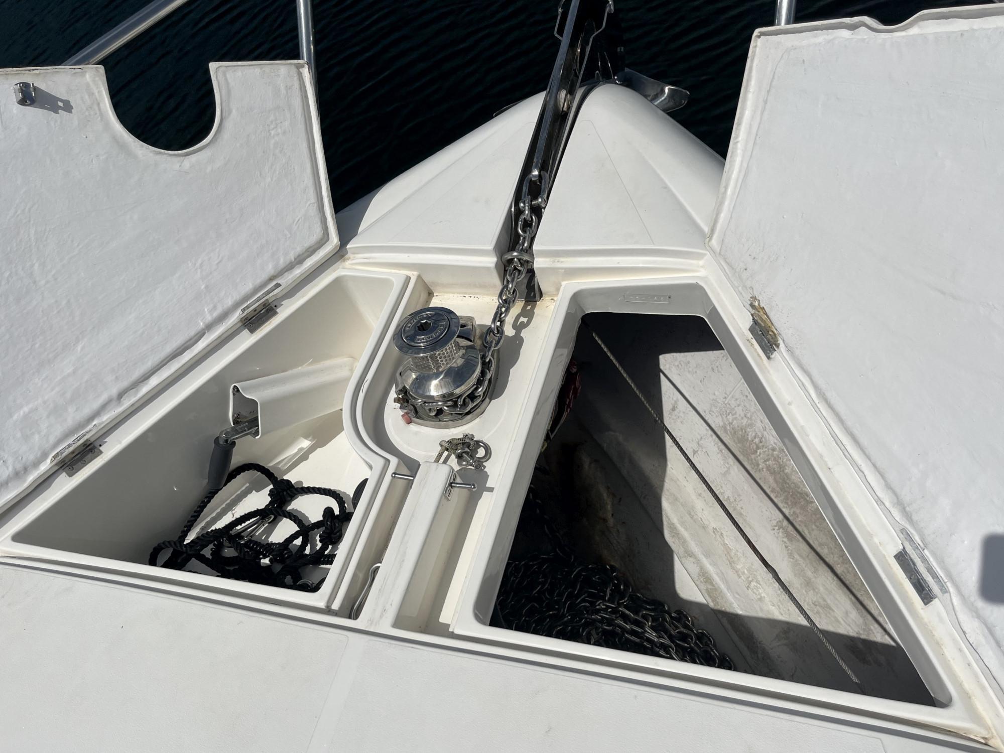 External Equipment* Reversible electric anchor winch (2000W) with foredeck and helm position controls