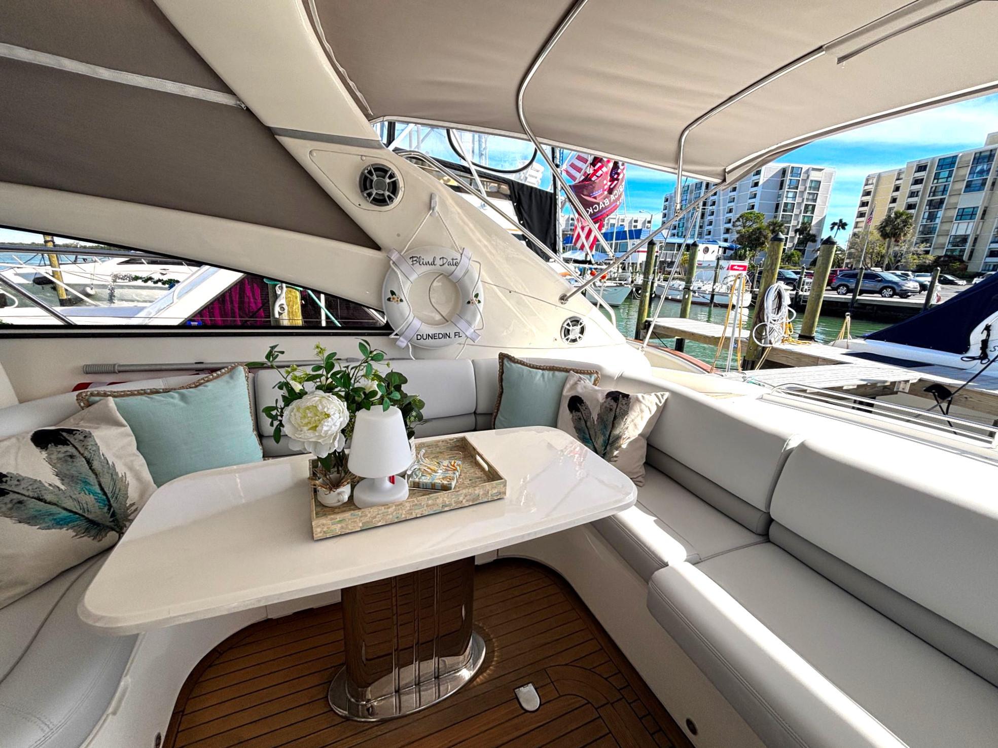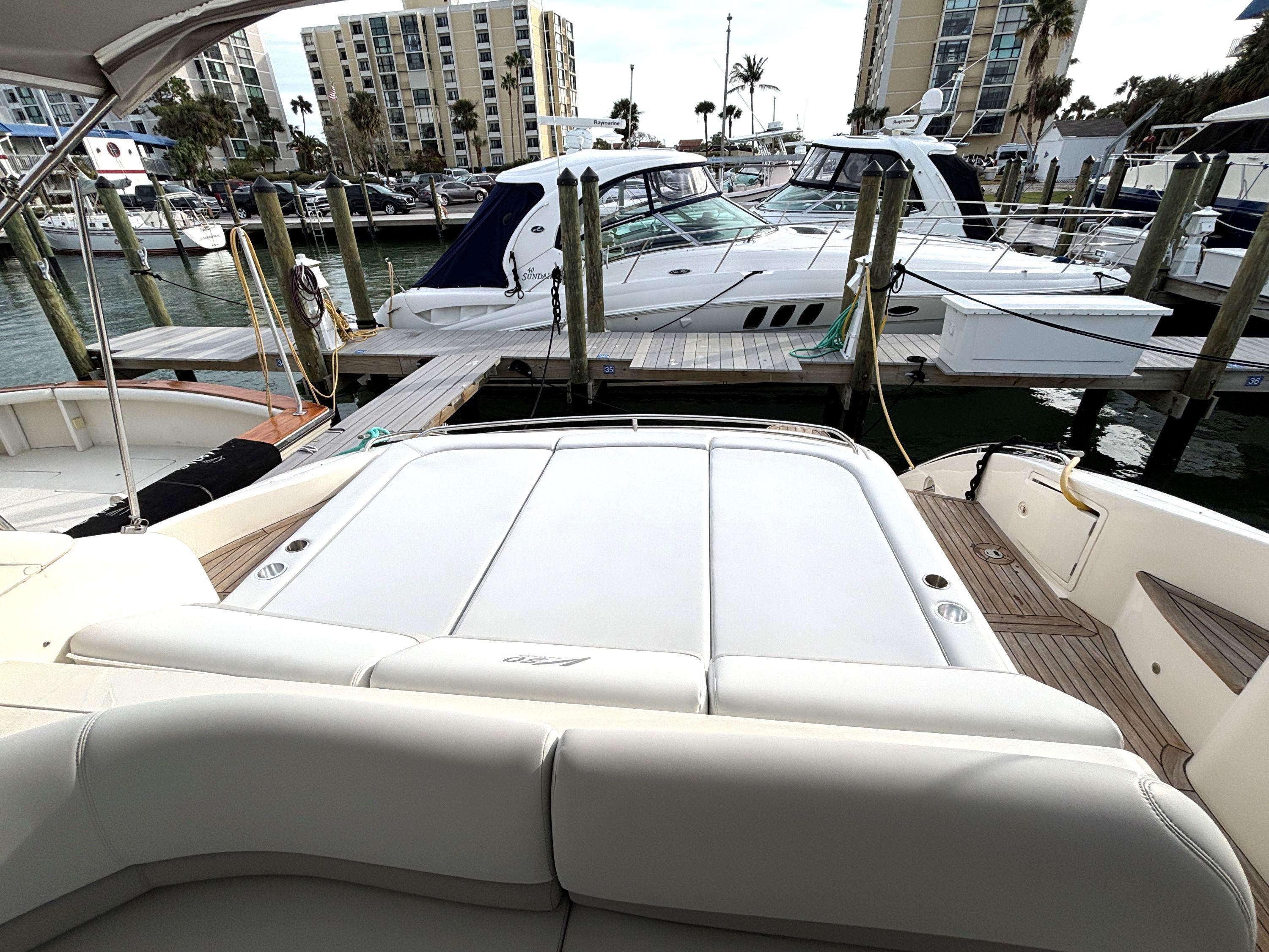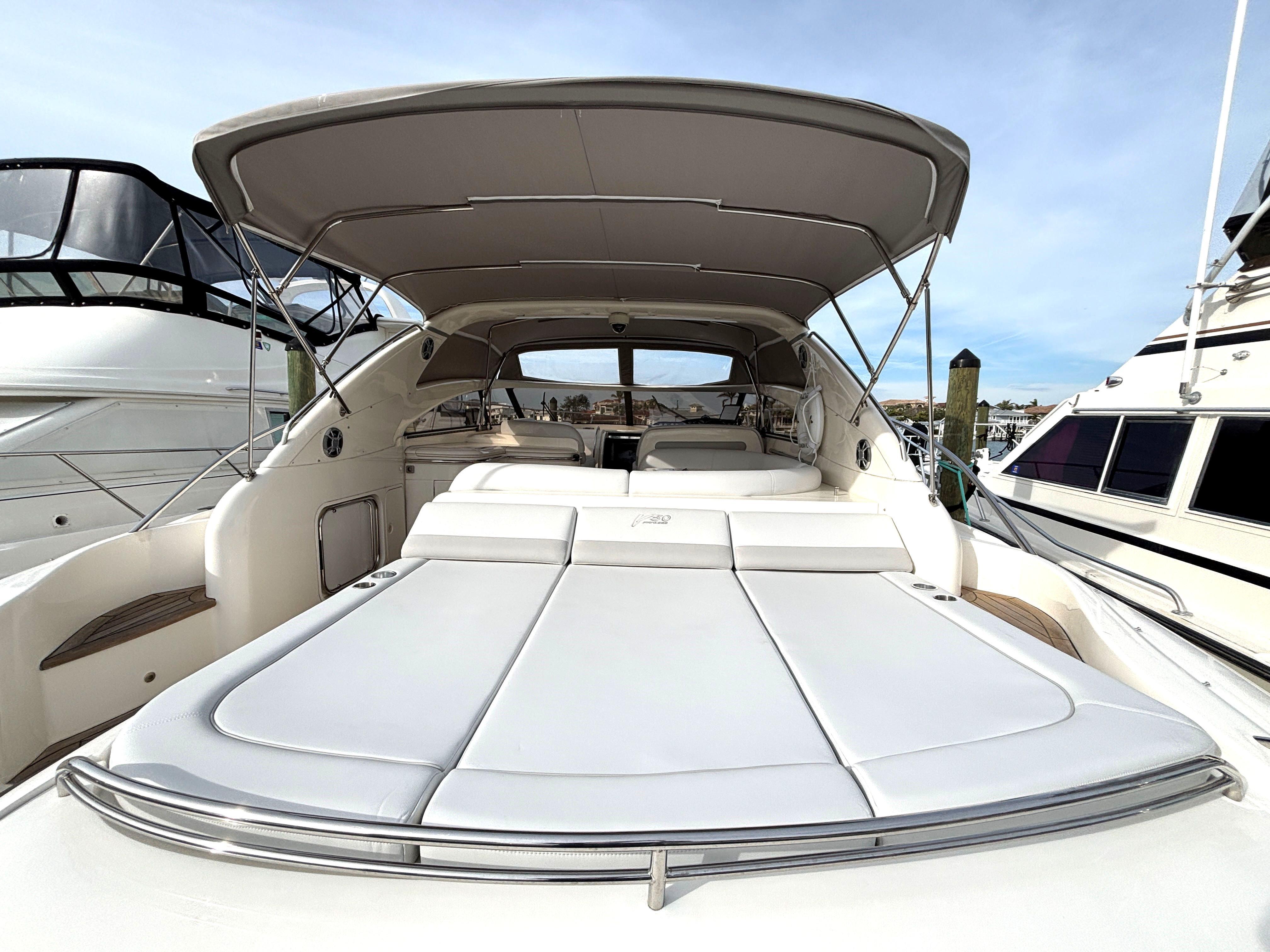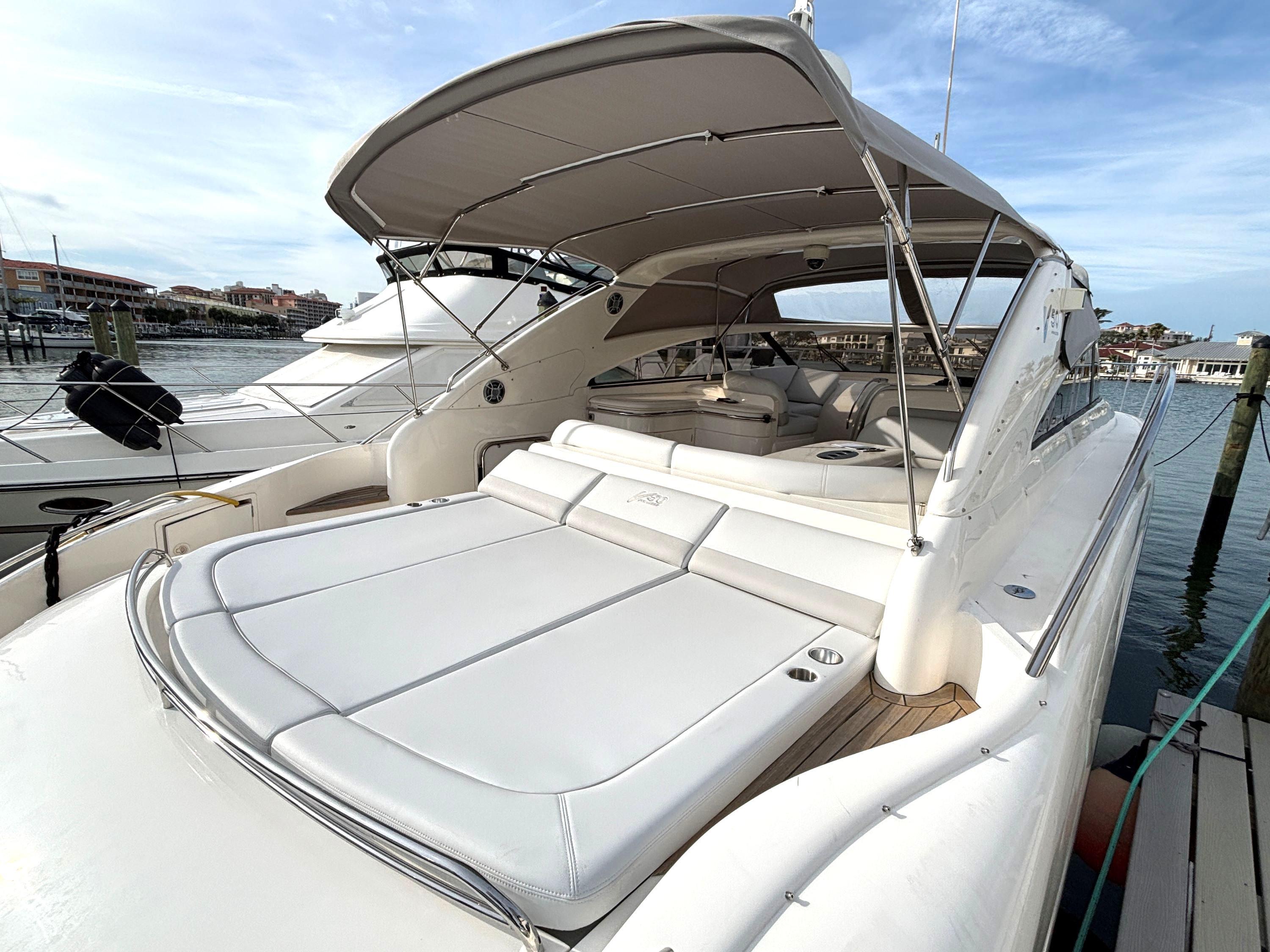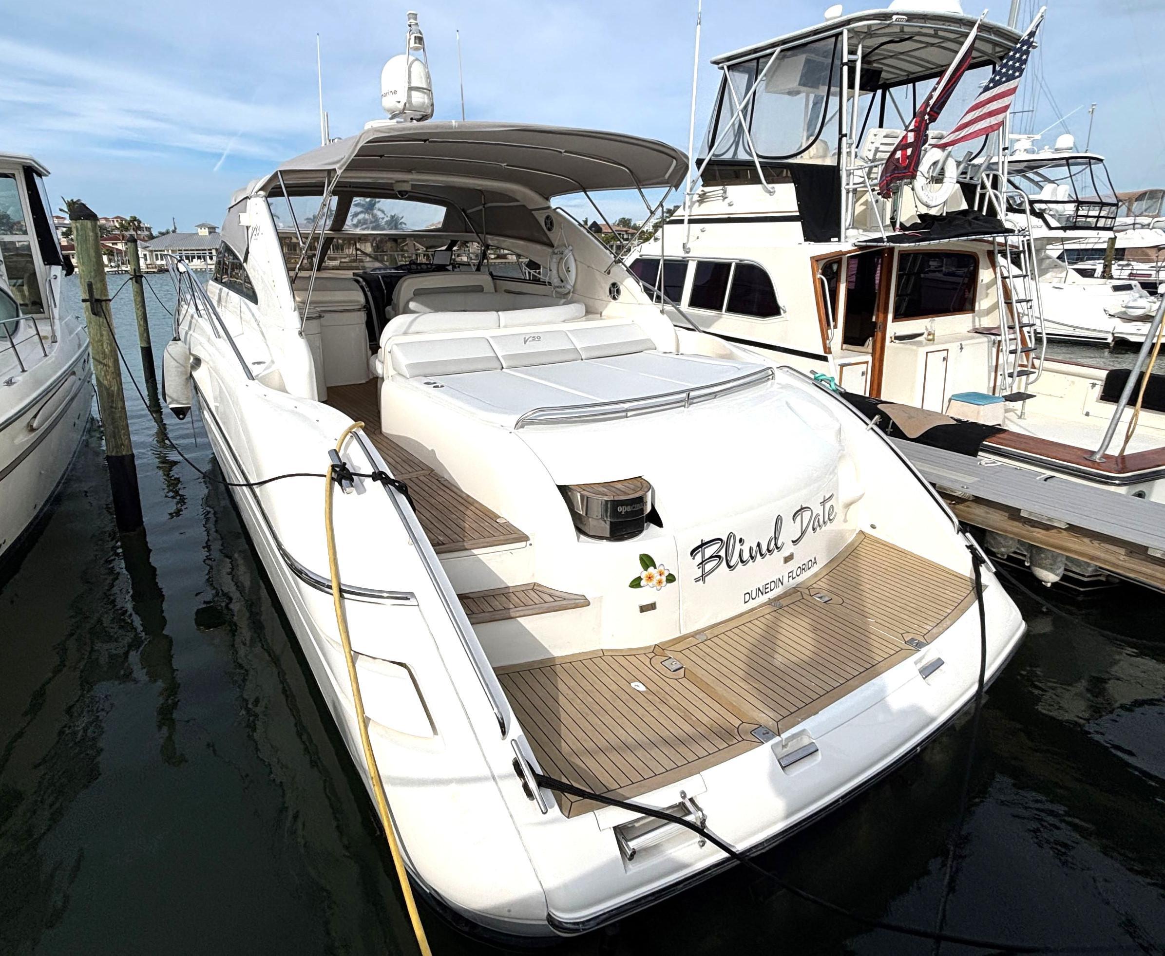 $25,000 price reduction on this beautiful yacht; at $249,500 she is now one of the best value, most beautiful and superbly well-maintained 50ft boats on the market today. Her owners have just undertaken a major refit and mechanical service to include beautiful silicone vinyl cockpit upholstery and custom teak and holly C-Flor in the cabin. She has just received major service of both engines and generator to include complete cooling systems, turbo, sea cocks, hoses and boat's steering. A fresh bottom job and cutlass bearings complete the refit; in total some $120K has been spent in the last two years.Blind Date features an expansive cockpit for entertaining and all of the high-end comforts and finishes down below. It provides all of the form and function of a Viking Yacht with all of the details and comfort of Princess Yachts. It features two (2) upgraded D12 715HP Volvo Penta engines and Onan generator.