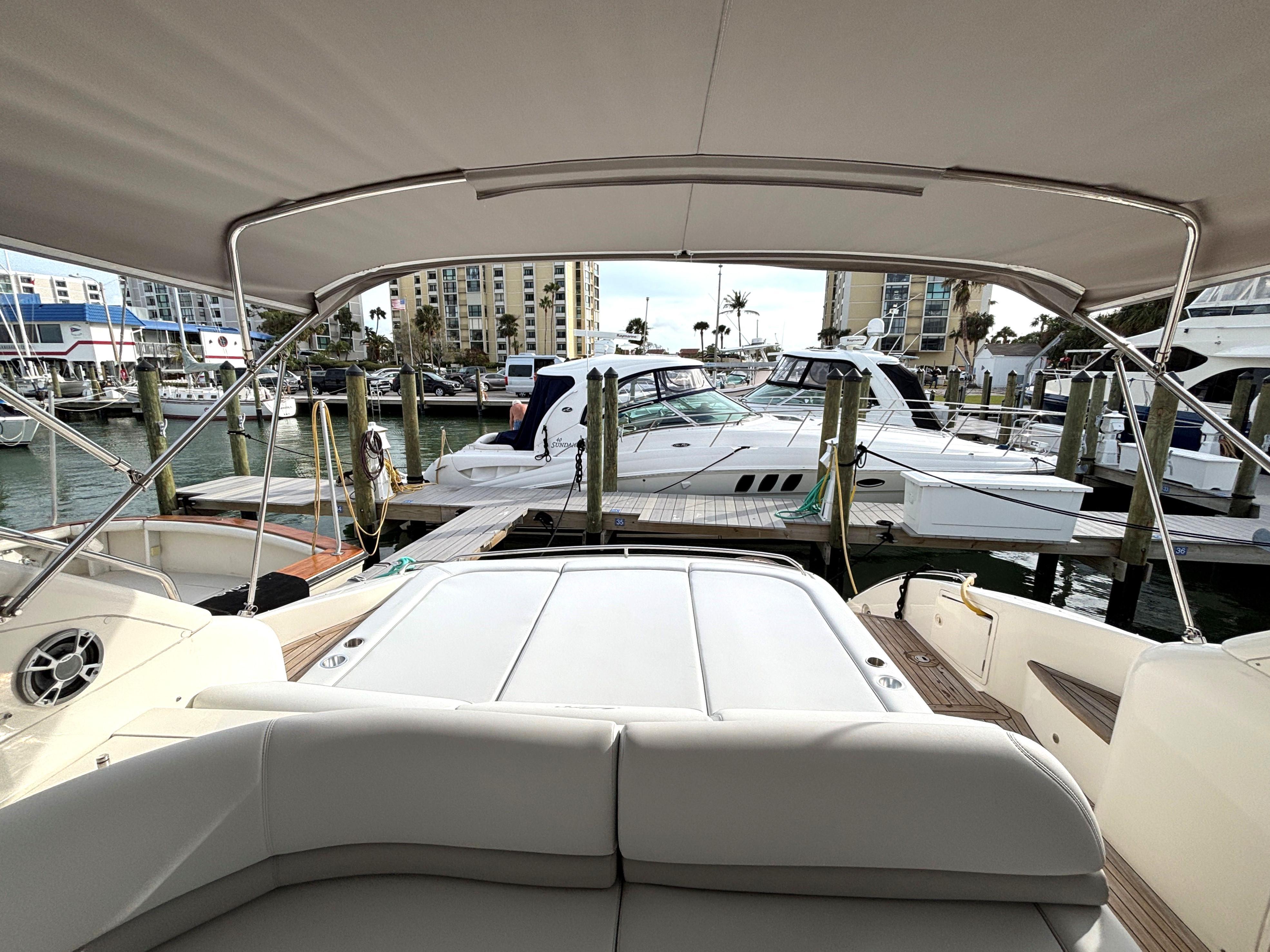 - Cockpit arch has dimmable lights and four (4) stereo speakers and helm has two (2) stereo speakers (all new in 2019)