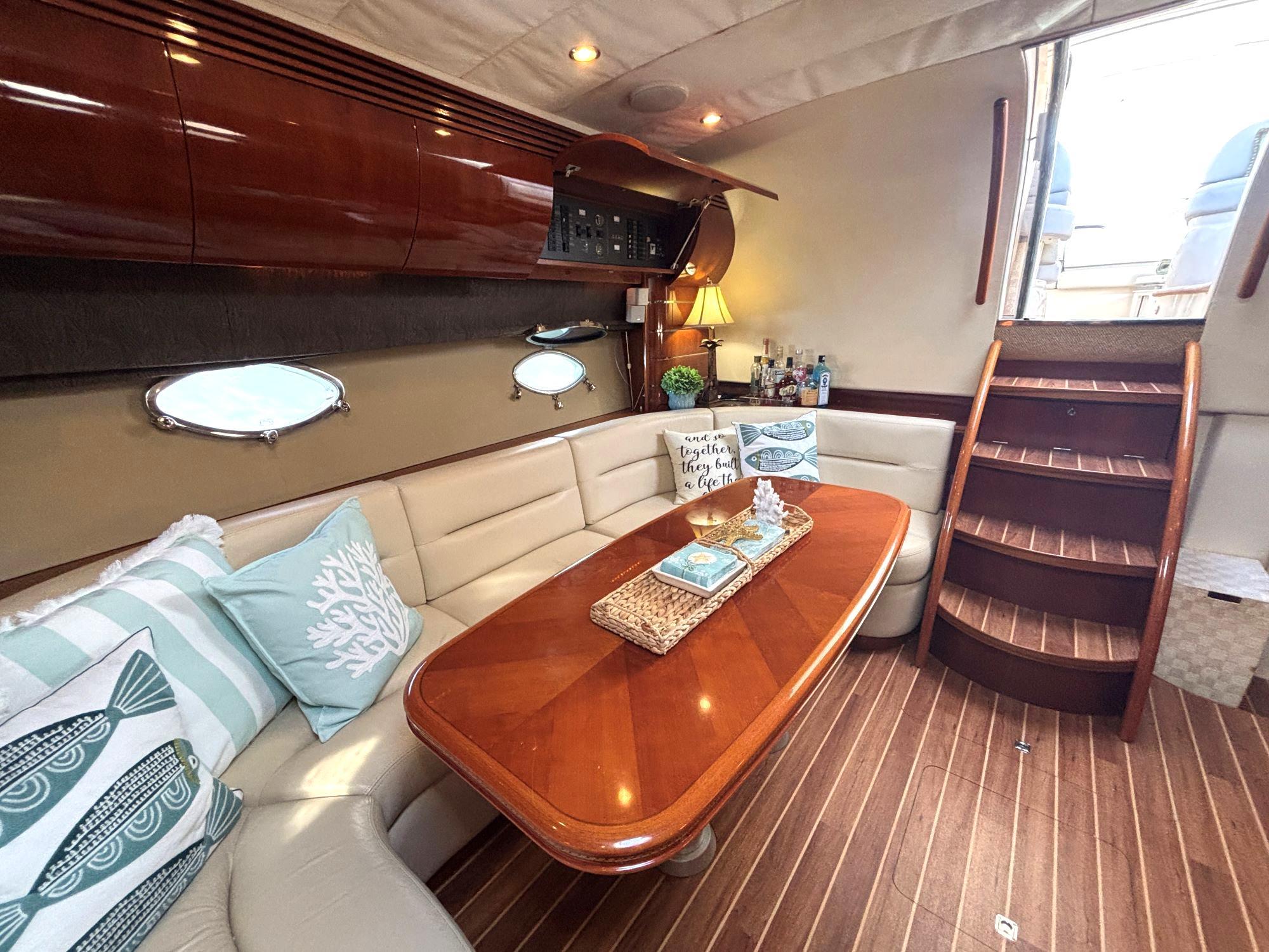 - U-shaped cockpit seating aft with cockpit table
