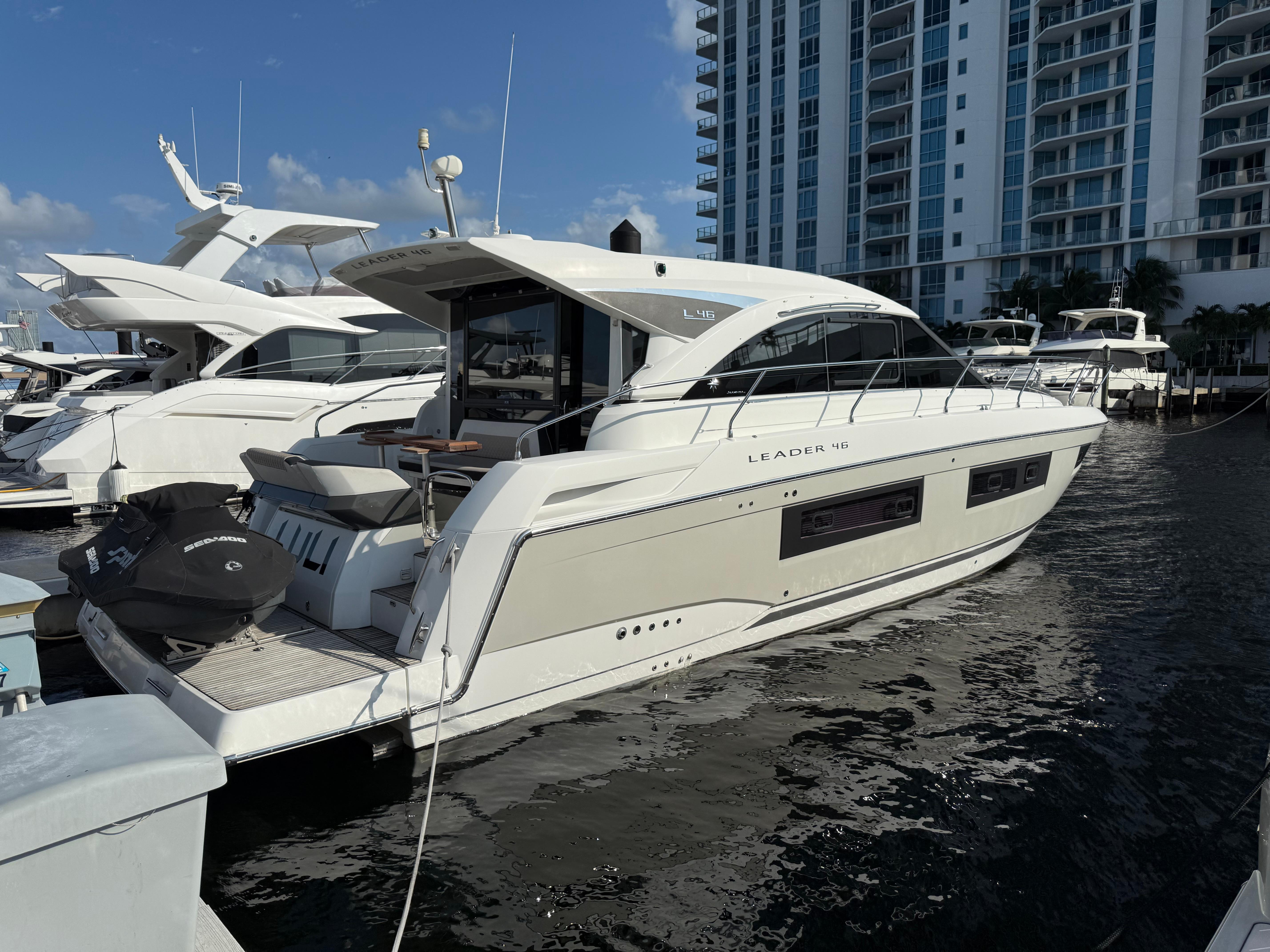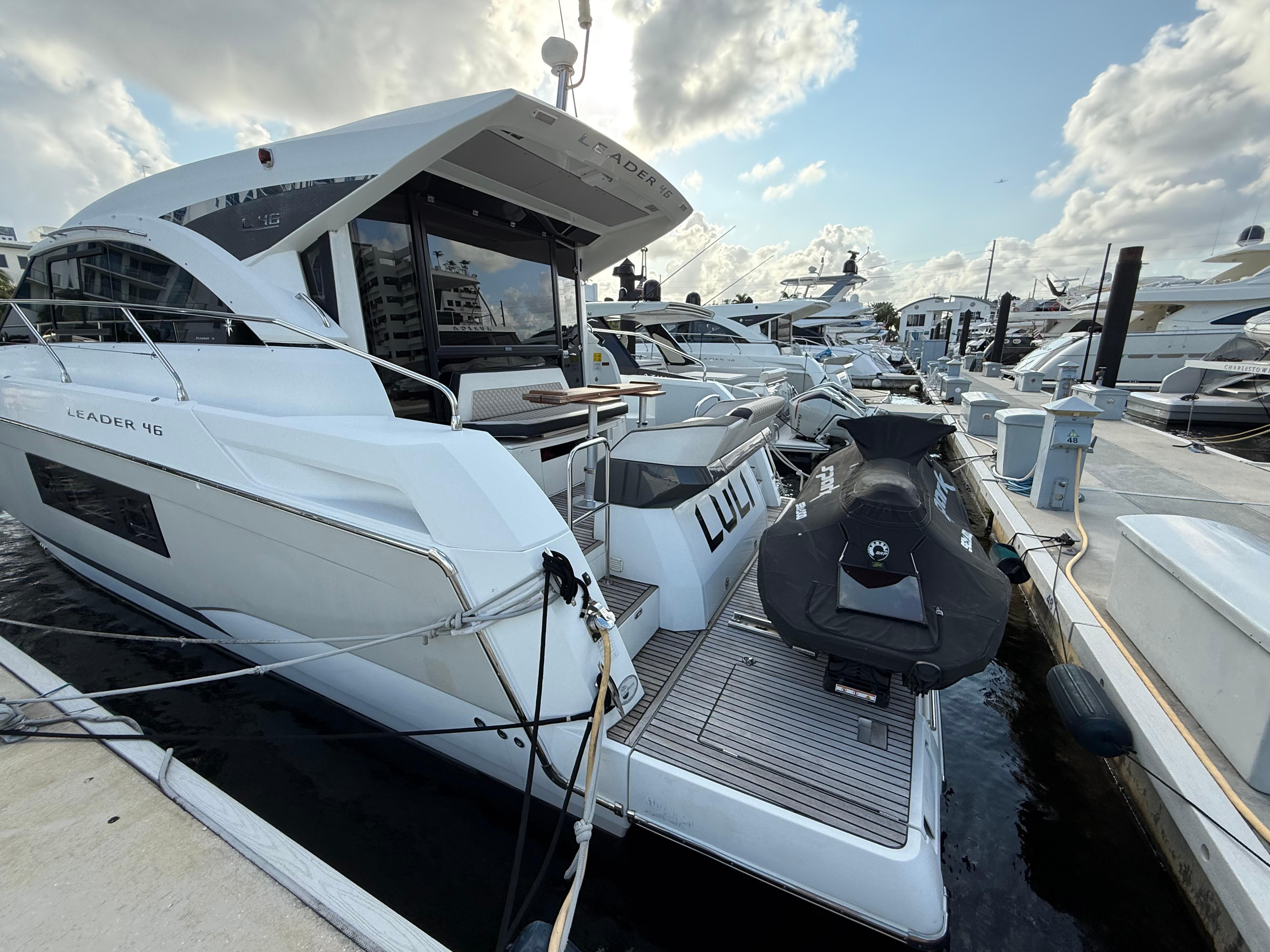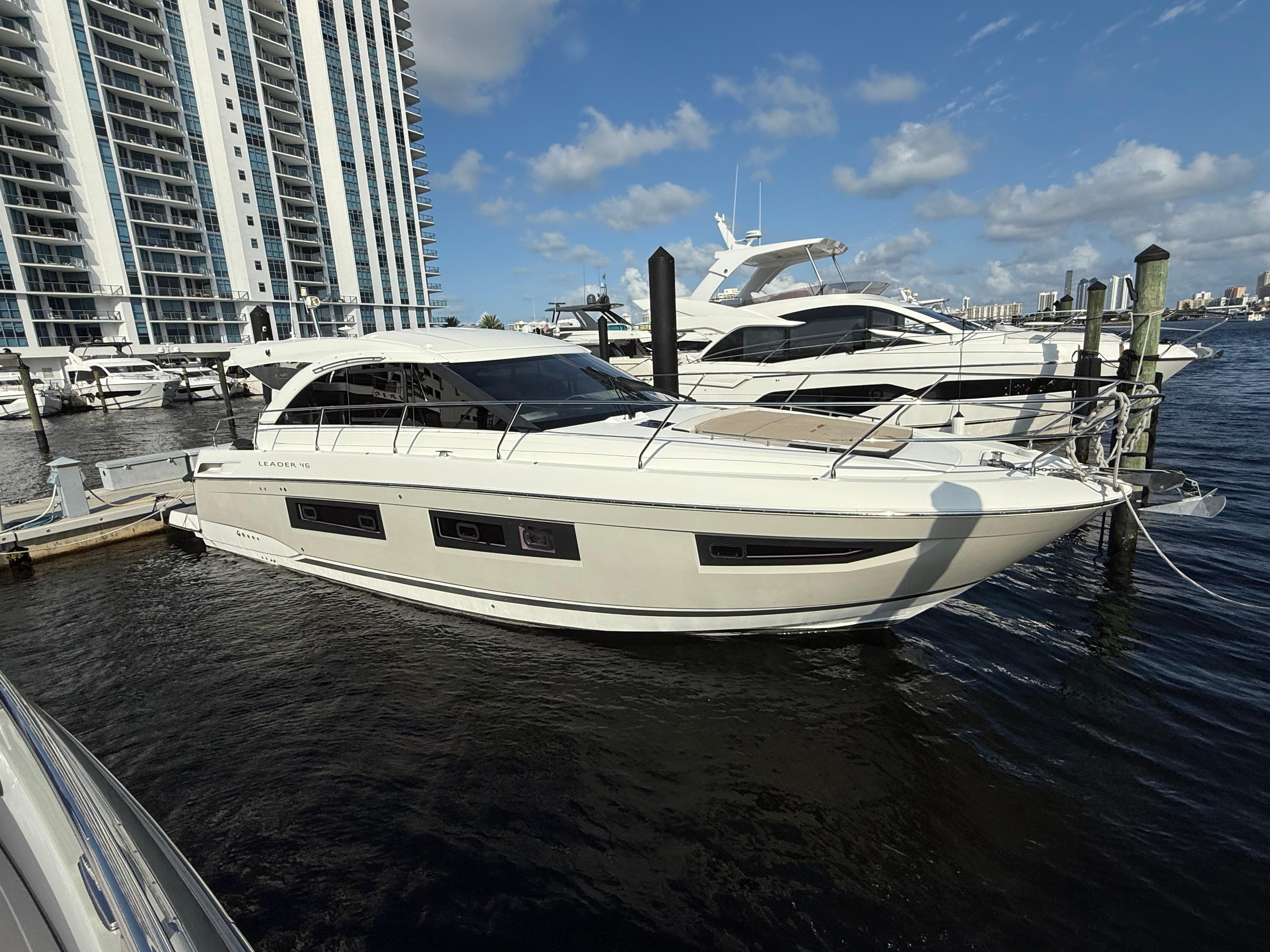 All trades consideredMotivated seller!Turnkey, taken care of with an open wallet!Joystick Control (Easy to operate) Discover the blend of French elegance and powerful performance with this stunning 2017 Jeanneau Leader 46. Known for its sleek design and luxurious comfort, this Leader 46 embodies the perfect balance of style and functionality, ideal for day cruising, weekend getaways, or longer adventures on the water. Key Features: •Power and Performance: Powered by twin Volvo IPS 600 engines, the Leader 46 provides smooth handling and impressive speed, making it a thrill to captain.•Luxurious Interior: The spacious, modern interior features a full-beam owner’s suite, a beautifully appointed guest cabin, and ample living space, perfect for entertaining or relaxing in privacy.•Open, Airy Layout: The salon and cockpit area boast large windows and an open layout, seamlessly blending indoor and outdoor spaces. A retractable hardtop lets you enjoy open skies or shaded comfort at the touch of a button.•Fully Equipped Galley: The galley includes all essentials, including a refrigerator, microwave, stove, and generous storage, making it as functional as it is stylish.•Easy Docking: Equipped with joystick control, maneuvering this 46-footer is simple and stress-free, whether you’re docking in a marina or navigating tight spaces. With her bold lines, sporty feel, and luxury appointments, this Jeanneau Leader 46 is more than a boat—it’s a statement on the water. Whether you’re looking to host friends, enjoy family time, or embark on solo journeys, the Leader 46 is ready to deliver unforgettable experiences. Ready to make this Jeanneau Leader 46 yours? Get in touch today to schedule a viewing.