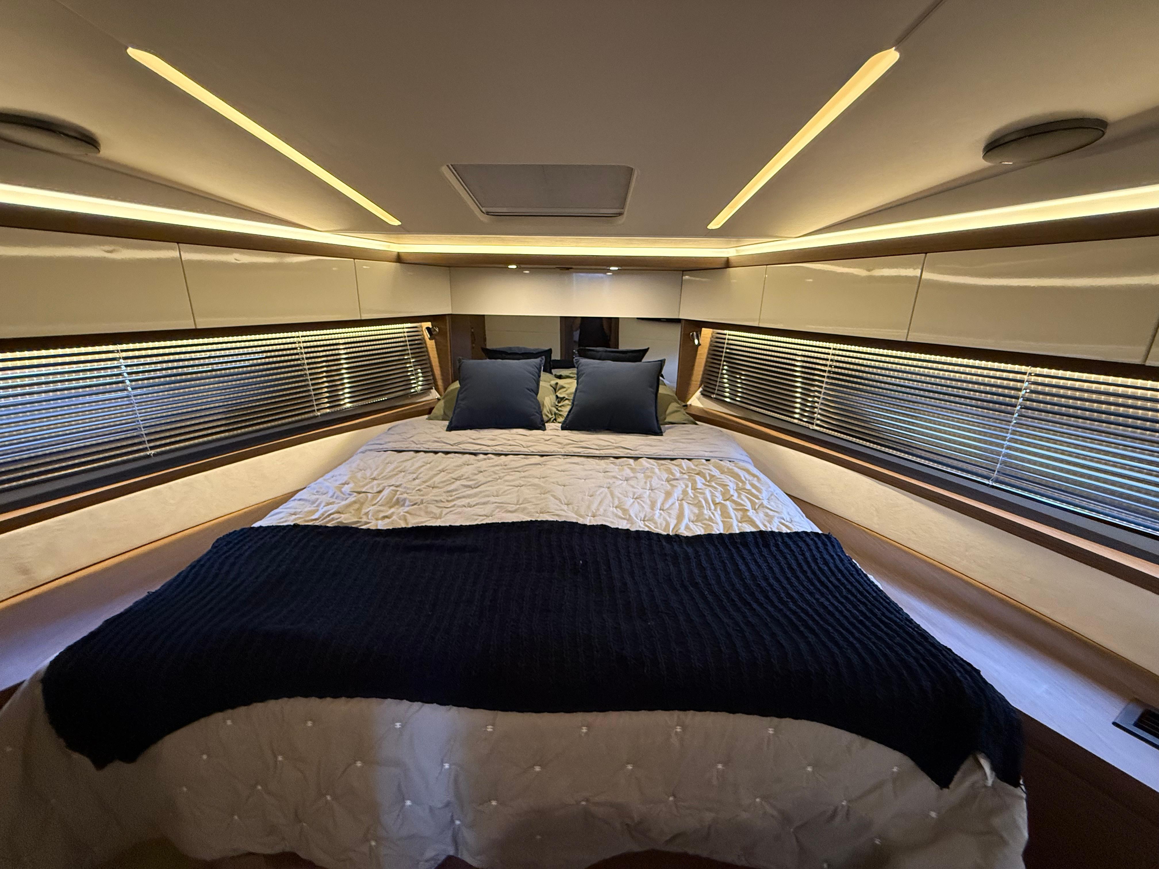 A true owner’s suiteisa pleasant surprise, with her superb central cabin and aking-size, modular head and shower compartment.