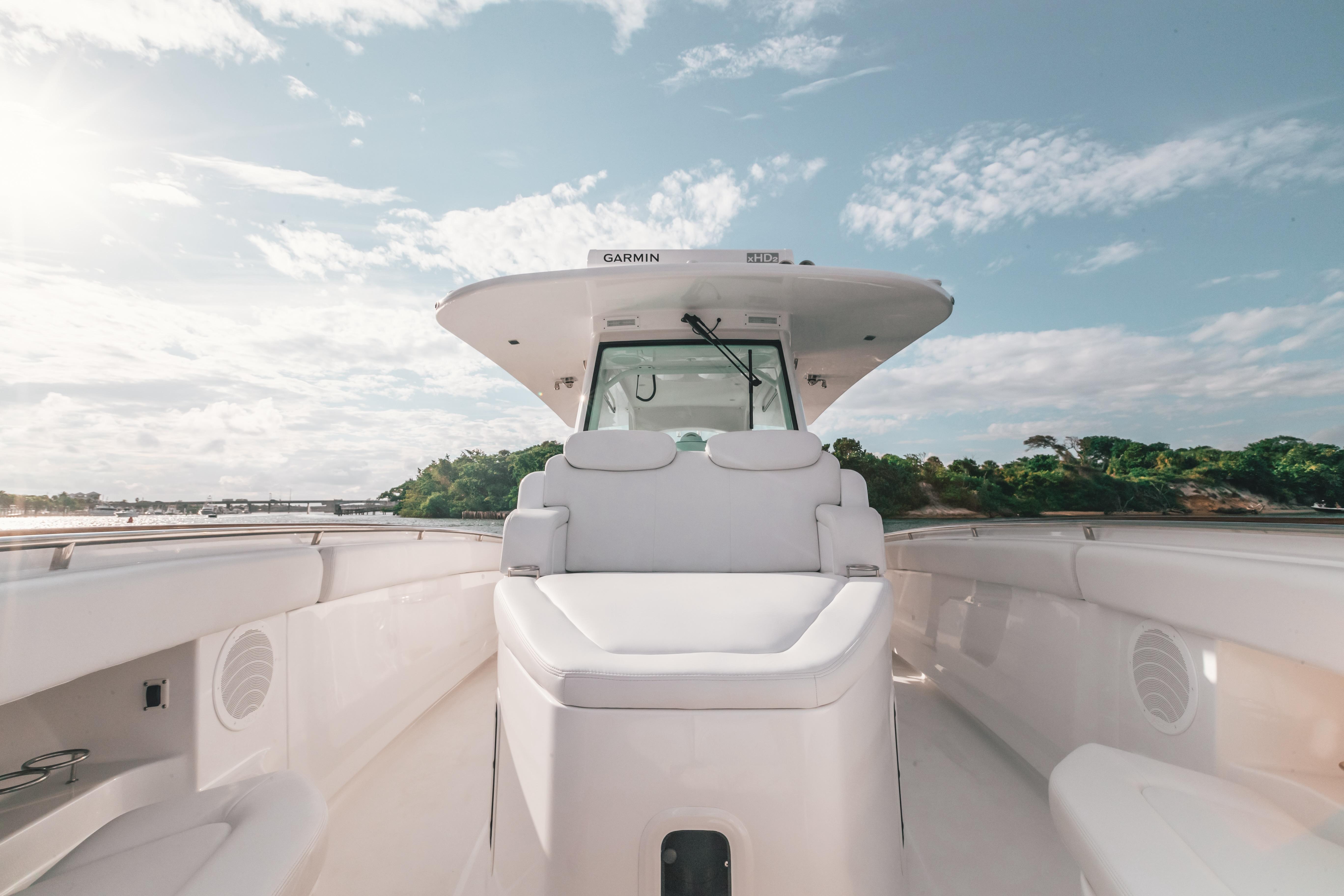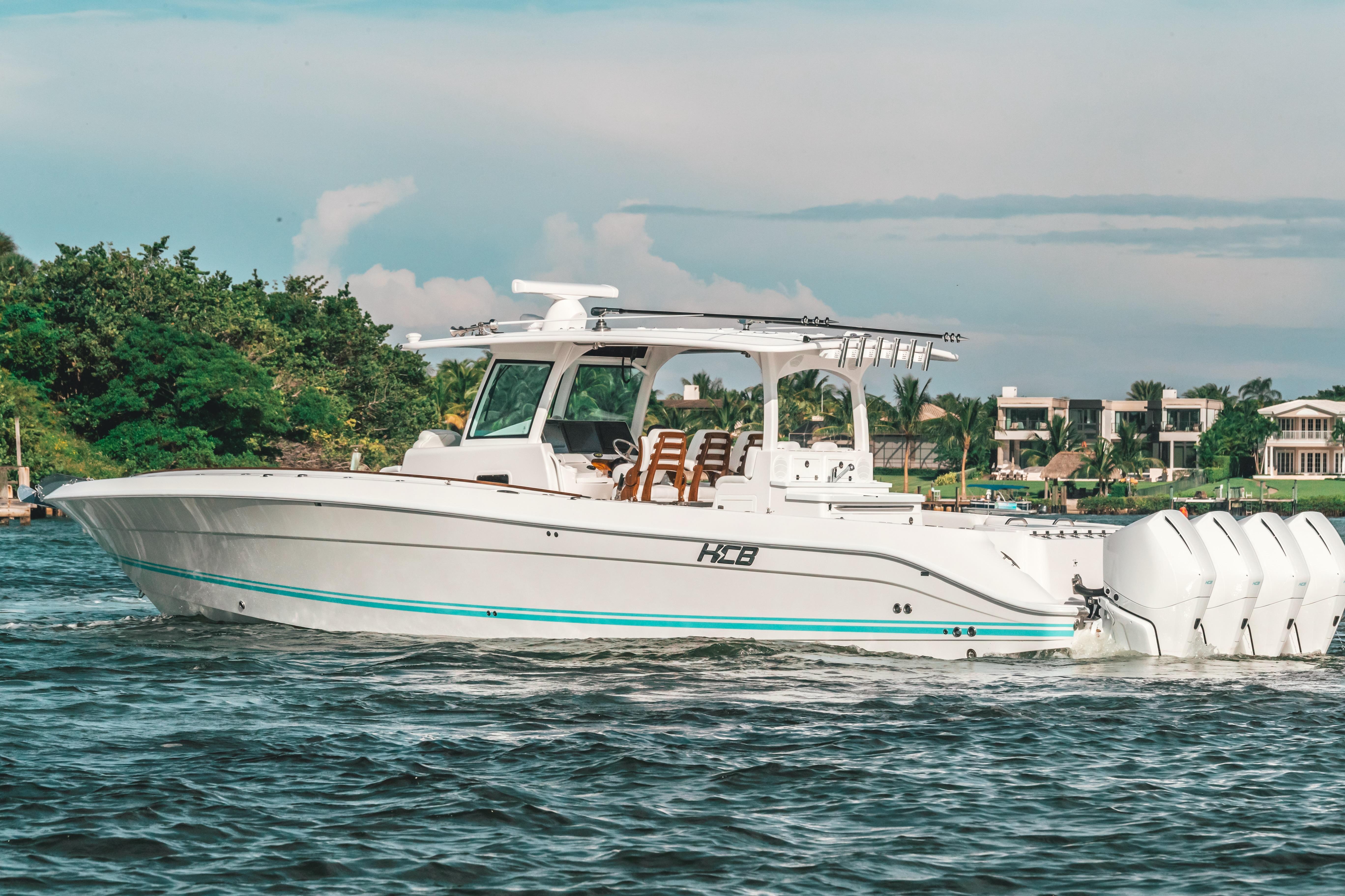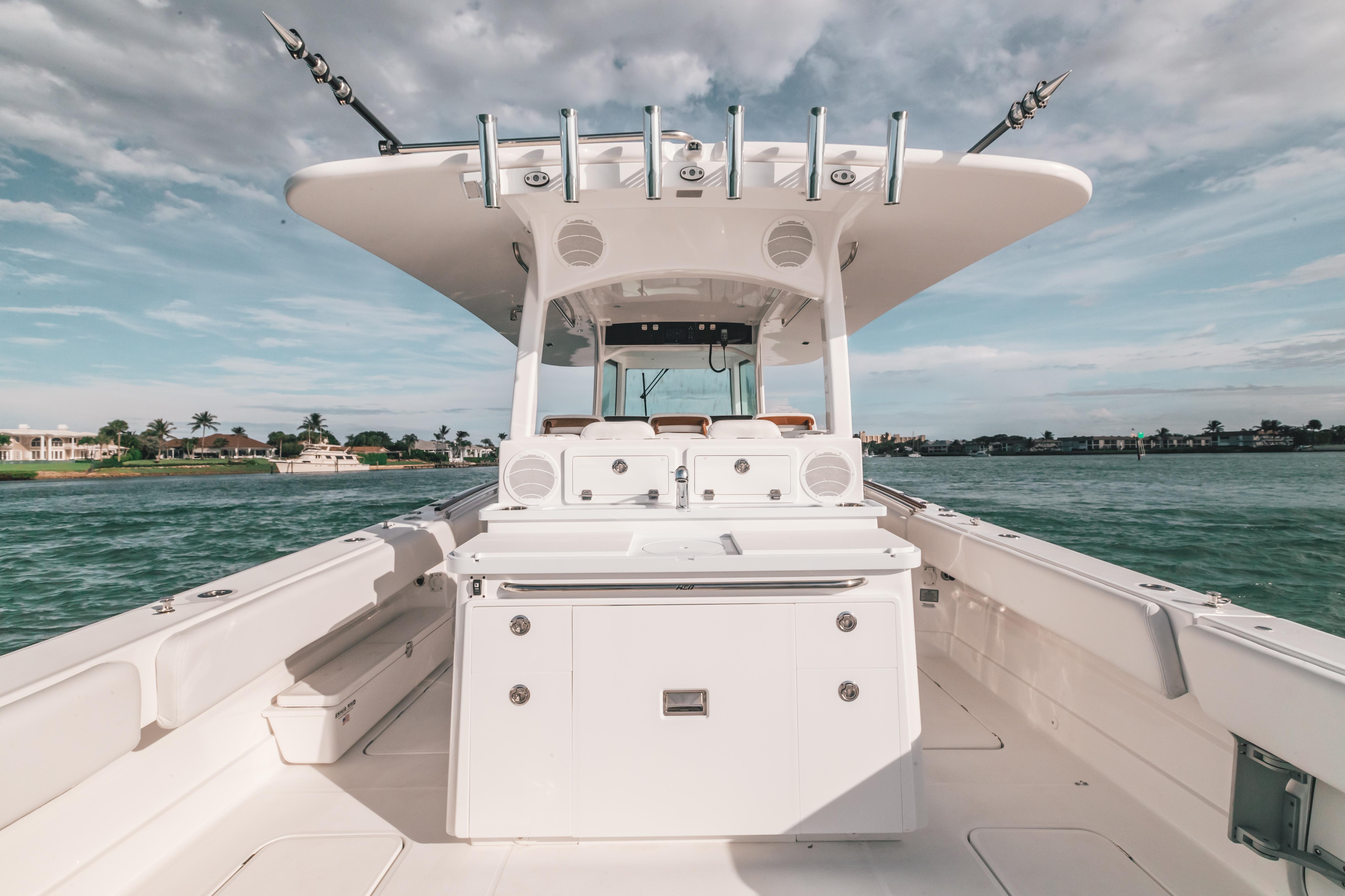 2021 42 HCB LUJO! LOW HOURS ON QUAD 450R MERCURY! SEAKEEPER EQUIPPEDRELEASE MARINE HELM SEATING SECOND ROW SEATING AFT LIVEWELLS WITH PULL OUT BENCH BOW THRUSTER AND JOYSTICK CABIN AC UPGRADED GARMIN PACKAGEUPGRADED SOUND SYSTEM