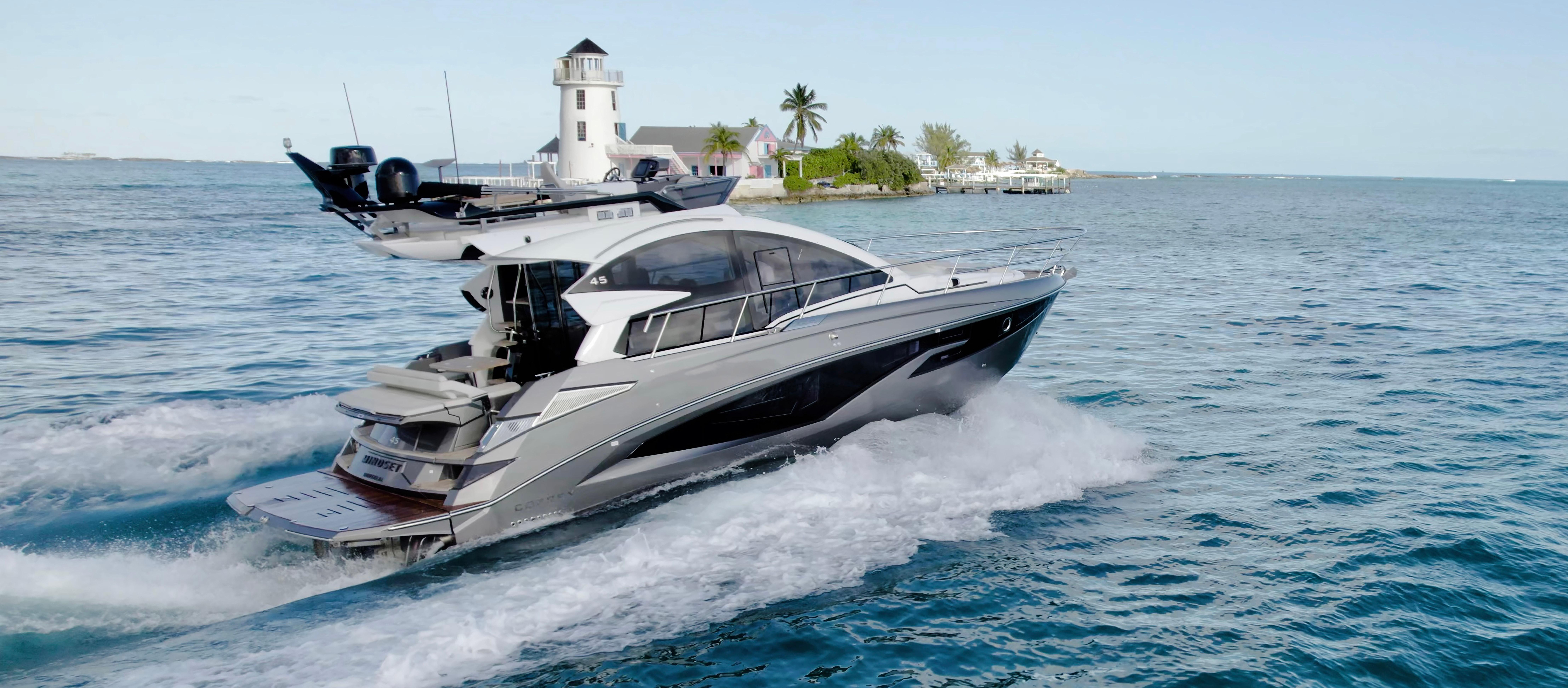 All-New 2025 Cobrey 45 Fly – Now in the USA! Volvo Penta Direct DriveFirst Hull Arrives Oct. 2025 Grab this delivery before it's gone! First Hull Incentives Available.Europe’s renowned Cobrey Yachts has officially landed in the USA, bringing the all-new 2025 Cobrey 45 Fly to American waters! This luxurious flybridge yacht, known for its Italian craftsmanship and superior design, offers an unbeatable combination of performance, comfort, and style in the 40-50 ft yacht class. With its first U.S. hull arriving in October 2025, now is the time to secure your order and be among the first to own this high-end motor yacht. The Cobrey 45 Fly will be delivered with Volvo Penta Direct Drive Engine Systems, offering unmatched reliability, efficiency, and smooth performance—a superior alternative to POD propulsion systems. Whether you're cruising the Tampa Bay, St. Petersburg, Clearwater, or Sarasota waters, the Cobrey 45 Fly stands out as a premium alternative to brands like Princess, Sunseeker, and Prestige Yachts – all at an incredible value. Key Features:Twin Volvo Penta Straight StaftDiesel GeneratorBow and Stern ThrustersBimini TopTeak throughout exterior main deck and flybridge12" Touchscreen GPS/Chartplotters Main Helm and Fly StationJoystick for ShaftlineHydrolic Swim PlatformPremium Fusion / Bose Stereo SystemUnderwater lights and more!The Perfect Yacht for the Gulf Coast LifestyleThe 2025 Cobrey Yachts 45 Flybridge combines sophistication, performance, and versatility, making it an ideal choice for Florida’s waters. Whether you're cruising the serene waters of Tampa Bay, enjoying the vibrant nightlife of St. Petersburg, or exploring Sarasota’s breathtaking coastline, this yacht adapts effortlessly to your lifestyle.With its direct drive system—a sought-after alternative to PODS—the Cobrey 45 Flybridge offers lower maintenance costs, increased reliability, and a smoother boating experience. This yacht is not only a showstopper but also a practical and powerful solution for Gulf Coast adventures. (IPS system is available.)Explore the 2025 Cobrey 45 Fly TodayCurrently available for order and delivery starting October 2025 through first quarter 2026. Cobrey is an incredible yacht ready for you to experience. Contact us now to learn more about the Cobrey 45 Flybridge. Don’t miss the opportunity to own this exceptional motor yacht and redefine your time on the water