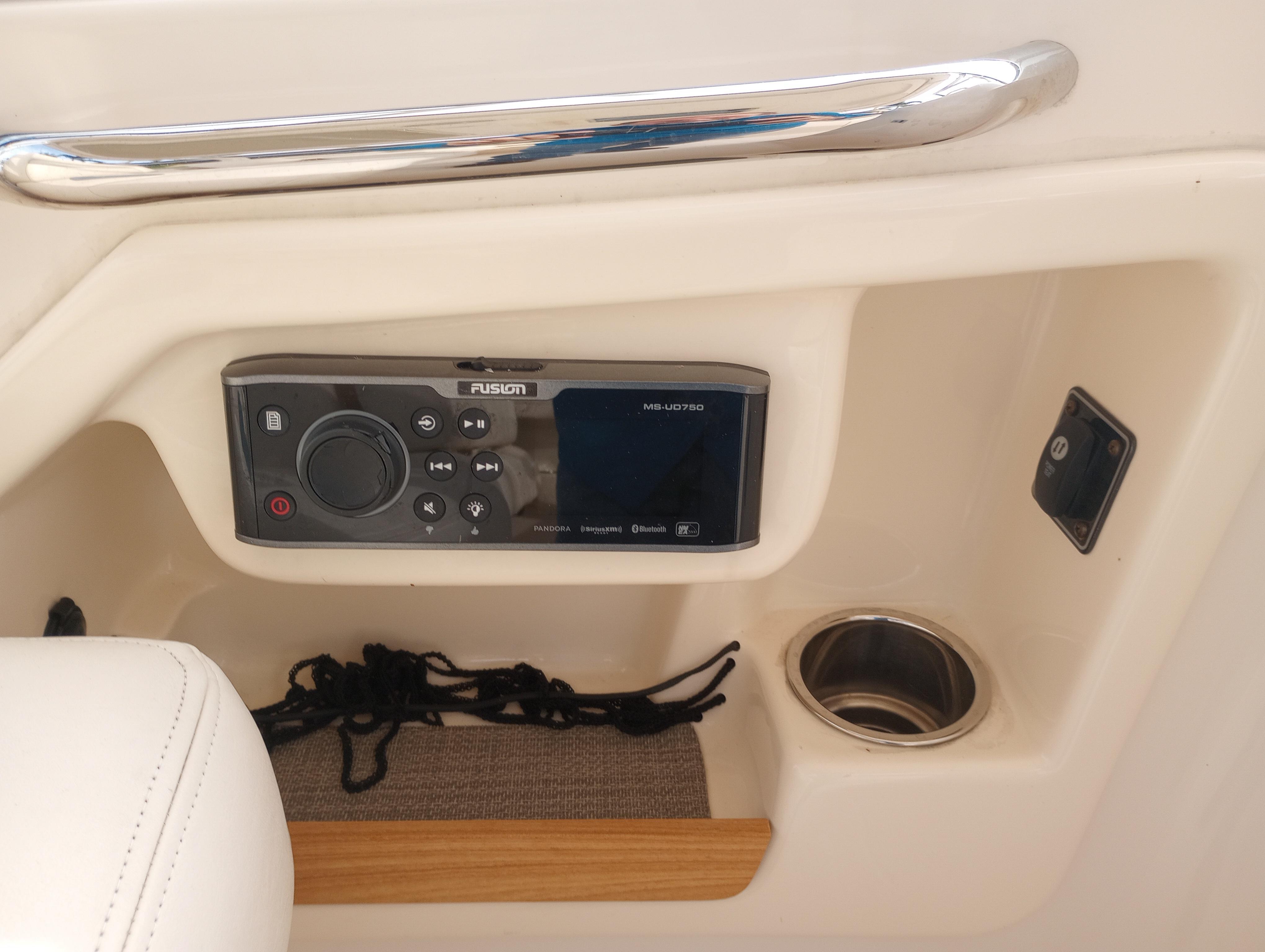 - Stereo system change to: Stereo system w/AM/FM tuner, VHF receiver, MP3 auxiliary audio connections/amplifier, Bluetooth®, remote control & fold down storage; speakers - aft (2), bow (2) & helm (2)