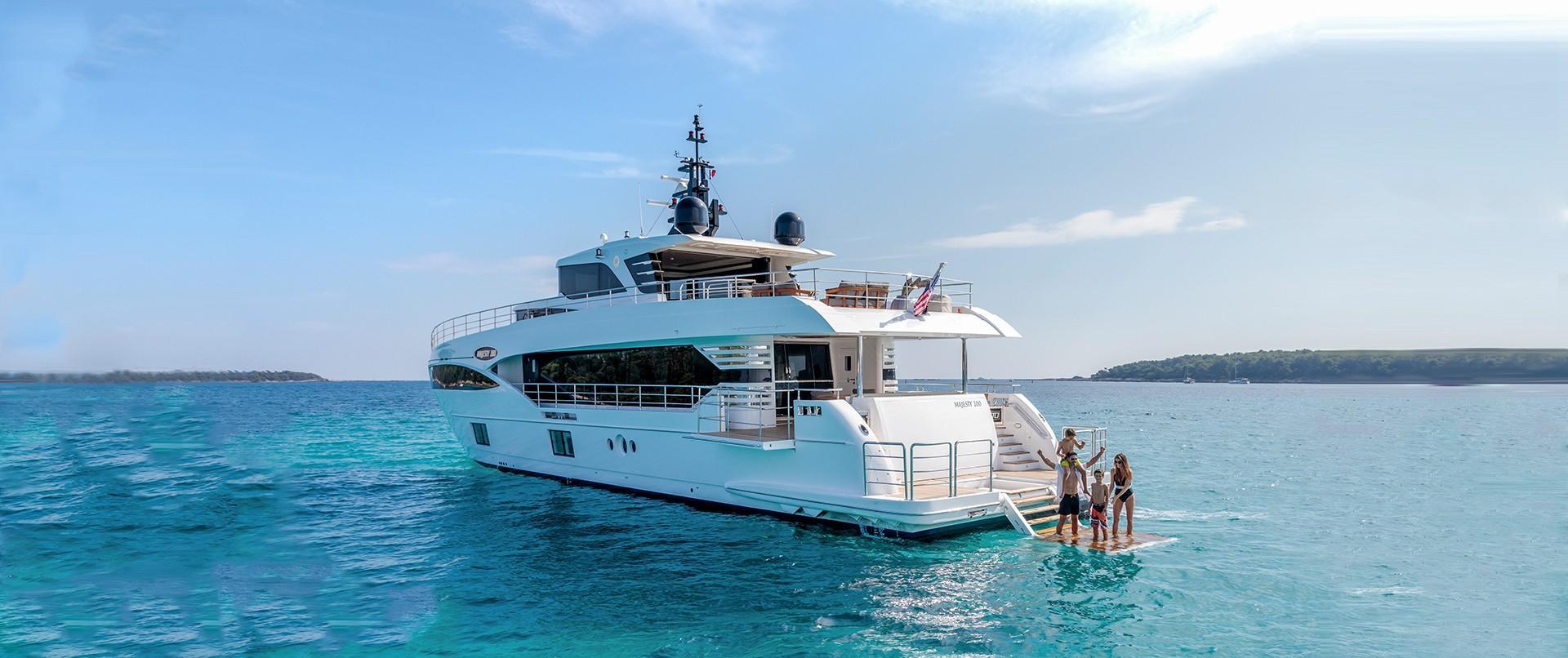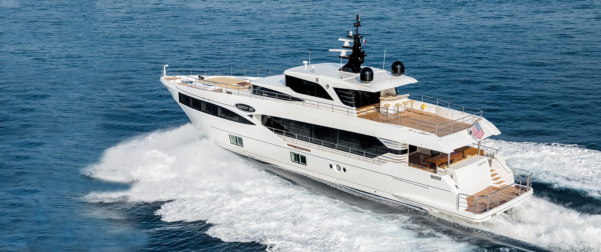 Gaining world-wide attention since it was launched, the Majesty 100 is characterized by her unique enclosed sky-lounge and a powerful but efficient propulsion system. With her lavish interiors and ample lounging areas, she is taking Majesty Yachts owners to superyacht status. Timeless exterior styling and uncompromised naval engineering are finished with exquisite interior workmanship in this model.