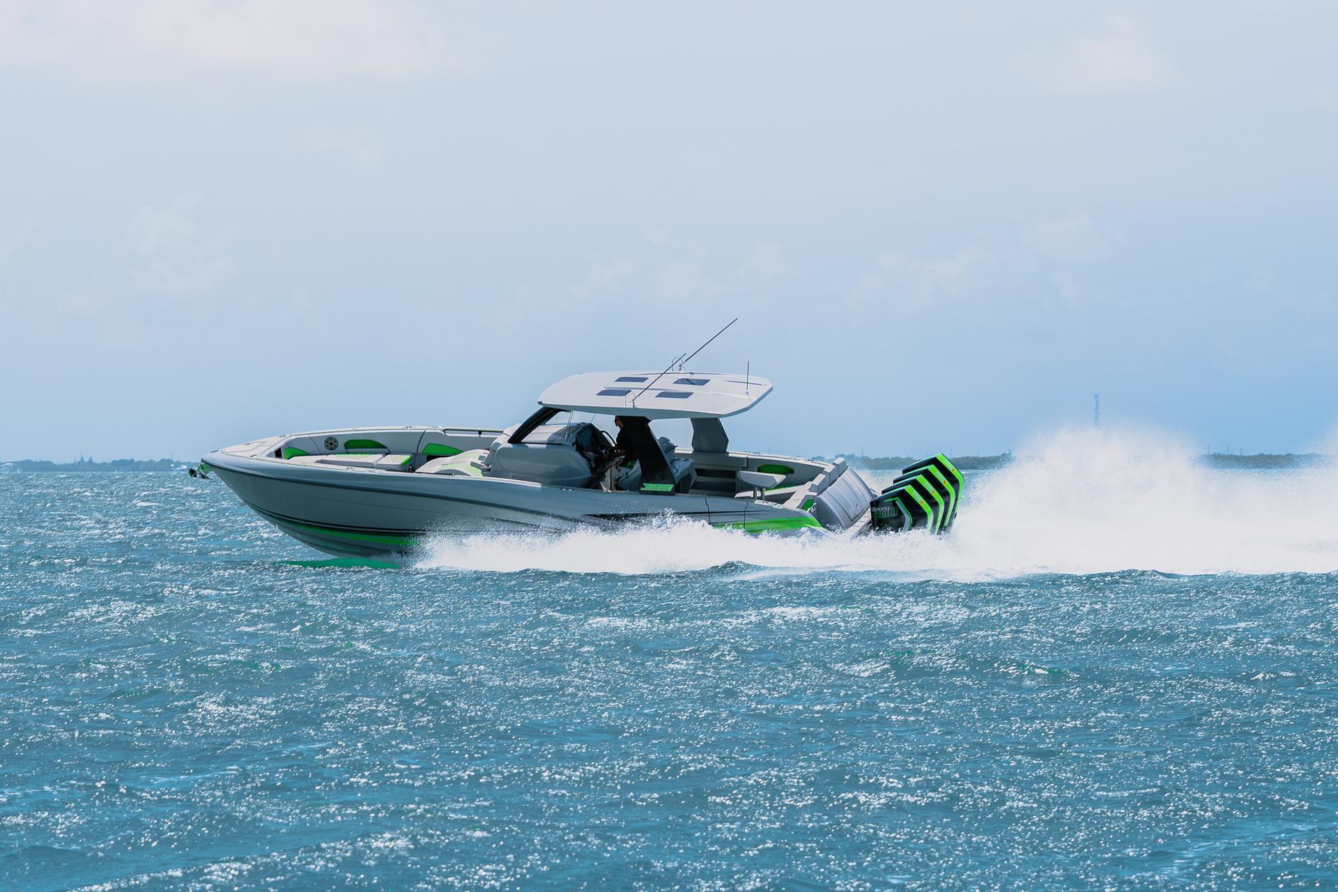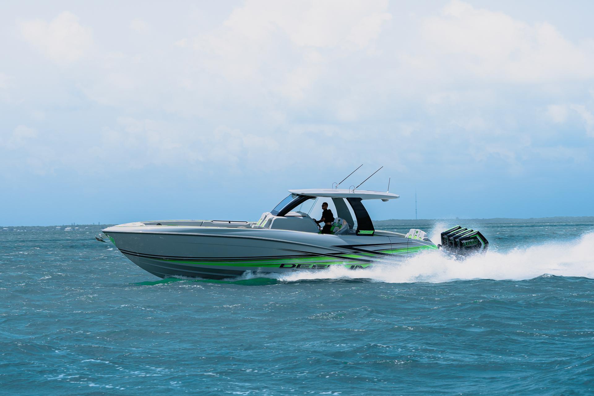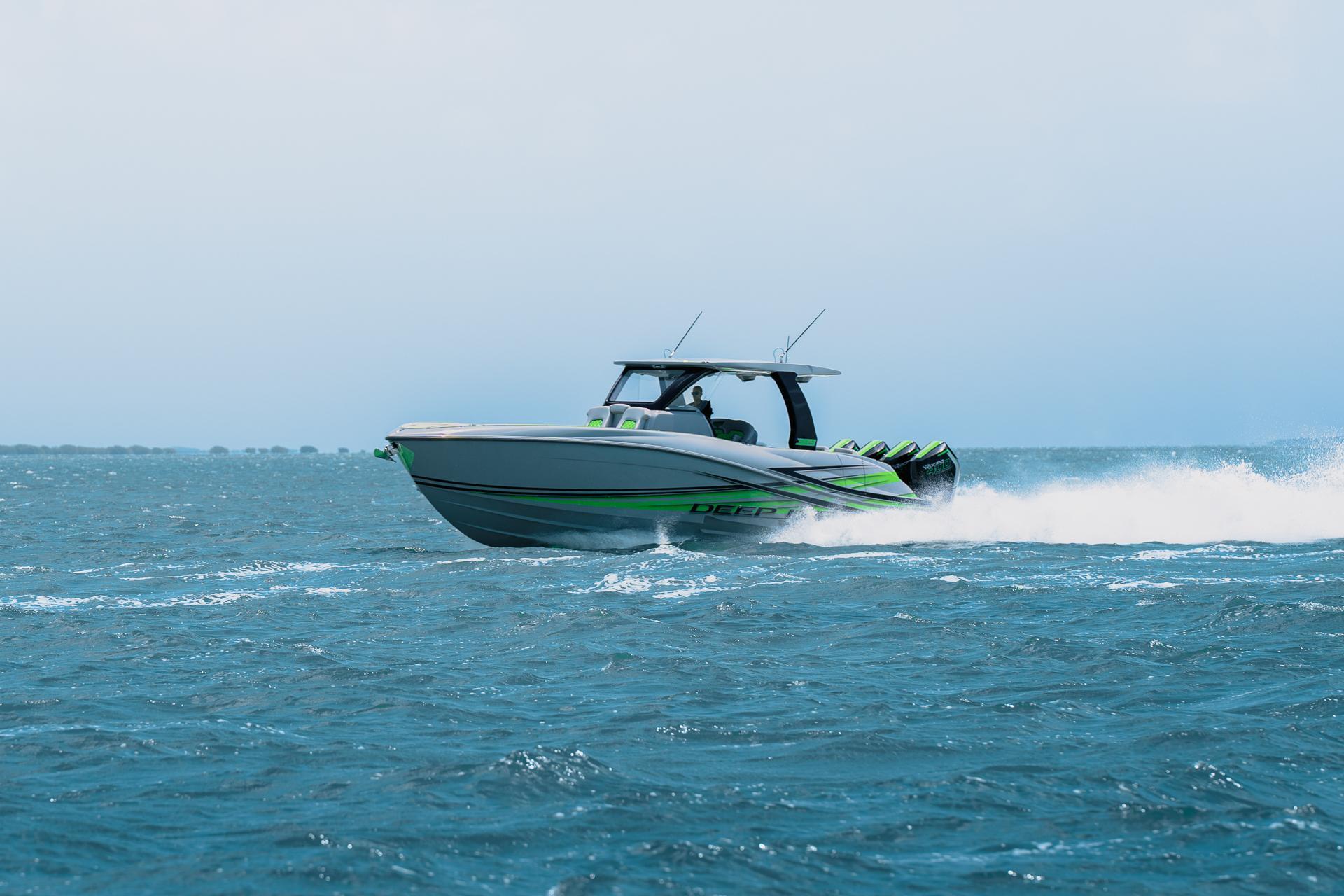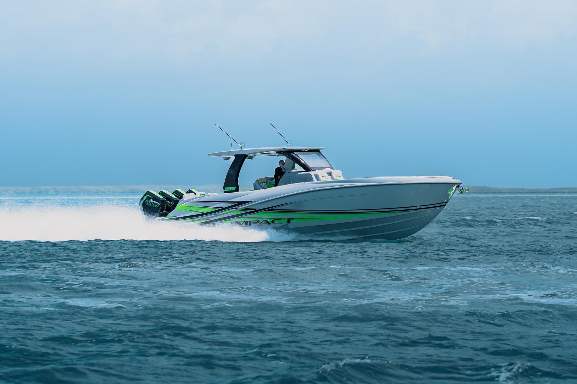 2026 Deep Impact 399 Sport powered by Quad Mercury Racing 400R!Built for Offshore!Features of this 399 Sport include:Quadruple Mercury Racing 400R'sCustom Paint Option Two: Painted Hull from Rub Rail to Water Line - Multi Colored, Gunwale Accent, Deep Impact LogoDual 19" Garmin GPS 9019 DisplaysExtreme JL Audio Sound System PackageSummer Kitchen with Fridge, Bottle Storage and Trash CanCockpit TableGarmin in BowGarmin on HardtopRecessed Anchor LockerBow Storage Compartment Forward Bow Seating with Backrests and StorageForward Deluxe Lounge Seat Four 160 Gallon Fish Boxes Insulated Full Cabin with Head, Day Bed & Sink Triple Helm Seat with Drop Down Bolster Backlit LED Switching System Oversized Hard Top with White Powder Coated Frame Dual Sunroof Forward and Aft Spreader Lights Multi Colored Under Gunwale and Hard Top Lighting Underwater LightsL-Shaped Transom Seat with Insulated Cooler10 LED Cup Holders 4 USB Plugs 8 Pull Cleats Transom Storage Locker Stainless Bow and Stern Eyes Freshwater Washdown Under Gunwale Netted StorageRecessed Shower in HardtopDive Door Trim Tabs 430 Usable Gallons of Fuel 58 Gallons of Fresh Water