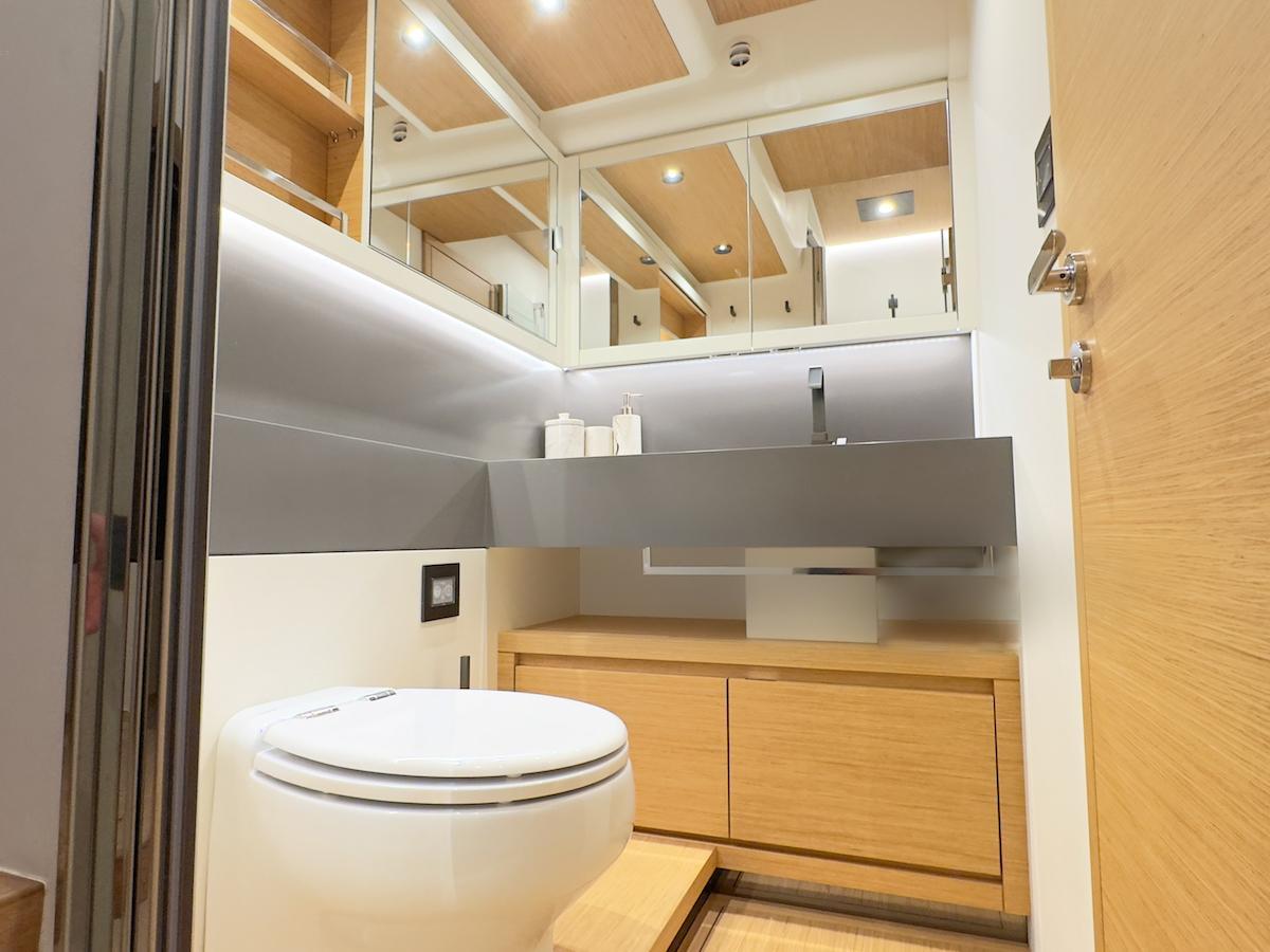 THE ADVANCED STUDY OF THE HULL LINES ENHANCES THE NAVIGATION CAPACITY BOTH IN DISPLACEMENT AT 10/12 KNOTS AND IN GLIDE AT 25, SUPPORTED BY THE IPS ENGINE FOR MAXIMUM MANEUVERABILITY AND SAFETY.