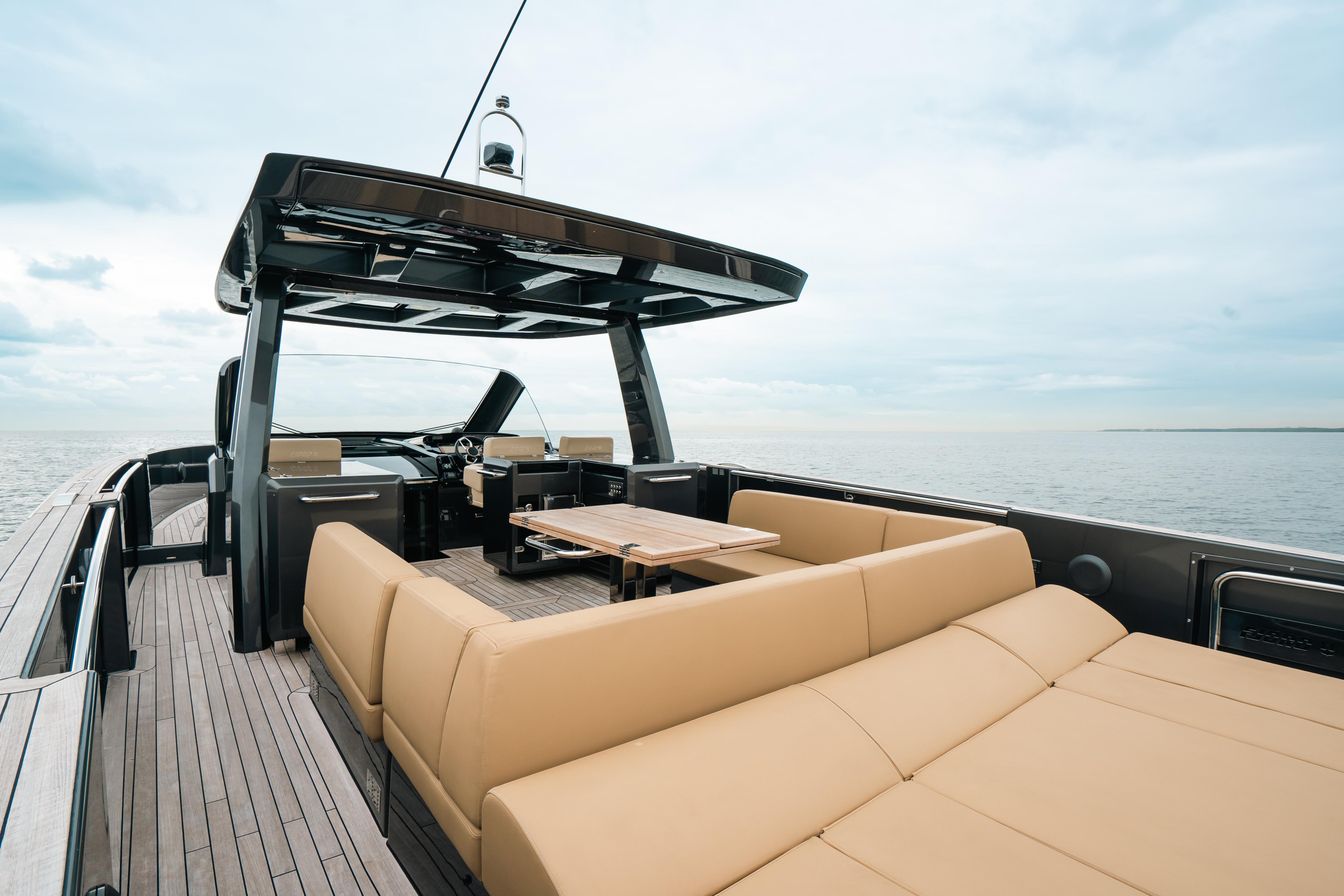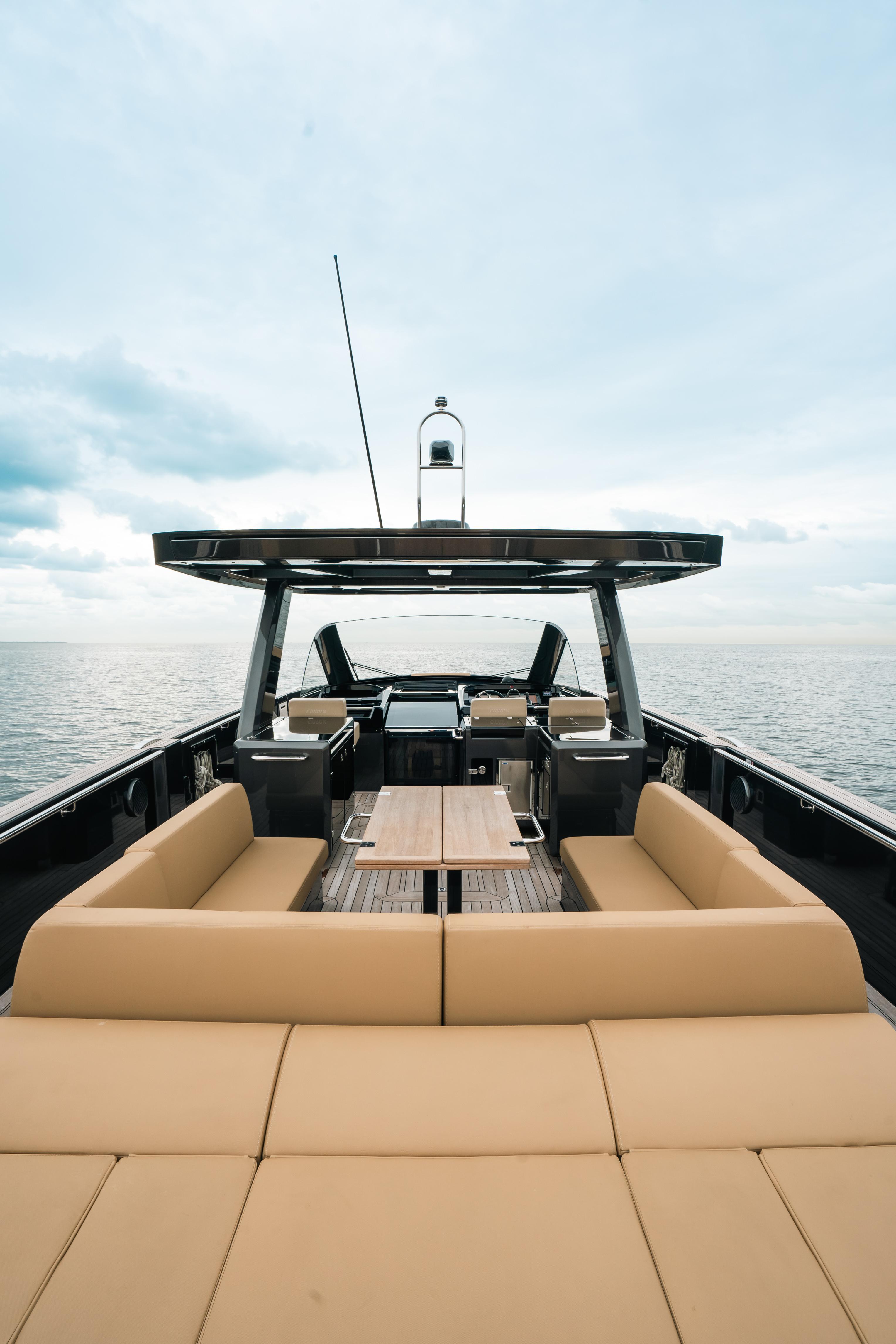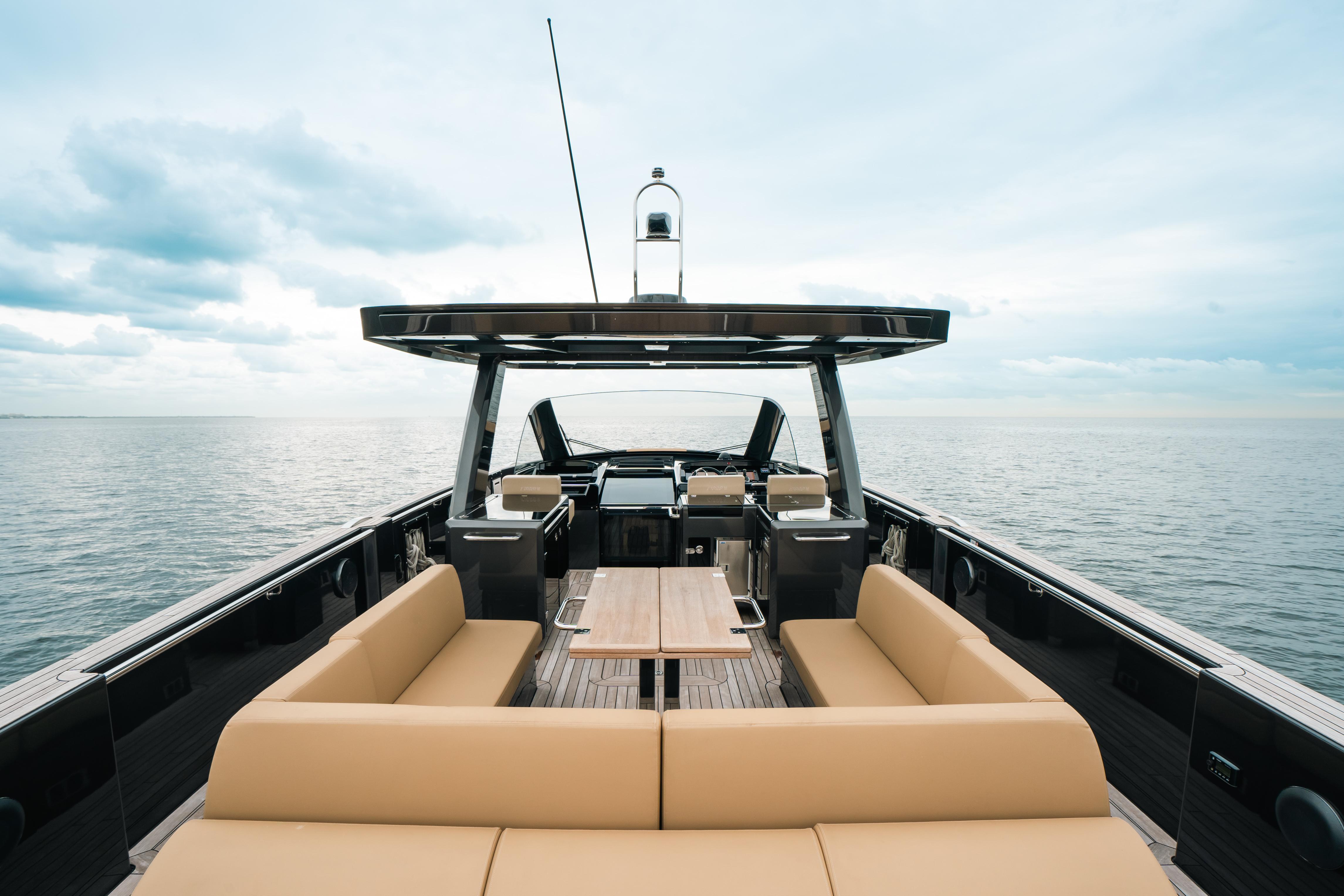 The FJORD 52 open marks the impressive highlight of the open series. Volvo IPS 800's – paired with the safety of the typical FJORD walk-around deck – let you without a doubt sense the FJORD power yacht feeling at the highest level of intensity. This also goes for the redesigned, extremely spacious interior. Modern, elegantly finished woods, mirrored closet doors, select wall textiles – thanks to their combination, the FJORD 52 open is shaping upcoming trends. In the owner’s bathroom, elaborately crafted designer fittings seamlessly blend into the innovative mix of materials and round off the feel-good experience.