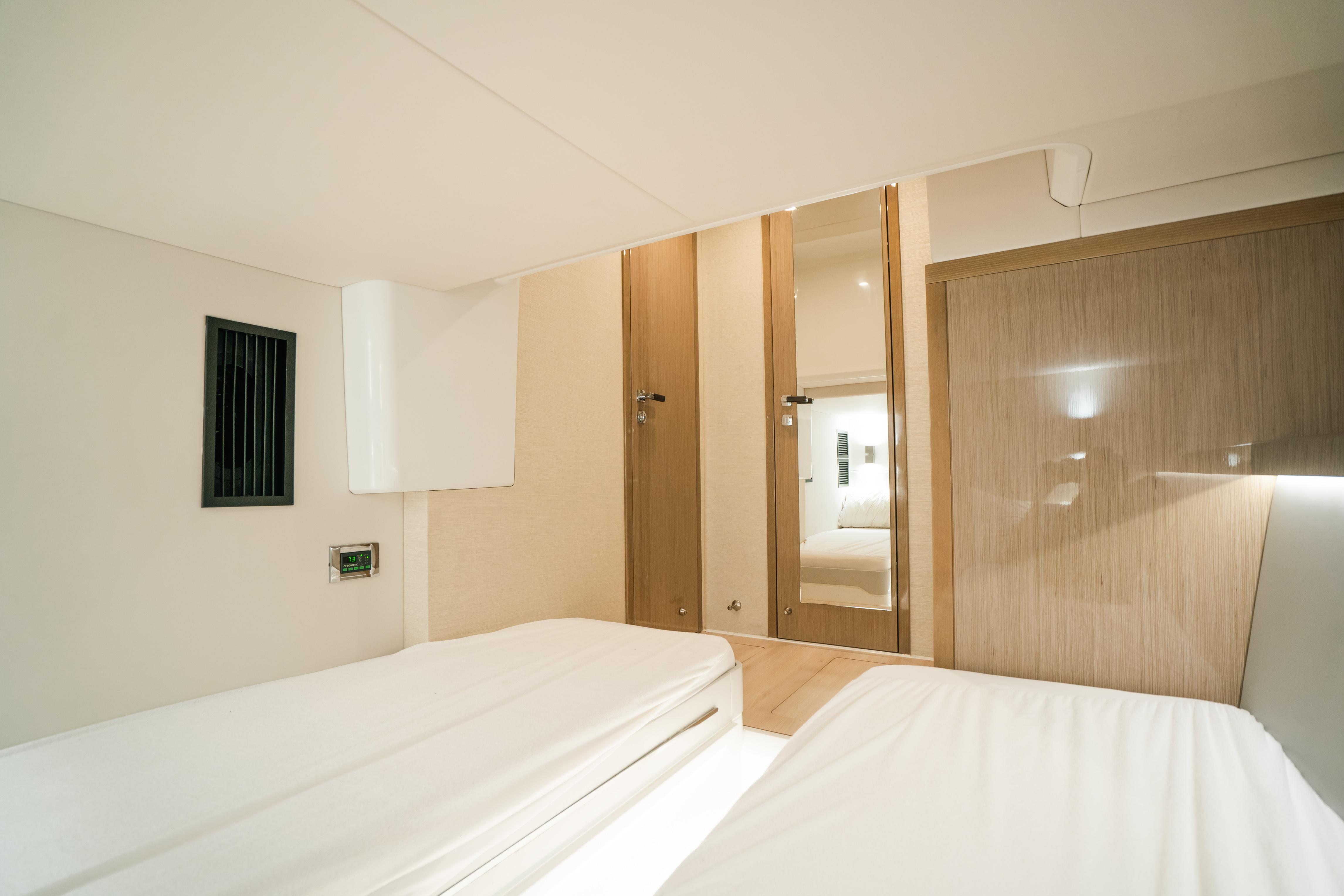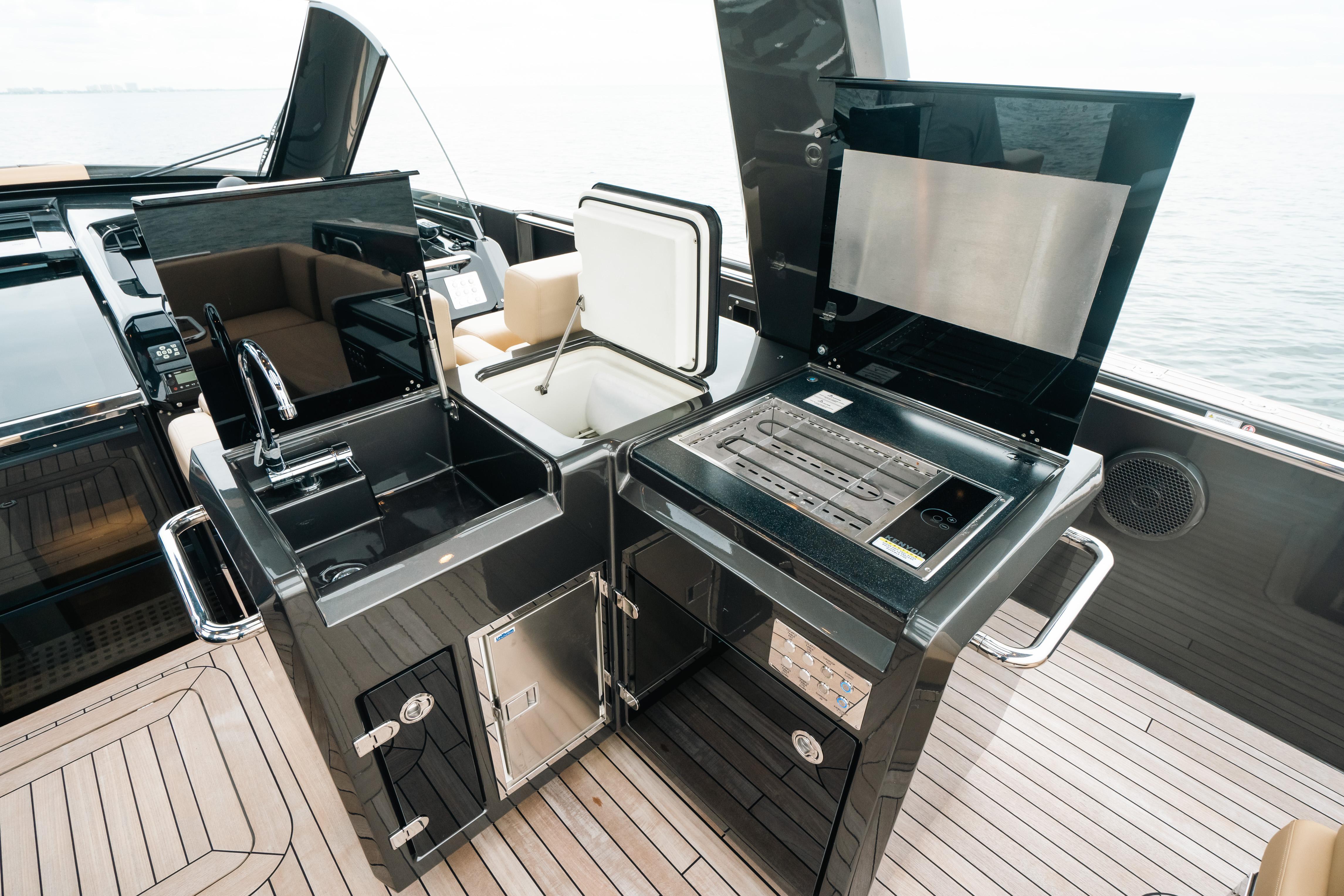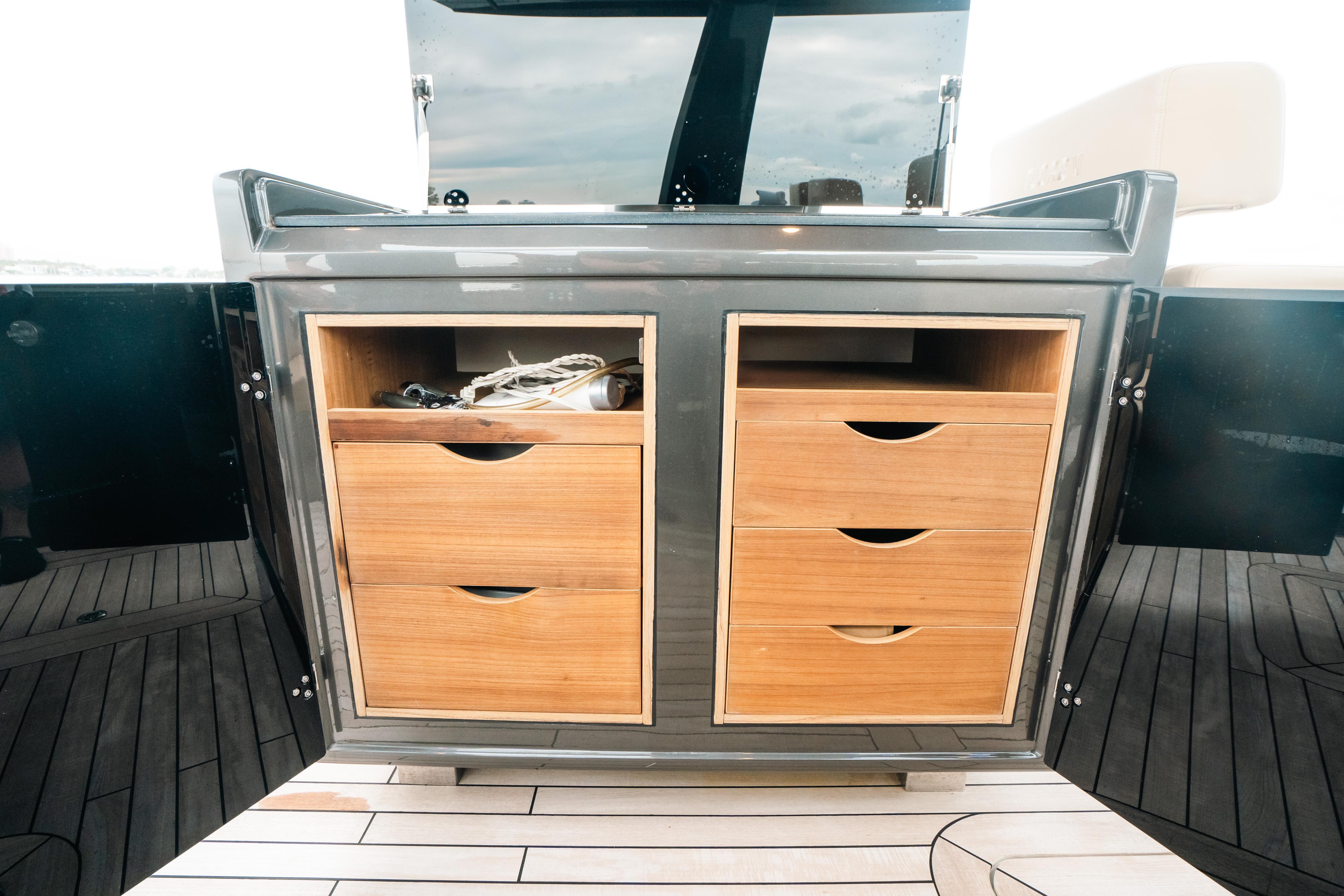 The FJORD 52 open marks the impressive highlight of the open series. Volvo IPS 800's – paired with the safety of the typical FJORD walk-around deck – let you without a doubt sense the FJORD power yacht feeling at the highest level of intensity. This also goes for the redesigned, extremely spacious interior. Modern, elegantly finished woods, mirrored closet doors, select wall textiles – thanks to their combination, the FJORD 52 open is shaping upcoming trends. In the owner’s bathroom, elaborately crafted designer fittings seamlessly blend into the innovative mix of materials and round off the feel-good experience.
