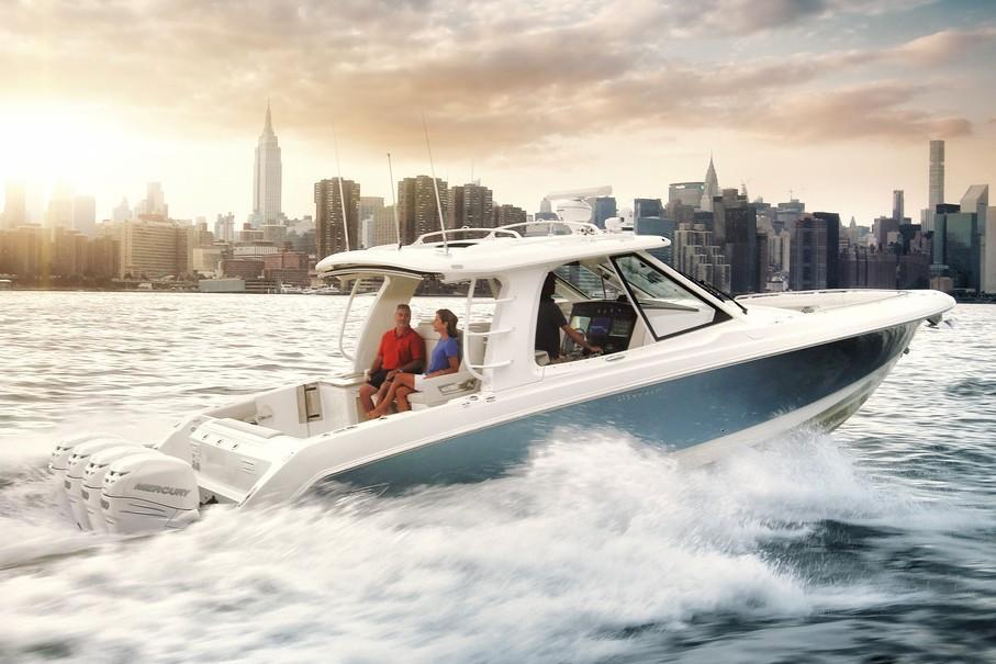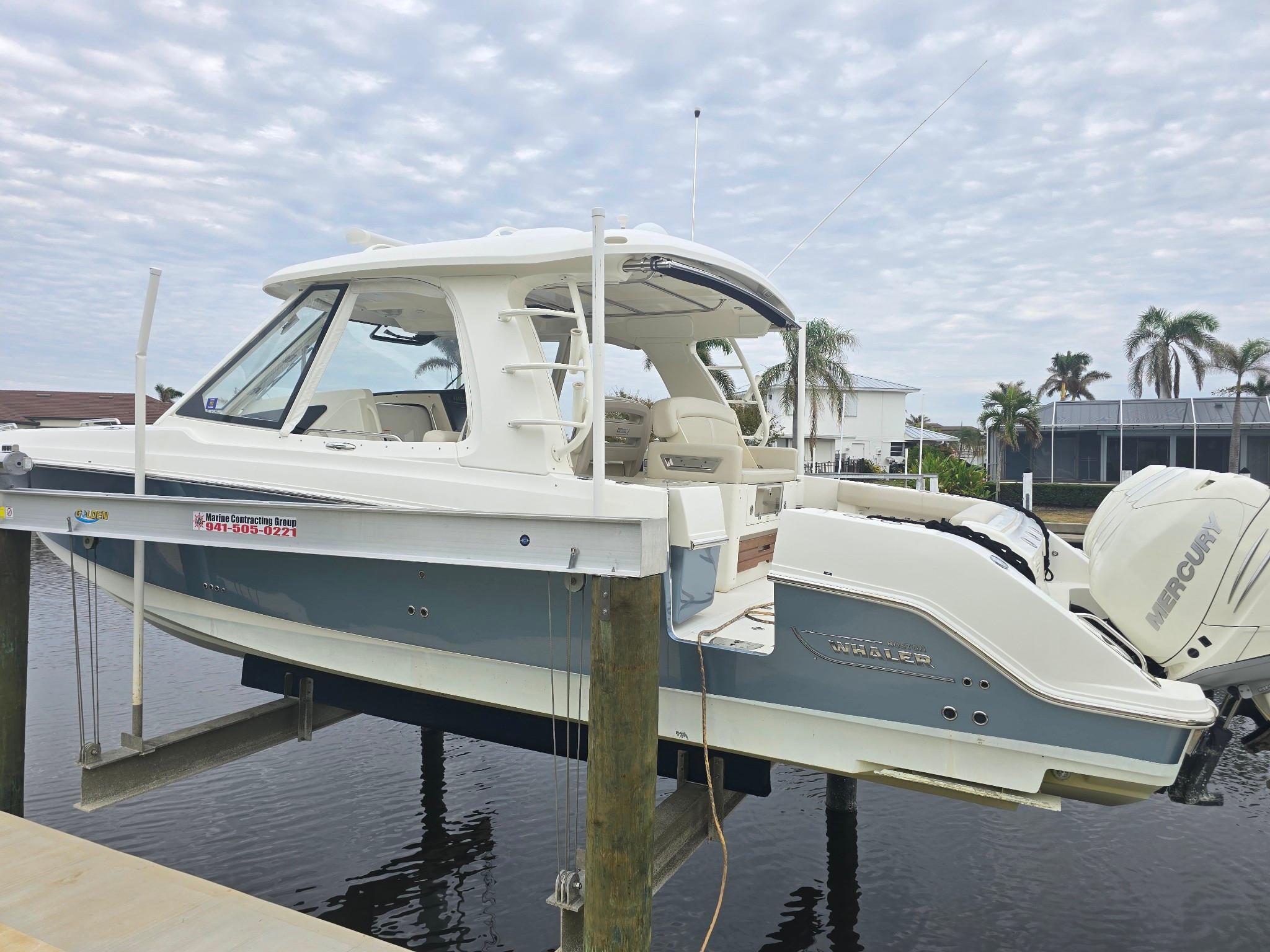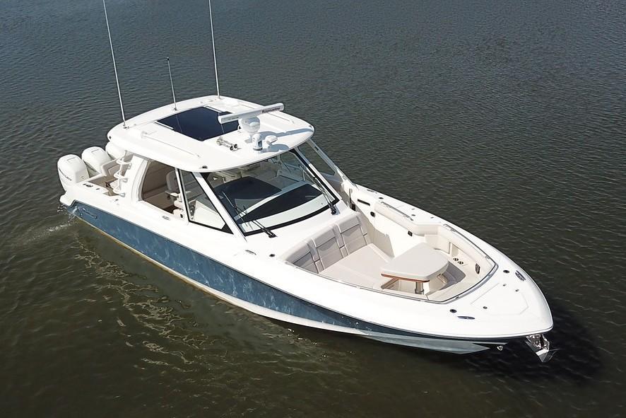 Let the adventures begin with the versatile 380 Realm. Combining incredible capability and performance with outstanding comfort, the 380 Realm is designed to make any on-water dream possible. Amenities for entertaining include a robust cockpit prep center; a massive, refrigerated under-seat cooler; a social open bow and more. The boat’s spacious center-console layout and brilliant new windshield design provide unobstructed views, while a large integrated hardtop provides tons of shade and protection from the elements — all the way to the horizon and beyond.Four Mercury's 350 HP Under Warranty Until April 2026Vessel is Documented with USCGSurvey available upon request445-gallon fuel tank for impressive range.Convenient cockpit prep center includes grill and fridge.Hardtop Roof RackMassive under-seat cockpit storage holds days’ worth of chilled beverages.Nested wind-break door in full windshield provides protection as well as easy bow access.Stern sunshade, table and sun pad filler cushion.Huge, state-of-the-art helm station accommodates three display screens.Easy access via starboard boarding steps.Cabin features fully enclosed head with shower, galley, entertainment center and convertible V-berth for overnight stays.Variable running surface hull ensures a smooth ride for long-distance journeys and all-day cruising.Full Service & Detail 6/2025 She is ready for her next adventure.