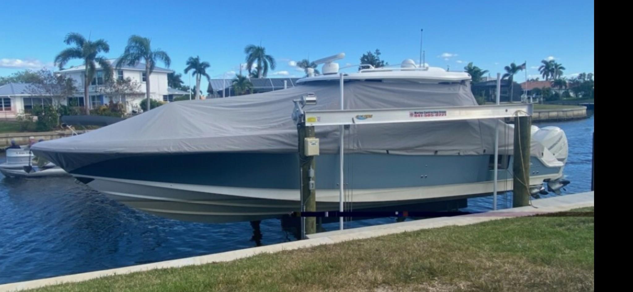 - Custom full boat cover with full isinglass enclosures.