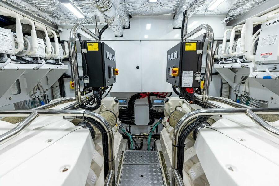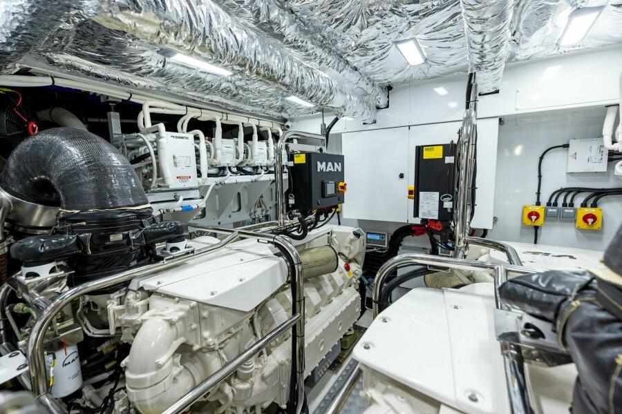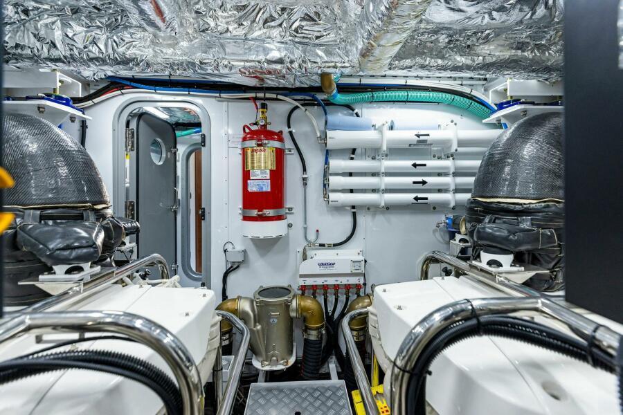 Hydraulic system consists of separate engine-driven hydraulic pumps allowing any system to be supplied with hydraulic power for either engine. Including a hydraulic anchor winch and 320 kgF hydraulic bow thruster (in place of standard) 240kgF stern thruster and hold function docking system.