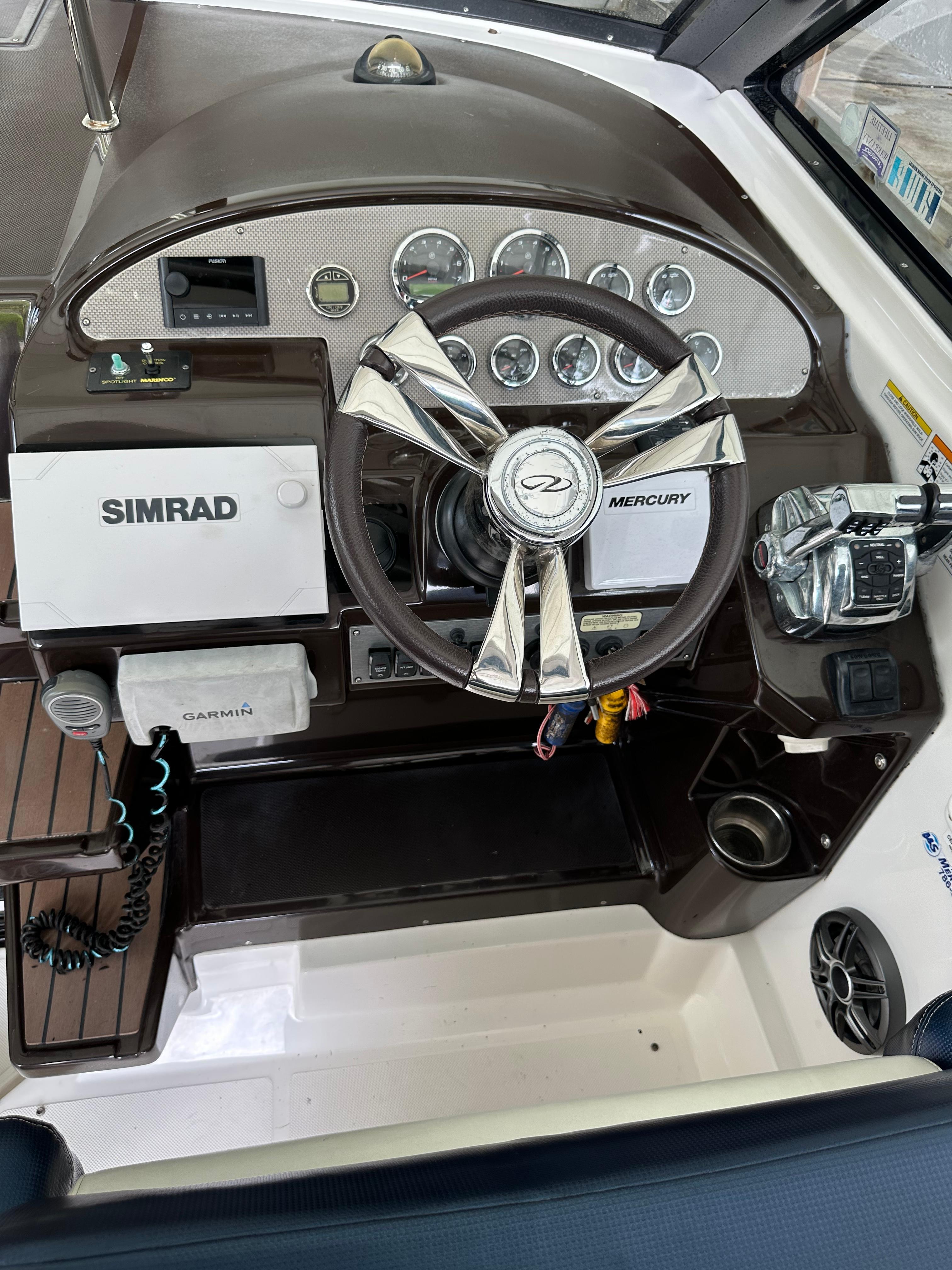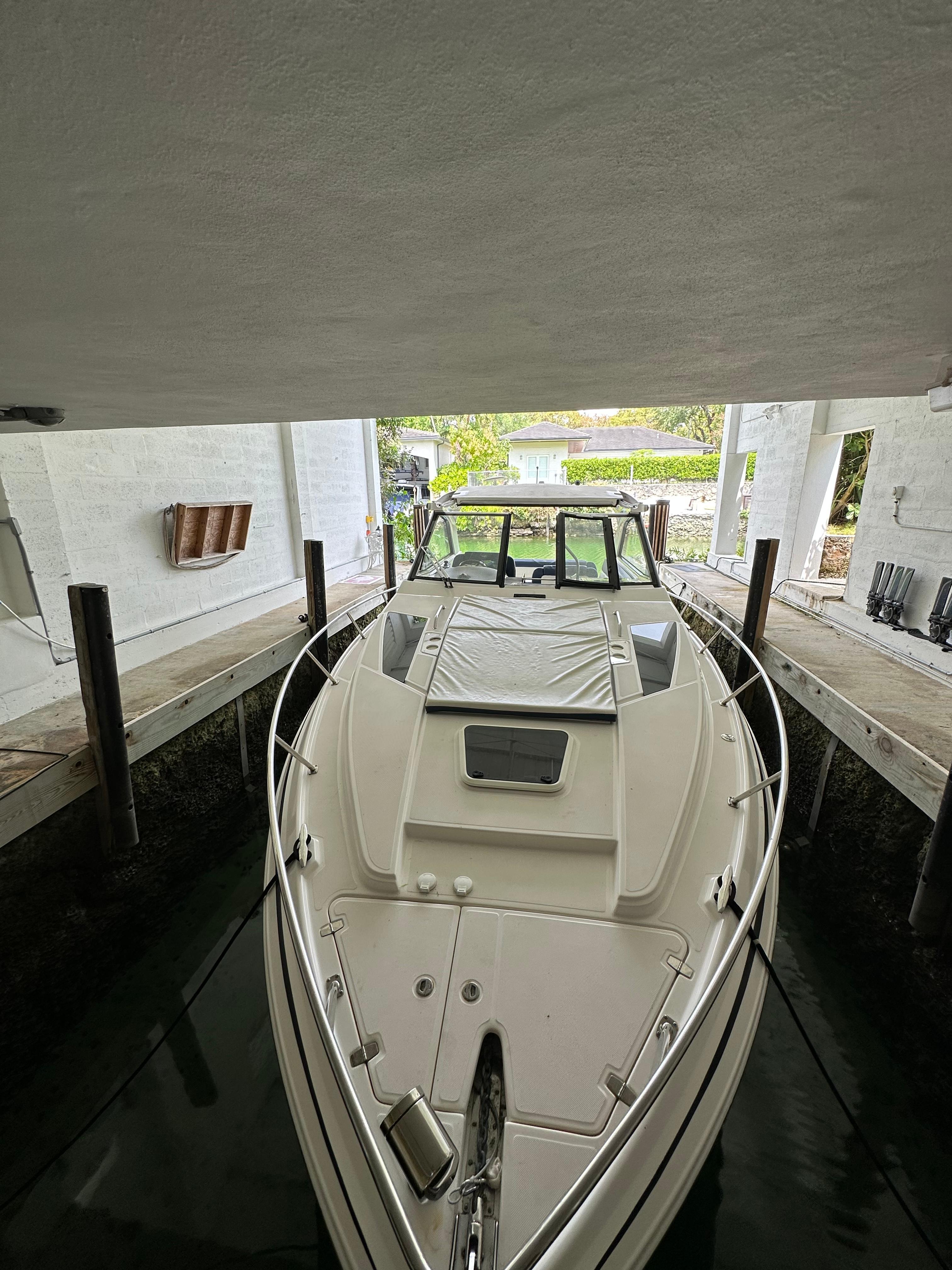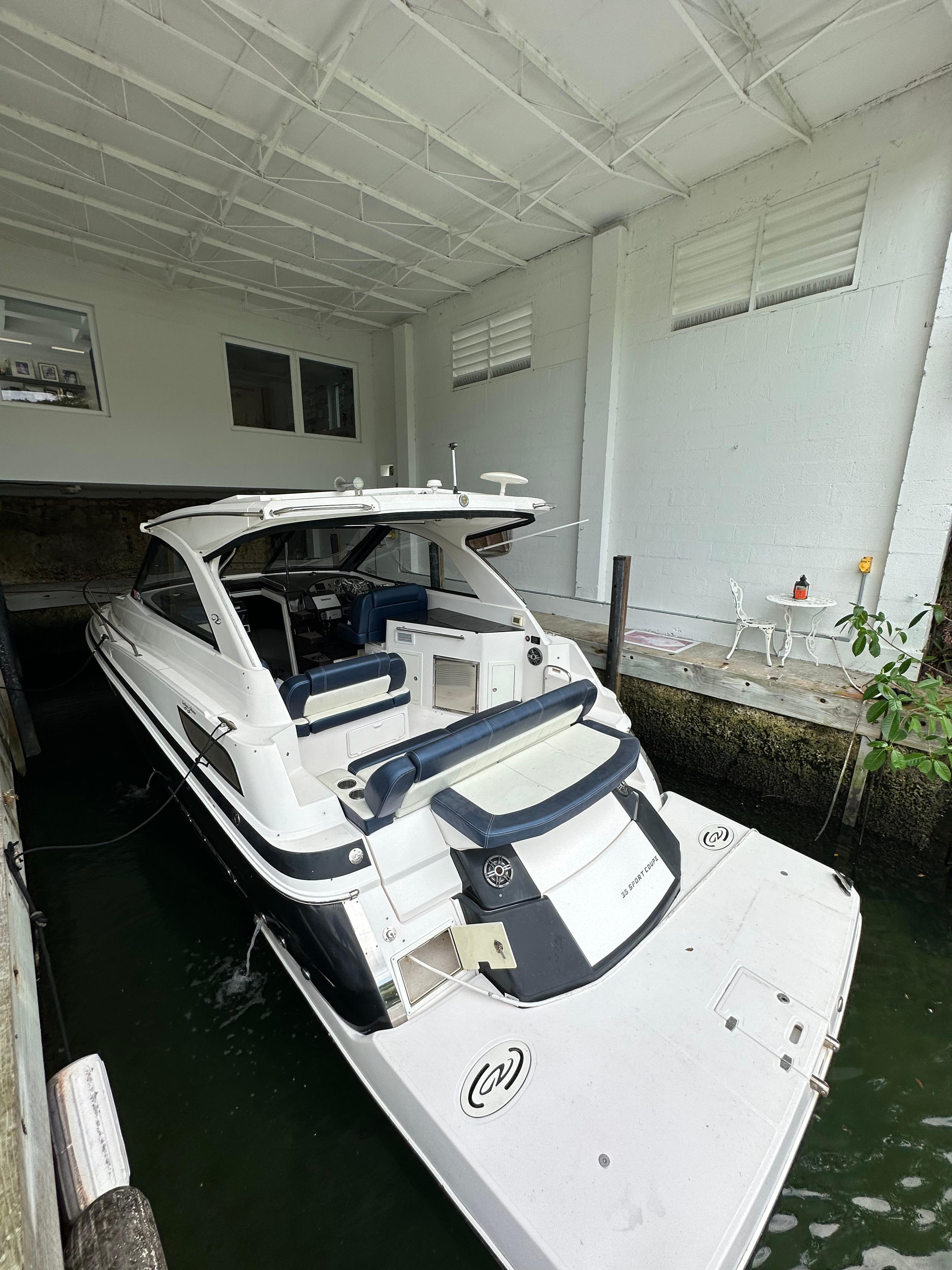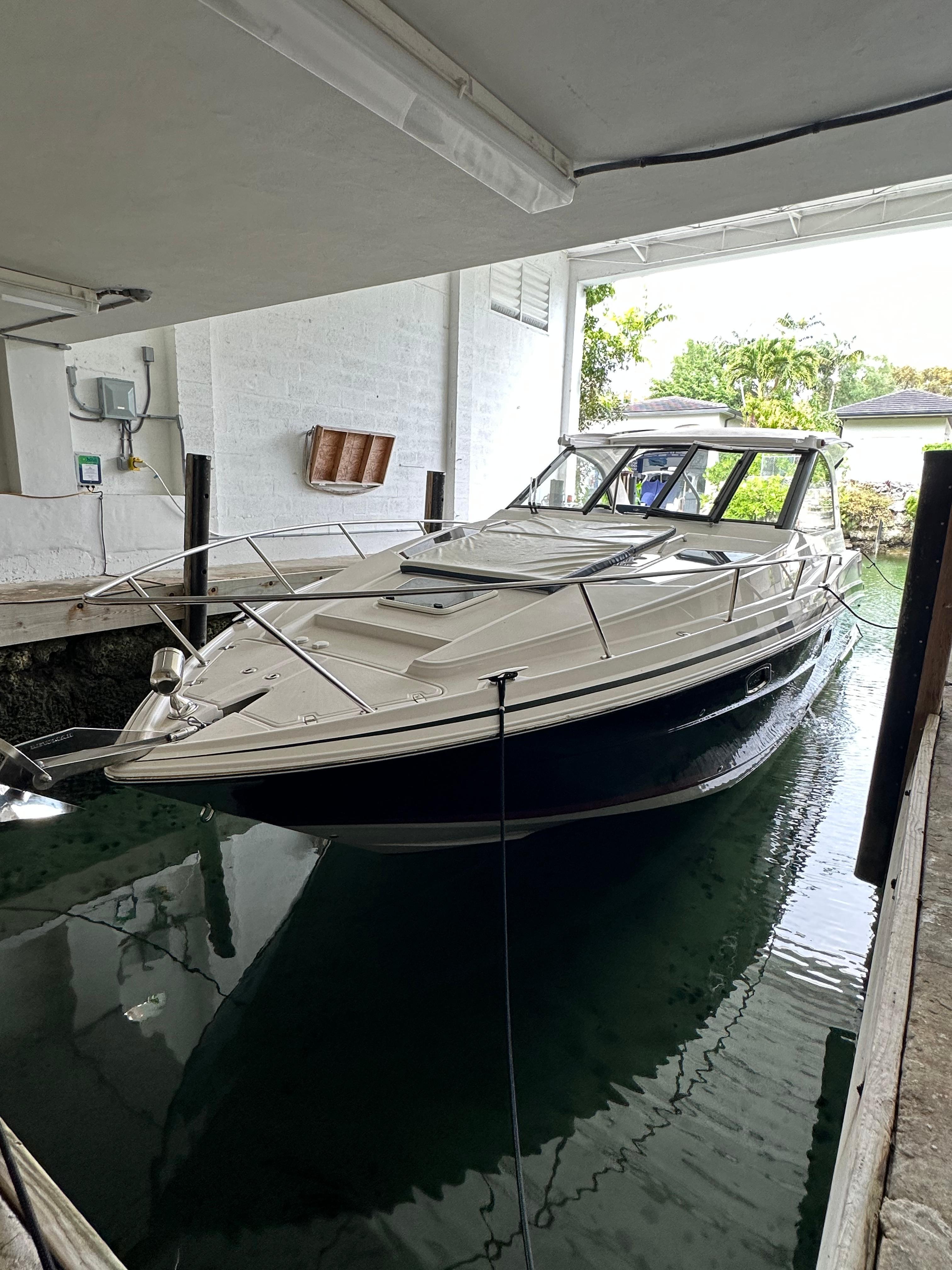 Original owner. Beautifully kept in boat carport since new. The Regal 35 Sport Coupe is a 35’ model with the amenities of the 40’ and larger class of vessels. This luxury class cruiser whose single-level cockpit is made even more enjoyable by a full-width sliding hardtop. An optional air conditioner with reverse-cycle heat will keep the fully enclosed cockpit comfortable, and a convertible back seat opens up to create a large sun pad. A walk-thru windshield provides access to the foredeck. Below decks, the open-plan interior of the 35 Sport Coupe features a vast L-shaped sofa in the main salon whose seatback lifts to extend the berth behind, converting what first appears to be a mini-berth into a full queen-size bed, very clever. There are two small sofas facing each other in the aft cabin where a 32" flat screen TV is mounted on the port bulkhead. A full-service galley is to port, and features an induction cooktop, stainless-steel refrigerator, microwave, and Corian countertop. A privacy curtain separates the forward berth from the mid cabin. The Twin 300hp MerCruiser 350 Mag gas sterndrive engines (with joystick controls) cruise the 35 Sport Coupe at 25 knots (mid-to-high 30s top).Cockpit FeaturesGrillFridgeSinkFlip Down flat screen, TVElectronic featuresSimrad multifunction display with charting and sonar.Garmin VHFFusion Radio Fusion subwoofer 6 Clarion speakers