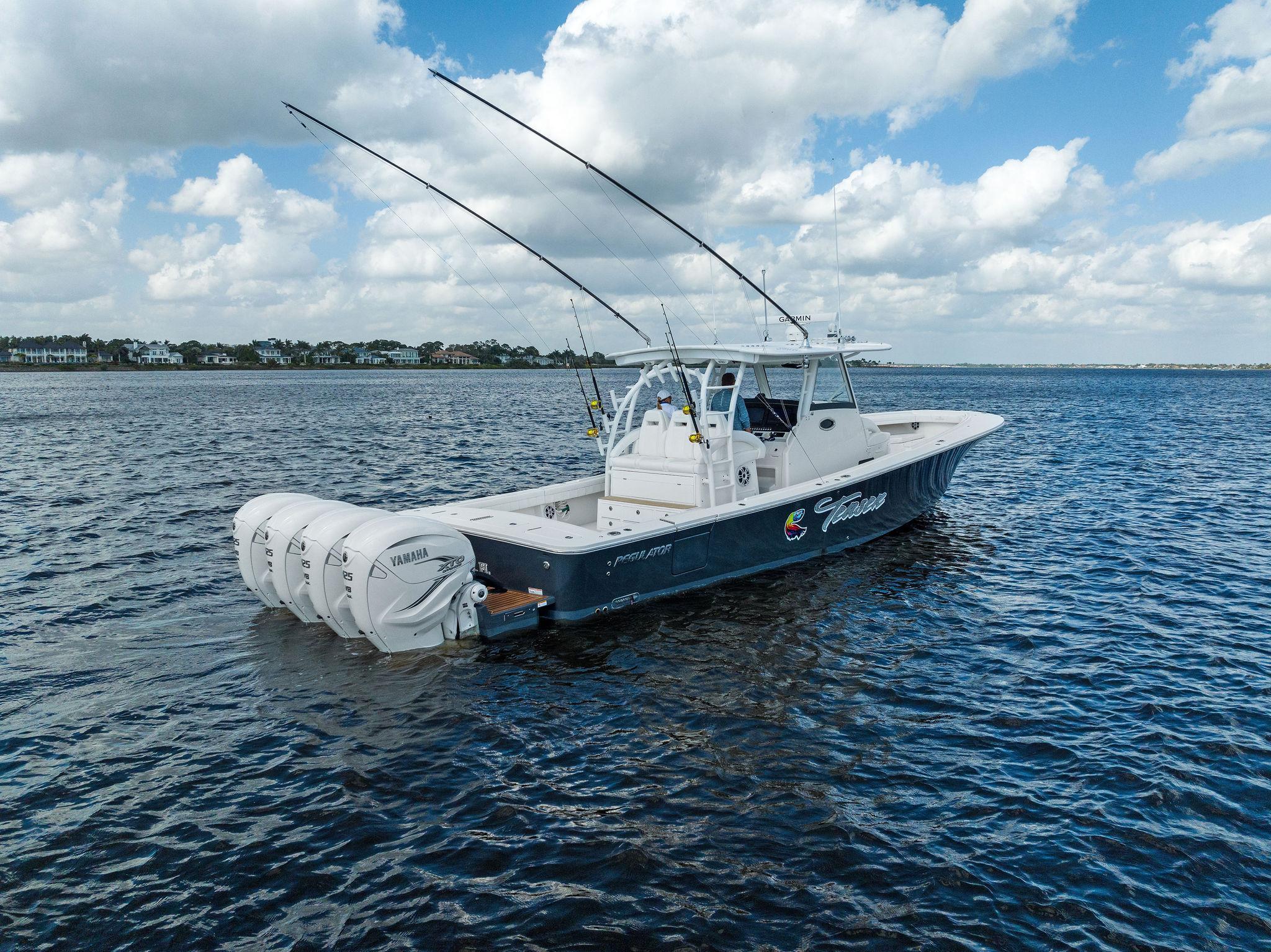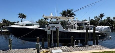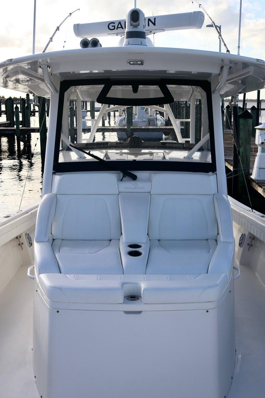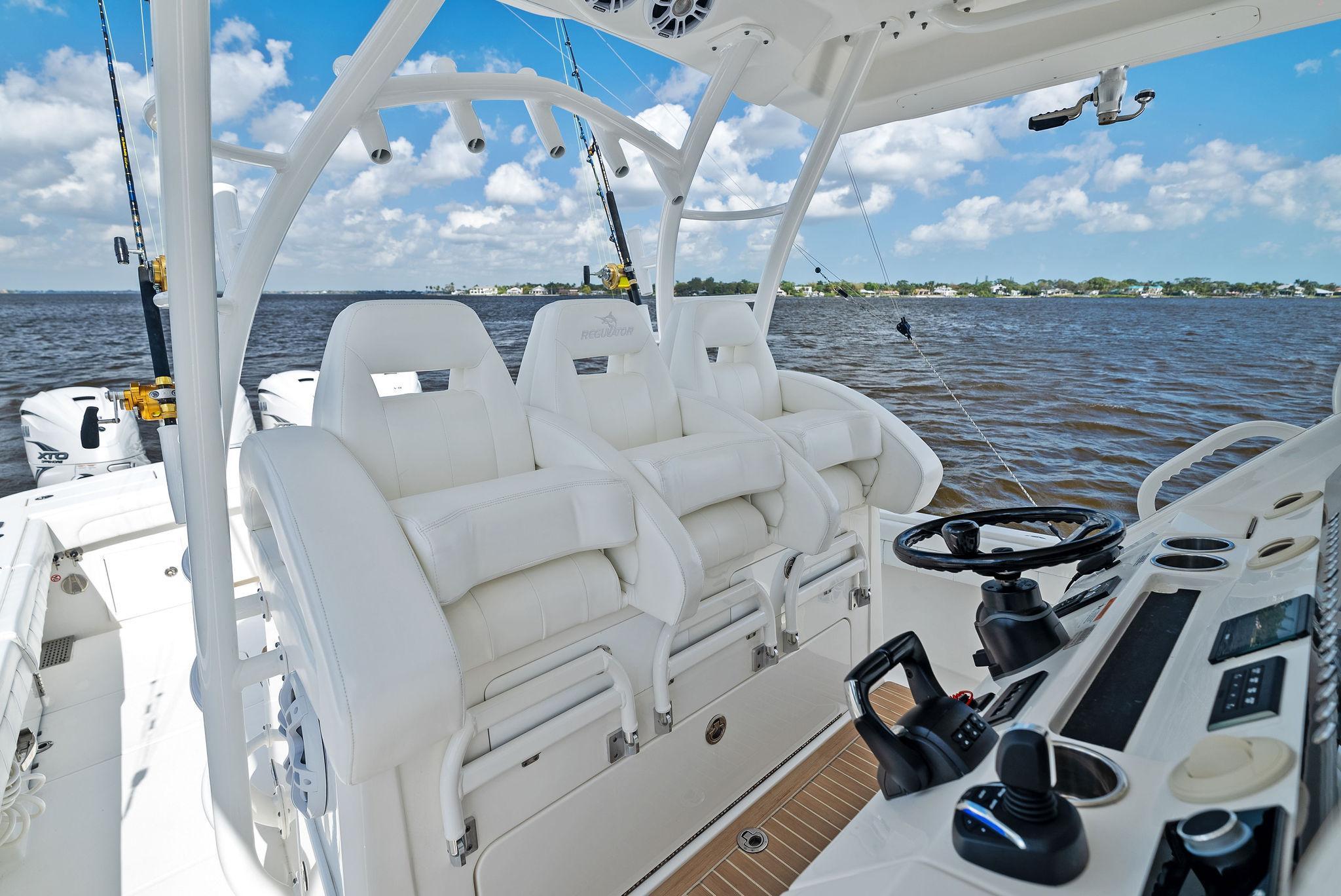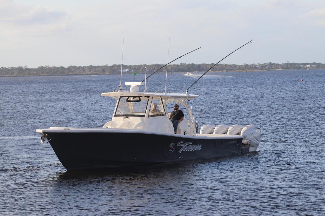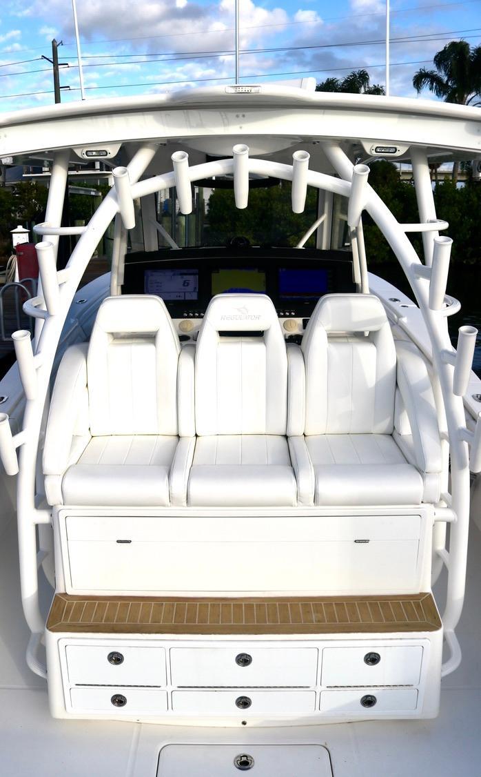 41 Regulator 2021 Seakeeper, Generator and Outboards recently serviced.MARCH 2025 - THE NAME HAS BEEN REMOVED AND A COMPLETE COMPOUND AND WAX WAS PERFORMED ON THE HULL.The Regulator 41, stands as the pinnacle of offshore performance, boasting quad Yamaha 425 engines and the cutting-edge Helm Master® EX system, supported by the Seakeeper® 5 stabilization system. This combination guarantees unmatched capability for all your offshore excursions. The Offshore Command Center is equipped with a Garmin® Multi-Function Display featuring Digital Switching, paired with the Regulator MyHelm™ interface for effortless control over lighting and batteries—all accessible with a convenient wireless key fob. She is engineered for serious fishing and family enjoyment alike. Its integrated wraparound windshield ensures total protection at the helm, while the aft mezzanine seat, prep and tackle center, and overhead SureShade® enhance your cockpit experience. For avid anglers, the optional outrigger bases with 22' carbon fiber poles, along with generous livewell and fish box capacity, provide the ultimate fishing advantage. Additional standout features include a hull dive door with an in-deck swim ladder, twin 40-gallon transom livewells, an air-conditioned helm, and a sophisticated cabin with a fully equipped galley, convertible dinette, and enclosed head/shower. In summary, she redefines offshore excellence, integrating powerful engines, state-of-the-art technology, and luxurious amenities for an unparalleled offshore experience.