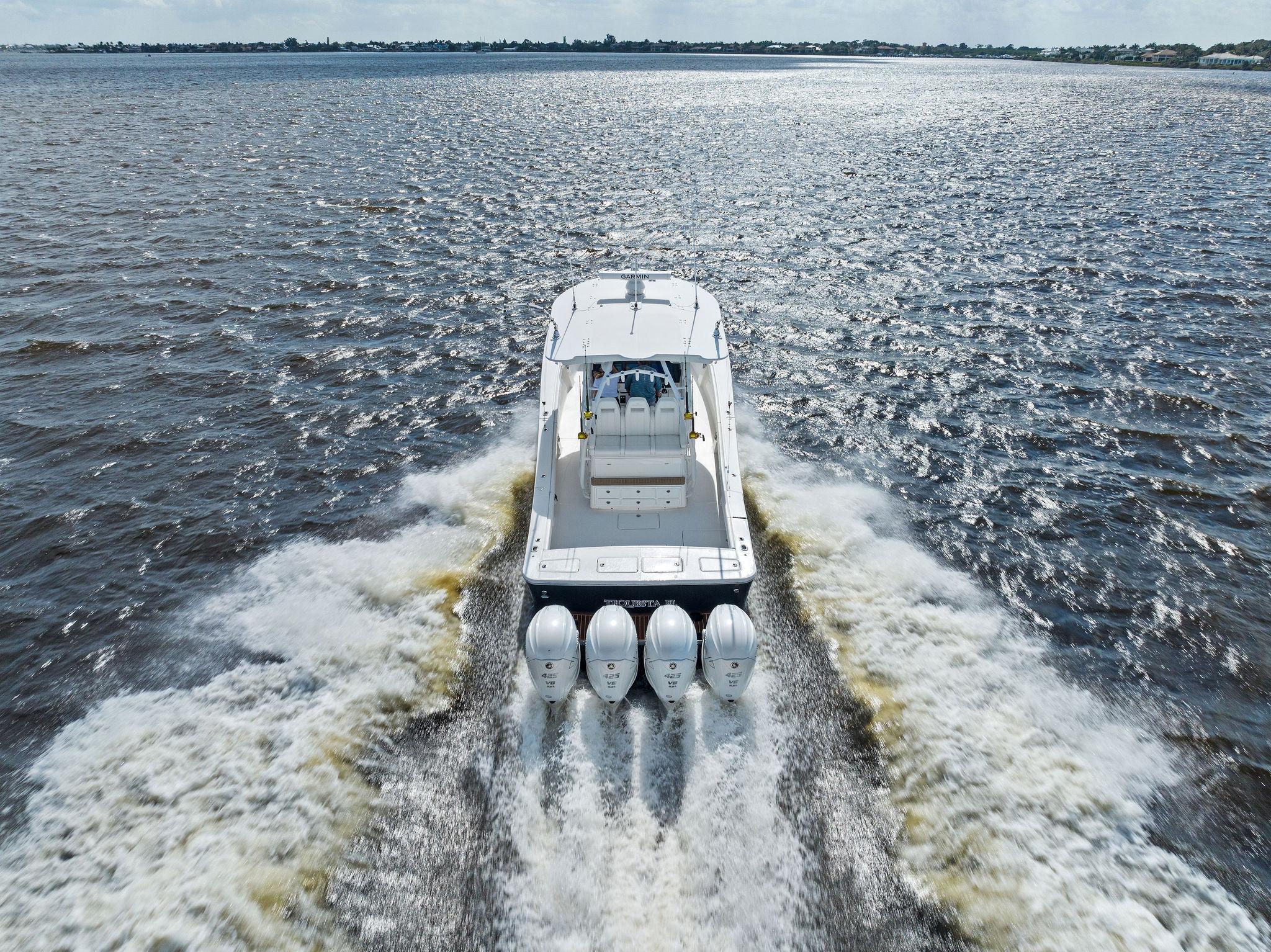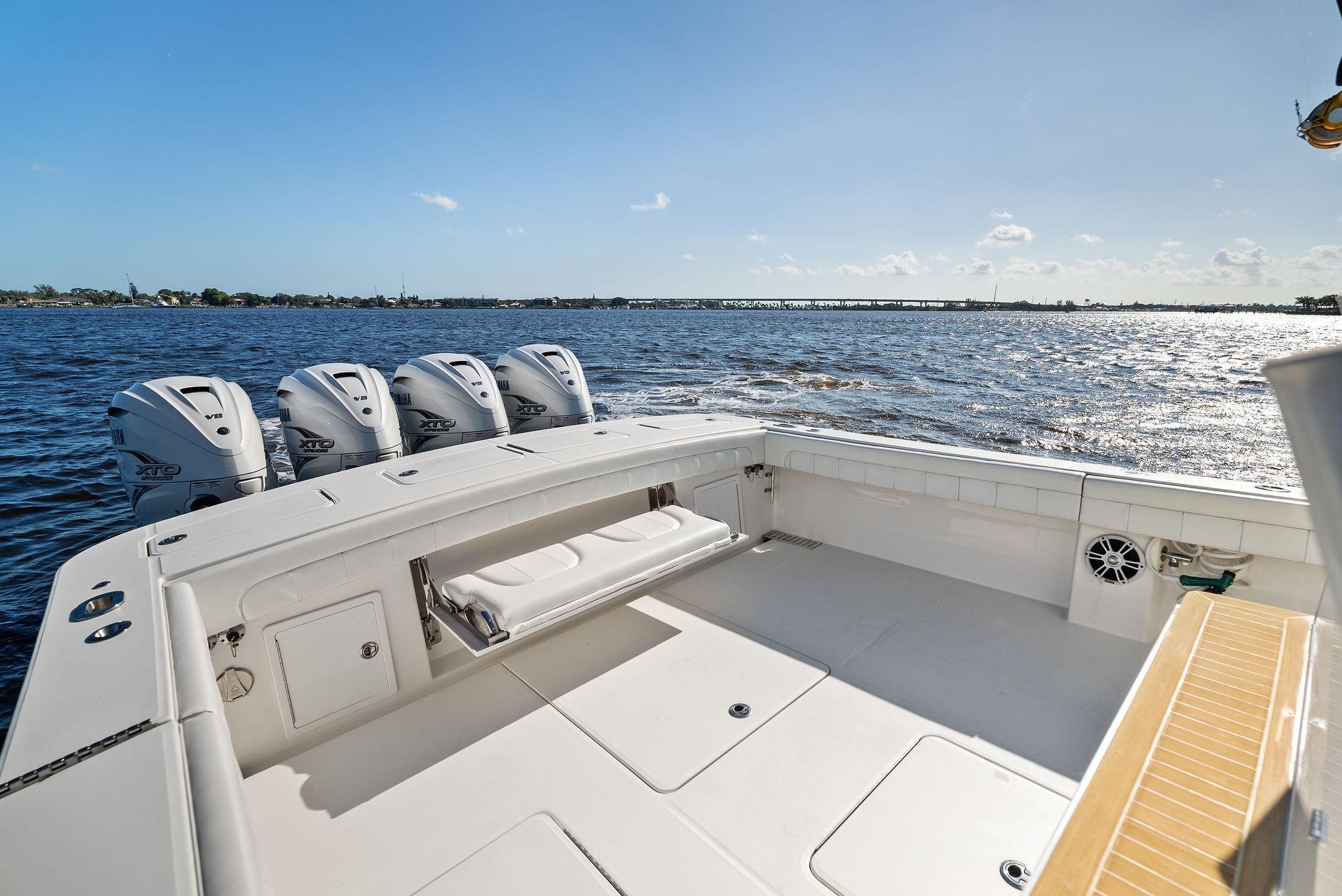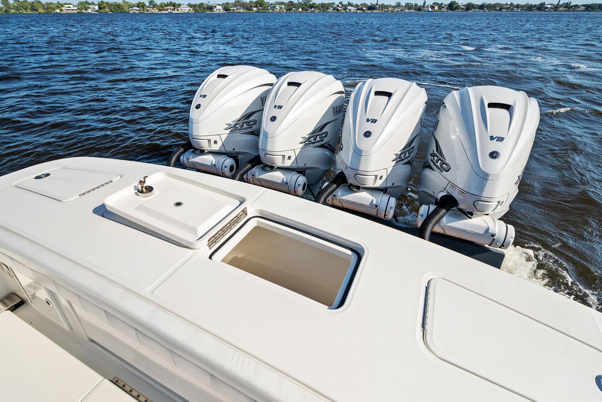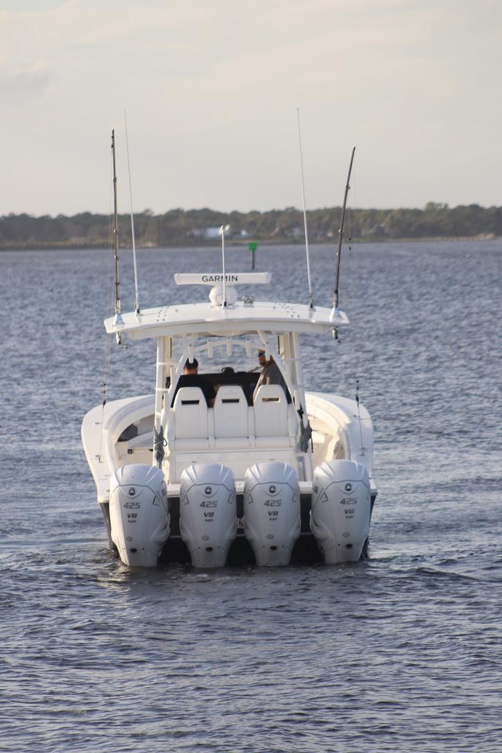 41 Regulator 2021 Seakeeper, Generator and Outboards recently serviced.MARCH 2025 - THE NAME HAS BEEN REMOVED AND A COMPLETE COMPOUND AND WAX WAS PERFORMED ON THE HULL.The Regulator 41, stands as the pinnacle of offshore performance, boasting quad Yamaha 425 engines and the cutting-edge Helm Master® EX system, supported by the Seakeeper® 5 stabilization system. This combination guarantees unmatched capability for all your offshore excursions. The Offshore Command Center is equipped with a Garmin® Multi-Function Display featuring Digital Switching, paired with the Regulator MyHelm™ interface for effortless control over lighting and batteries—all accessible with a convenient wireless key fob. She is engineered for serious fishing and family enjoyment alike. Its integrated wraparound windshield ensures total protection at the helm, while the aft mezzanine seat, prep and tackle center, and overhead SureShade® enhance your cockpit experience. For avid anglers, the optional outrigger bases with 22' carbon fiber poles, along with generous livewell and fish box capacity, provide the ultimate fishing advantage. Additional standout features include a hull dive door with an in-deck swim ladder, twin 40-gallon transom livewells, an air-conditioned helm, and a sophisticated cabin with a fully equipped galley, convertible dinette, and enclosed head/shower. In summary, she redefines offshore excellence, integrating powerful engines, state-of-the-art technology, and luxurious amenities for an unparalleled offshore experience.