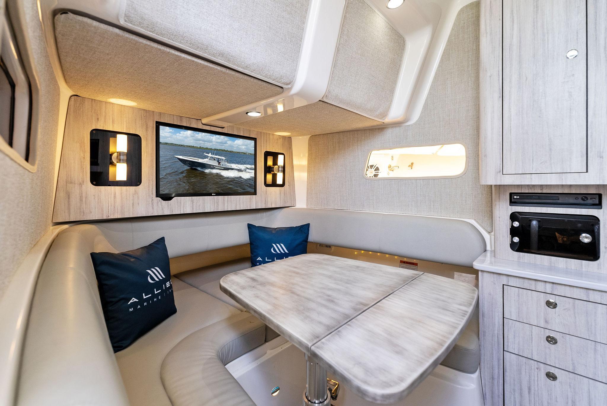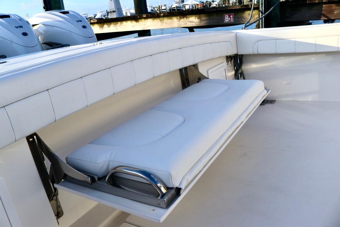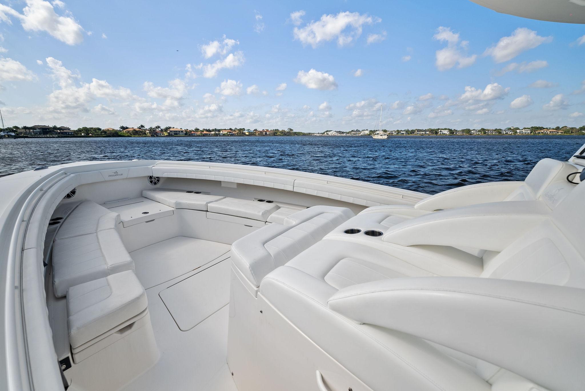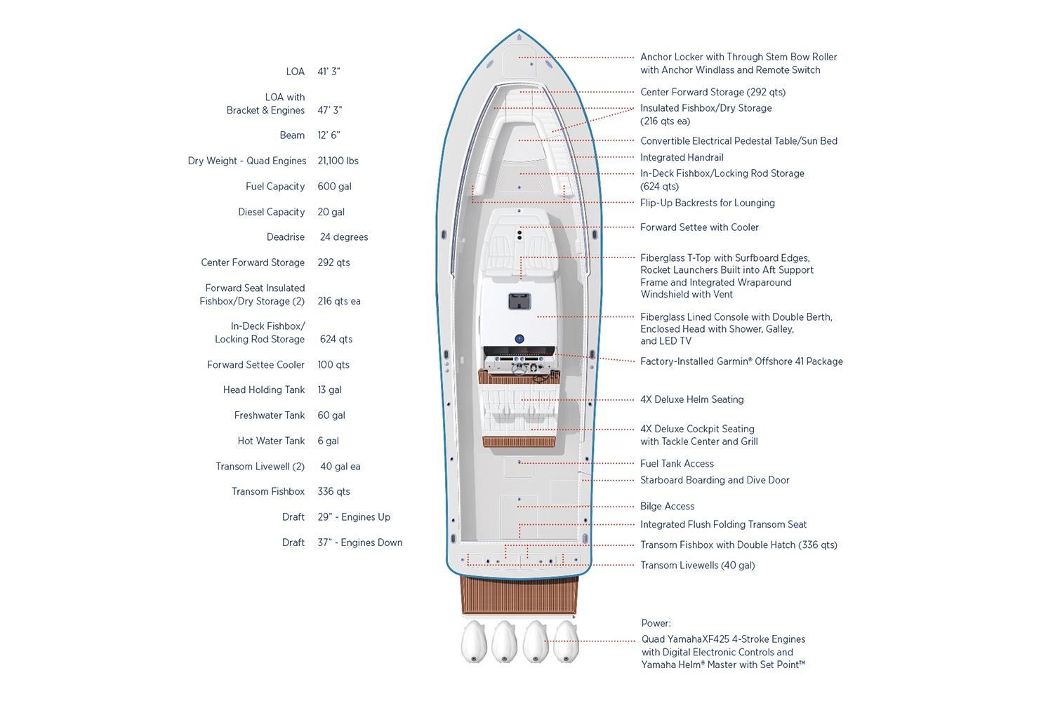 41 Regulator 2021 Seakeeper, Generator and Outboards recently serviced.MARCH 2025 - THE NAME HAS BEEN REMOVED AND A COMPLETE COMPOUND AND WAX WAS PERFORMED ON THE HULL.The Regulator 41, stands as the pinnacle of offshore performance, boasting quad Yamaha 425 engines and the cutting-edge Helm Master® EX system, supported by the Seakeeper® 5 stabilization system. This combination guarantees unmatched capability for all your offshore excursions. The Offshore Command Center is equipped with a Garmin® Multi-Function Display featuring Digital Switching, paired with the Regulator MyHelm™ interface for effortless control over lighting and batteries—all accessible with a convenient wireless key fob. She is engineered for serious fishing and family enjoyment alike. Its integrated wraparound windshield ensures total protection at the helm, while the aft mezzanine seat, prep and tackle center, and overhead SureShade® enhance your cockpit experience. For avid anglers, the optional outrigger bases with 22' carbon fiber poles, along with generous livewell and fish box capacity, provide the ultimate fishing advantage. Additional standout features include a hull dive door with an in-deck swim ladder, twin 40-gallon transom livewells, an air-conditioned helm, and a sophisticated cabin with a fully equipped galley, convertible dinette, and enclosed head/shower. In summary, she redefines offshore excellence, integrating powerful engines, state-of-the-art technology, and luxurious amenities for an unparalleled offshore experience.