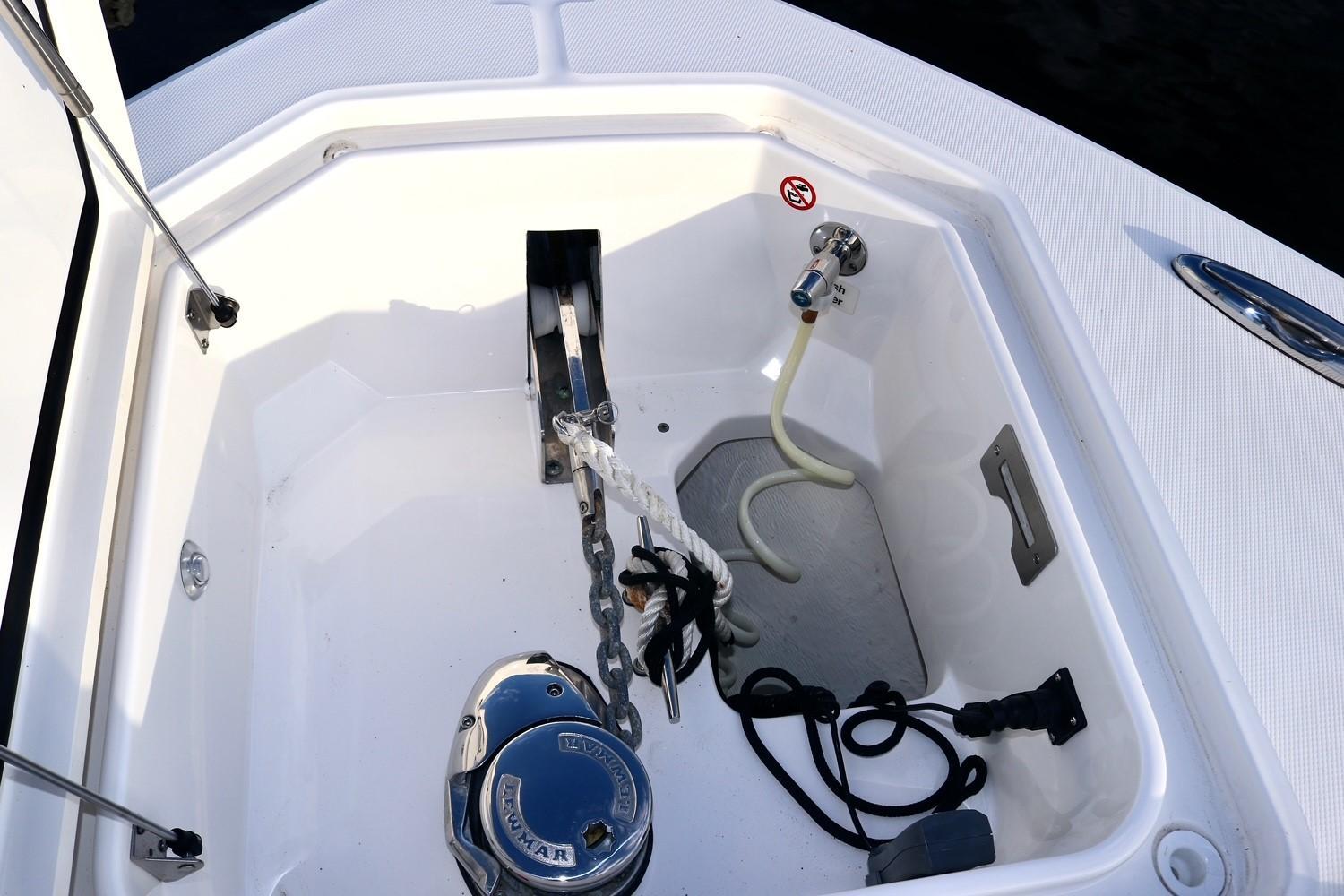 - Through Stem Bow Roller with Anchor Windlass in Forward Deck Anchor Locker, Remote Switch, Chain, Anchor, and Freshwater Wash Down