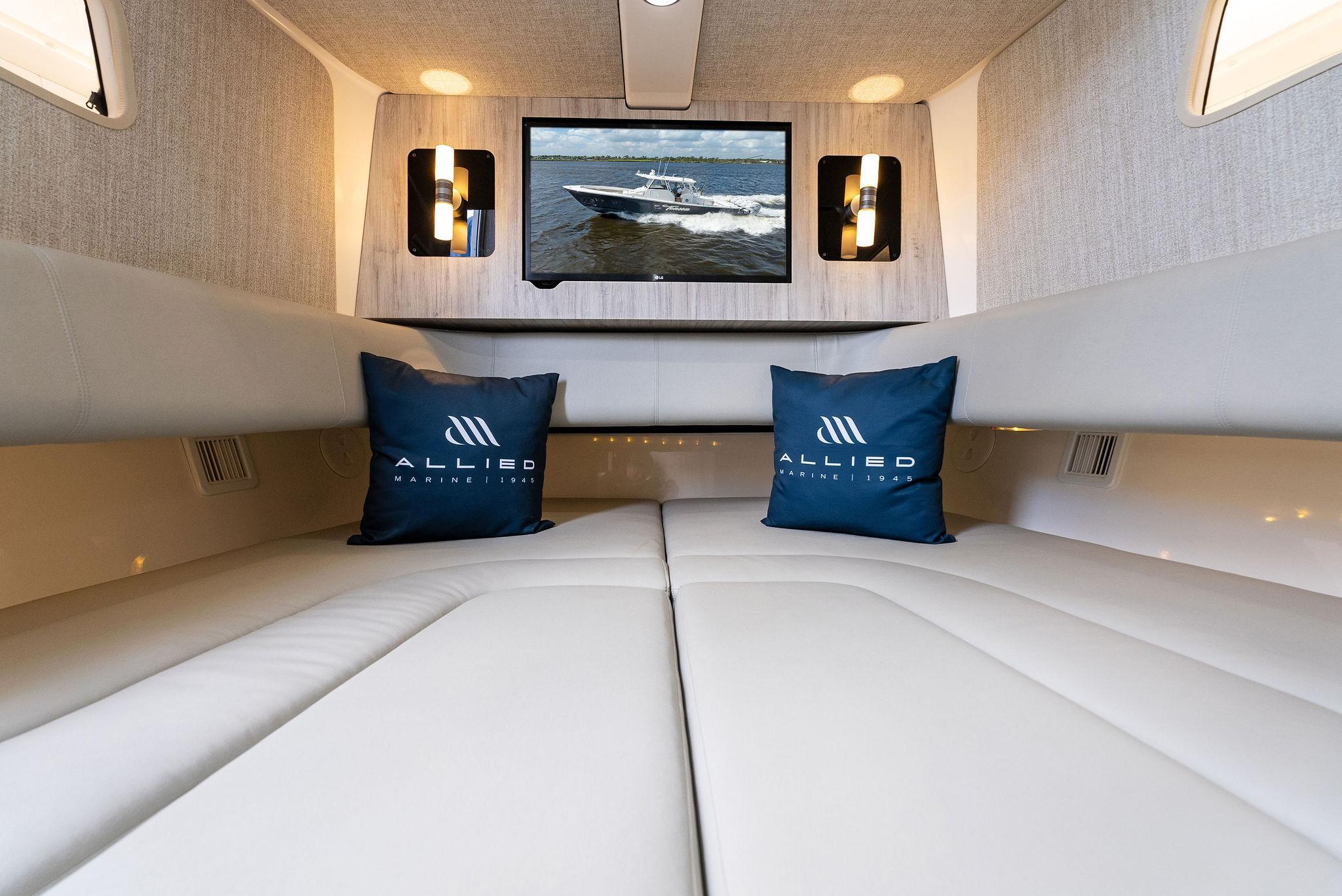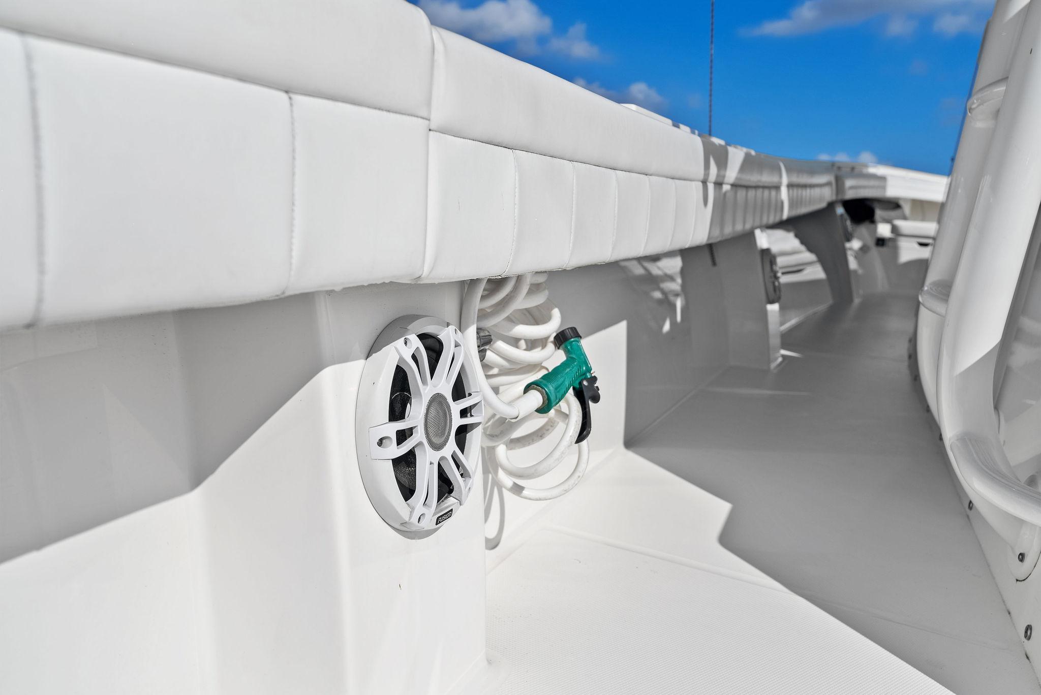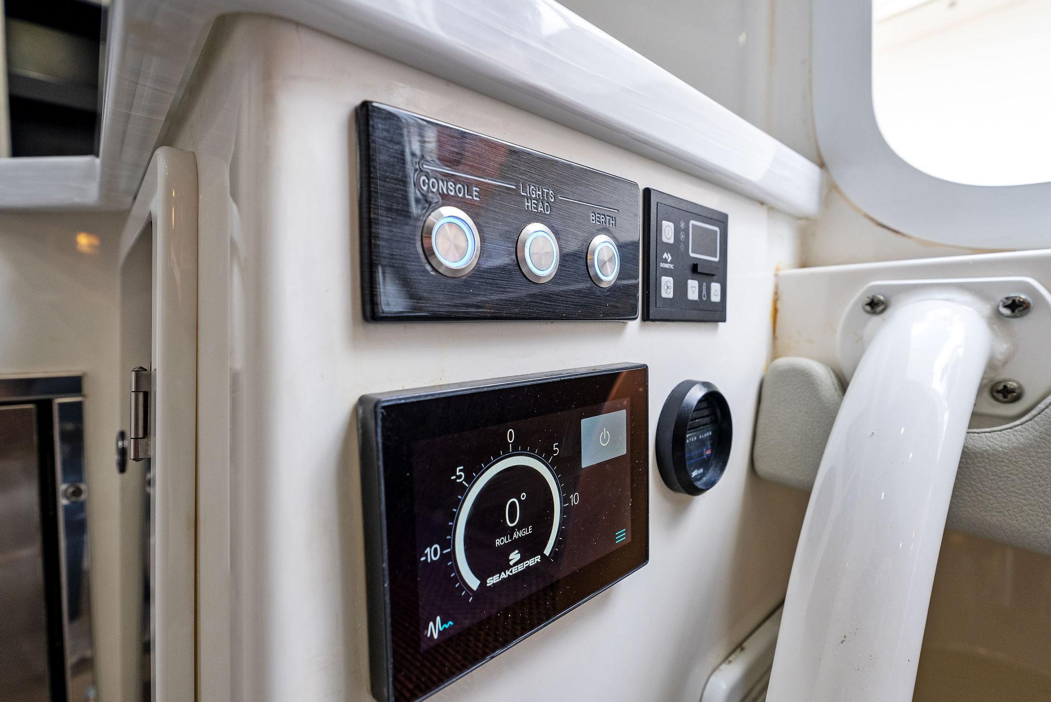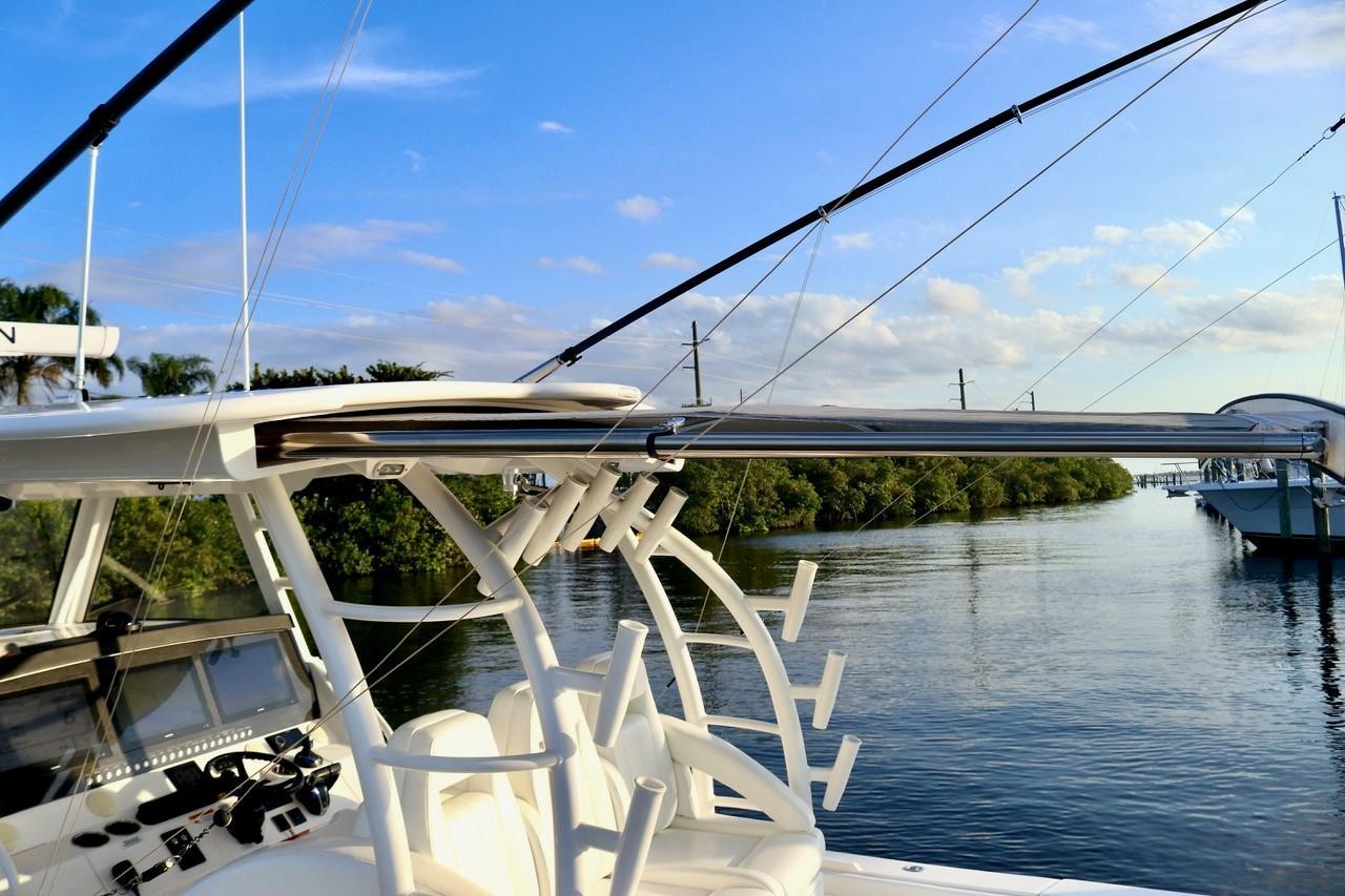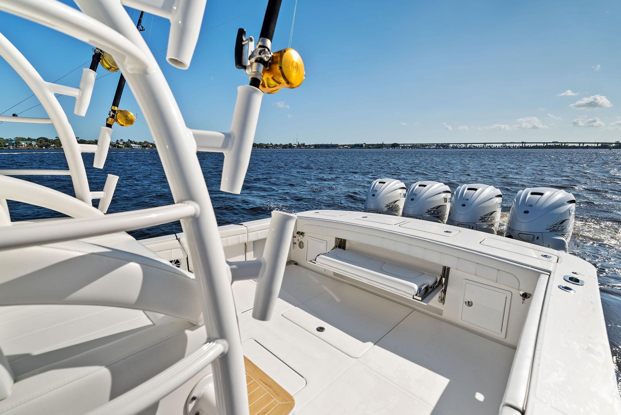 - Factory-Installed Garmin® Offshore 41 Package: Triple 17’’ GPSMAP® 8617 Multi-Touch Widescreen Chartplotter/Sonar Displays, VHF 215 AIS Radio with 8’ Digital VHF Antenna, GMR™ 1224 xHD2 12kW Open-Array Radar, Airmar® B275LHW with Wide Beam 1kW CHIRP Transducer, and Reactor Steer-by-Wire Autopilot, Plus Black Flushmount Electronics Face and Mic Relocation Kit