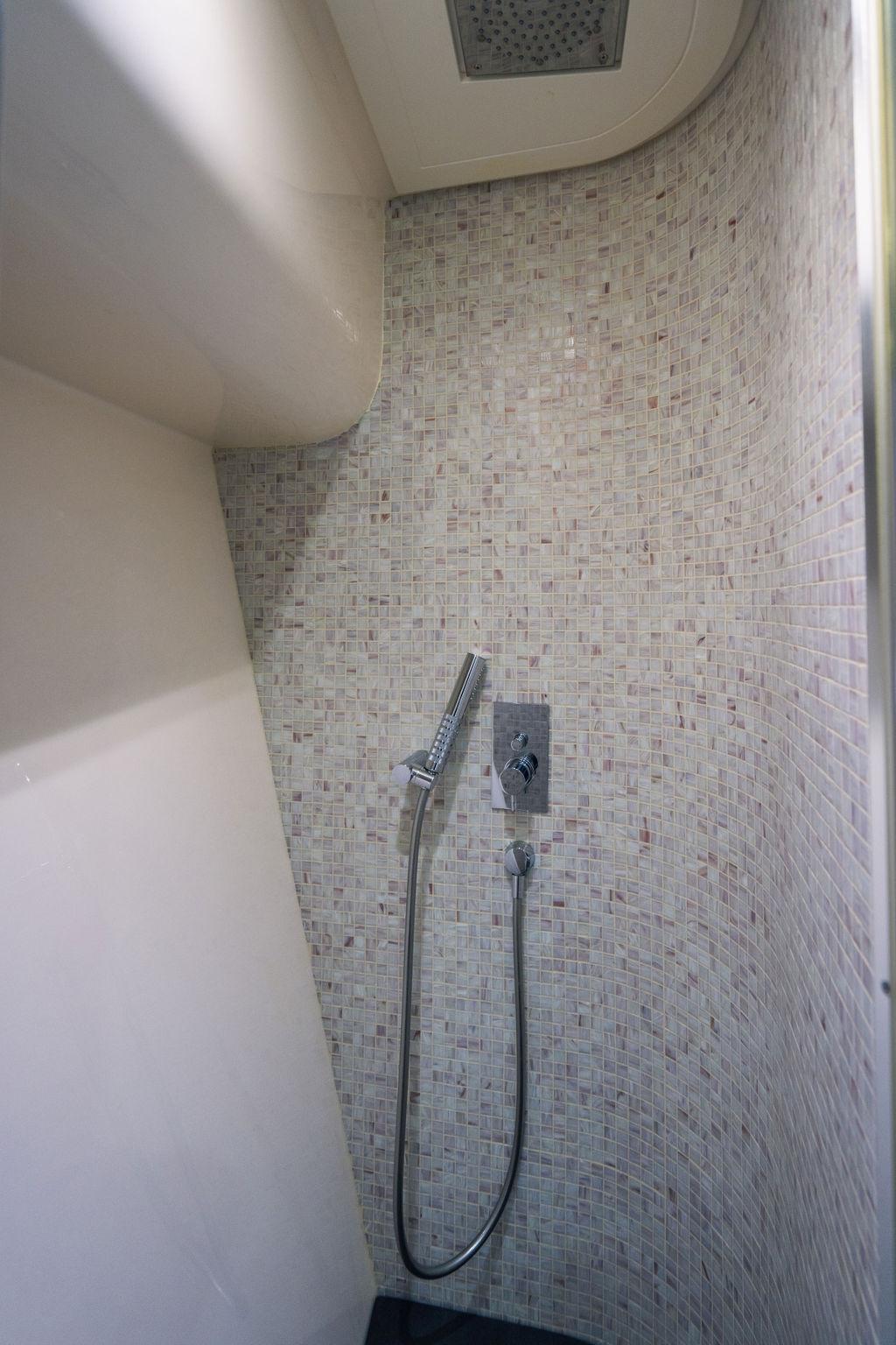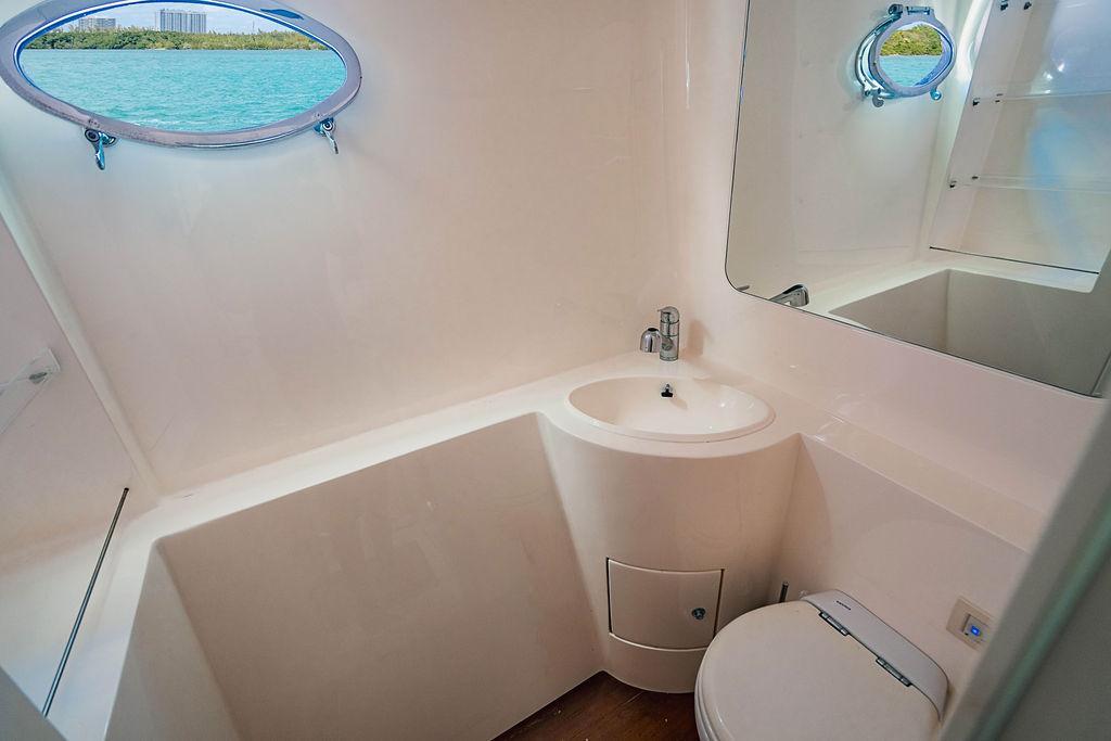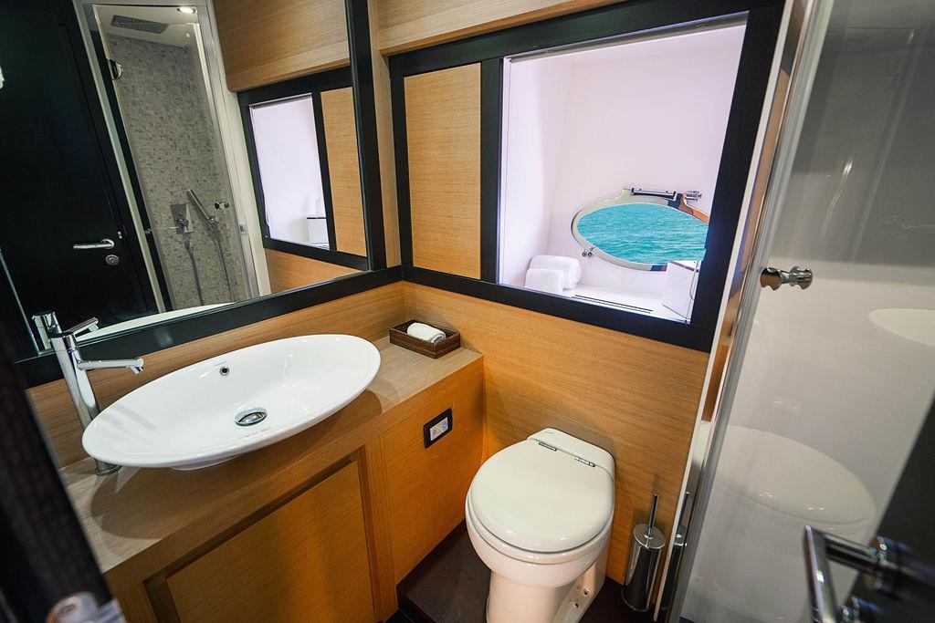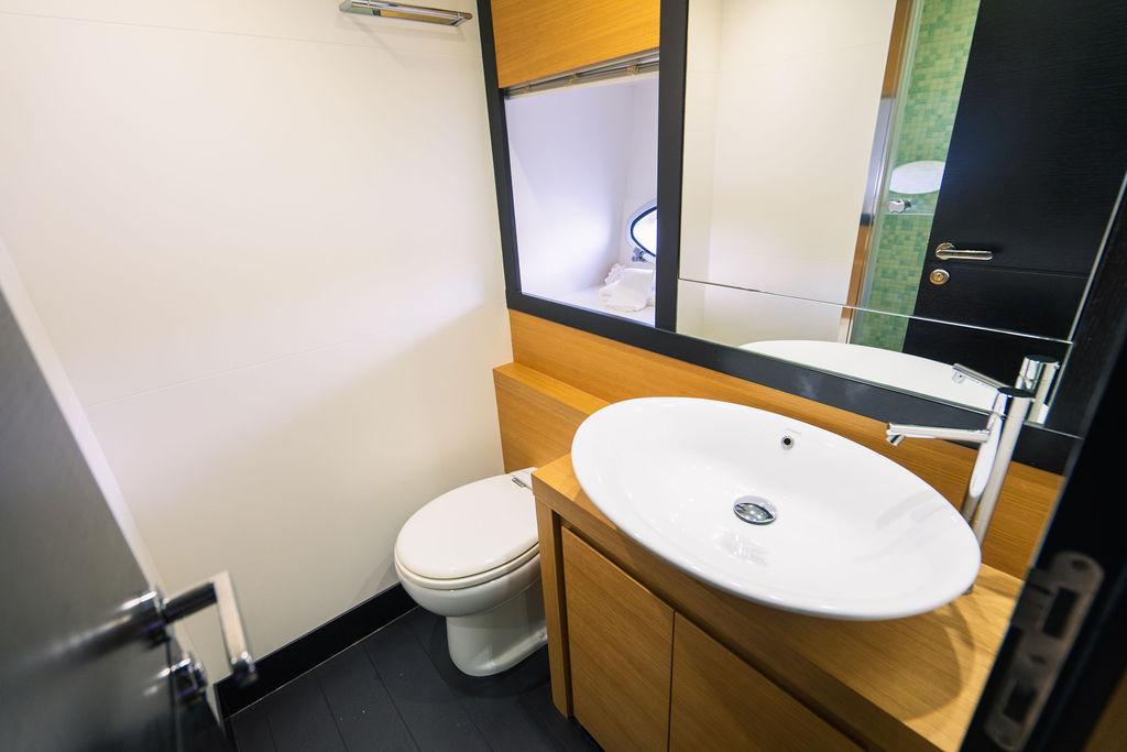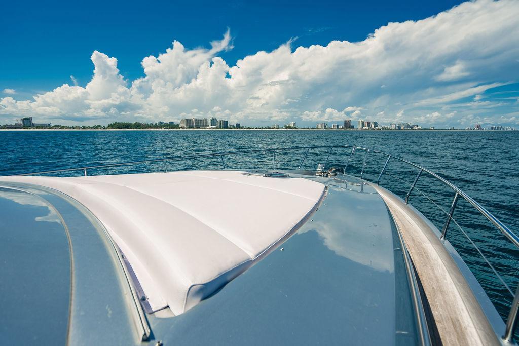 Areas of the deck such as: the bow area, side decks and cockpit are covered with anti-slip finish or polished gelcoat such as hull and superstructure.