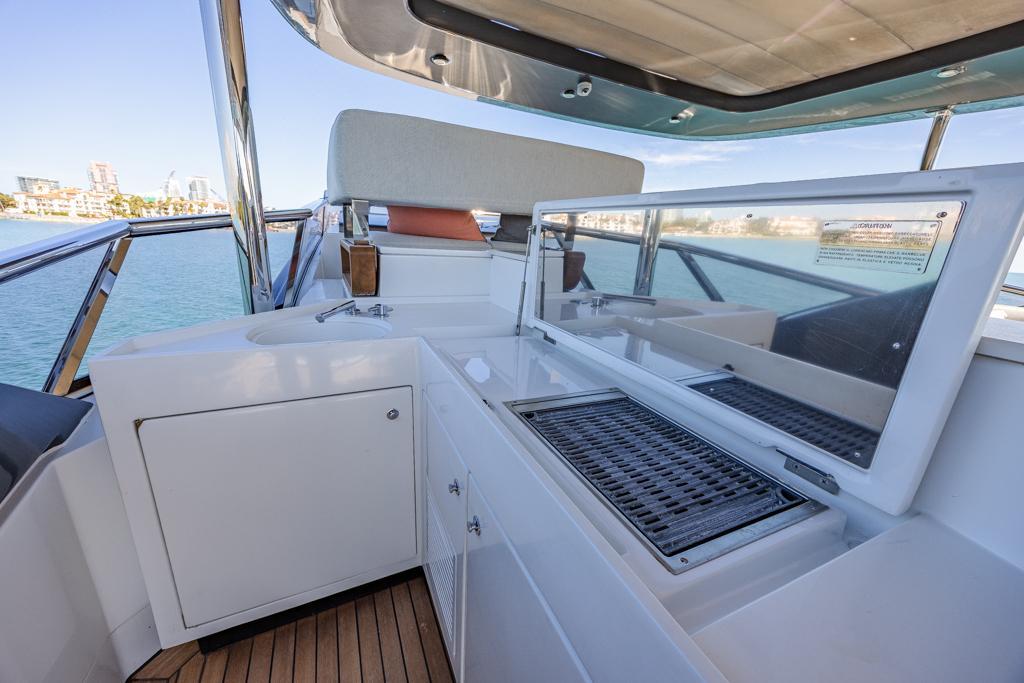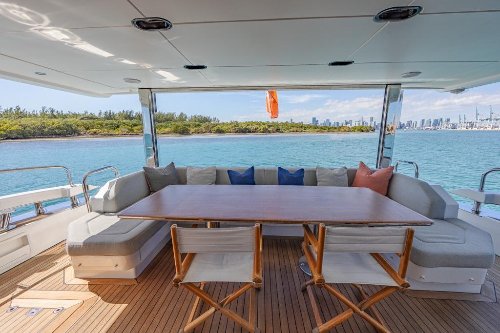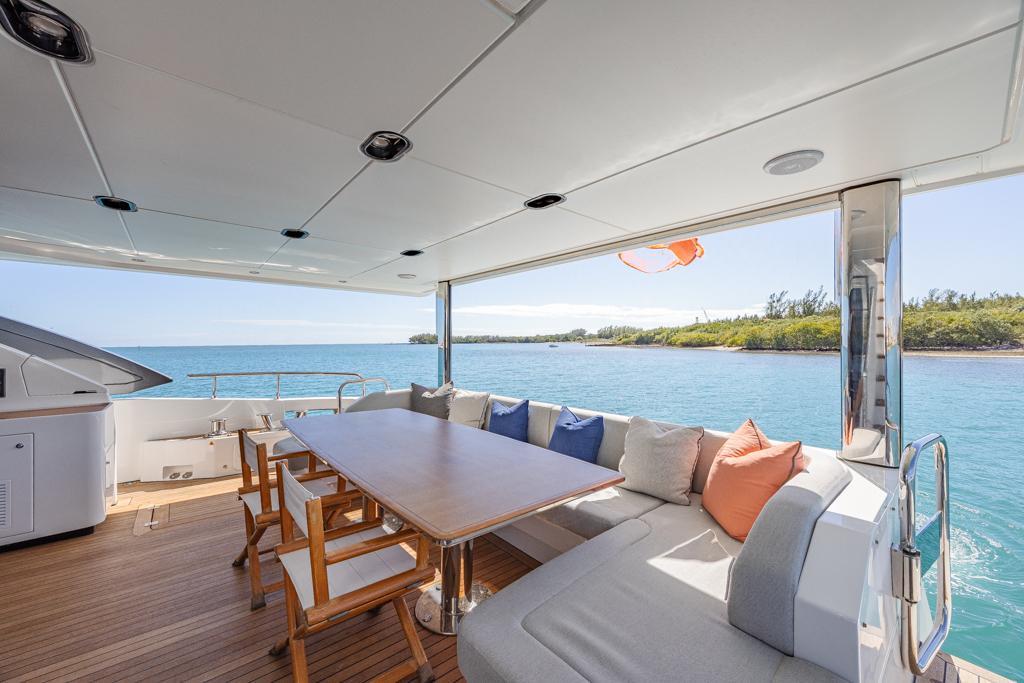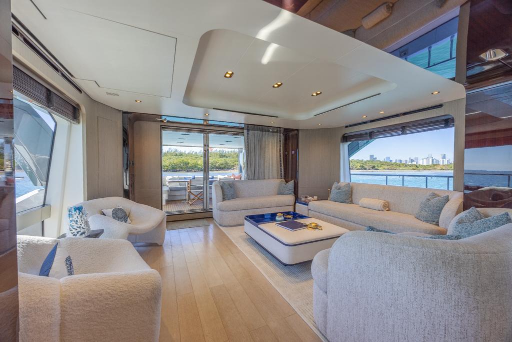 LIFESTYLE & AMENITIESMultiple outdoor spaces, including a spacious flybridge with lounge areas, a bar, and a jacuzzi, offer the ultimate in relaxation.