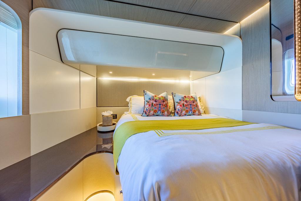 Accommodates up to 10 guests in 5 staterooms, including a full-beam, main-deck owner’s suite with private access and luxurious ensuite facilities.