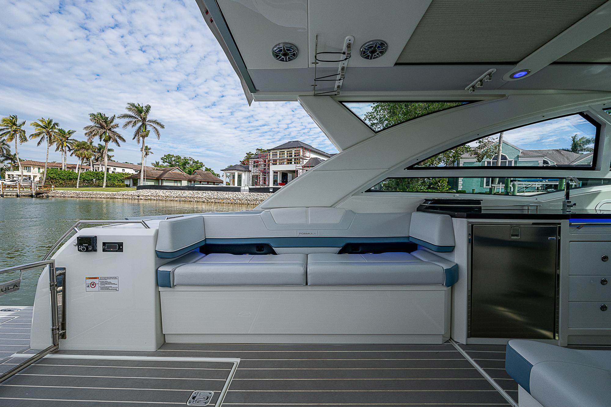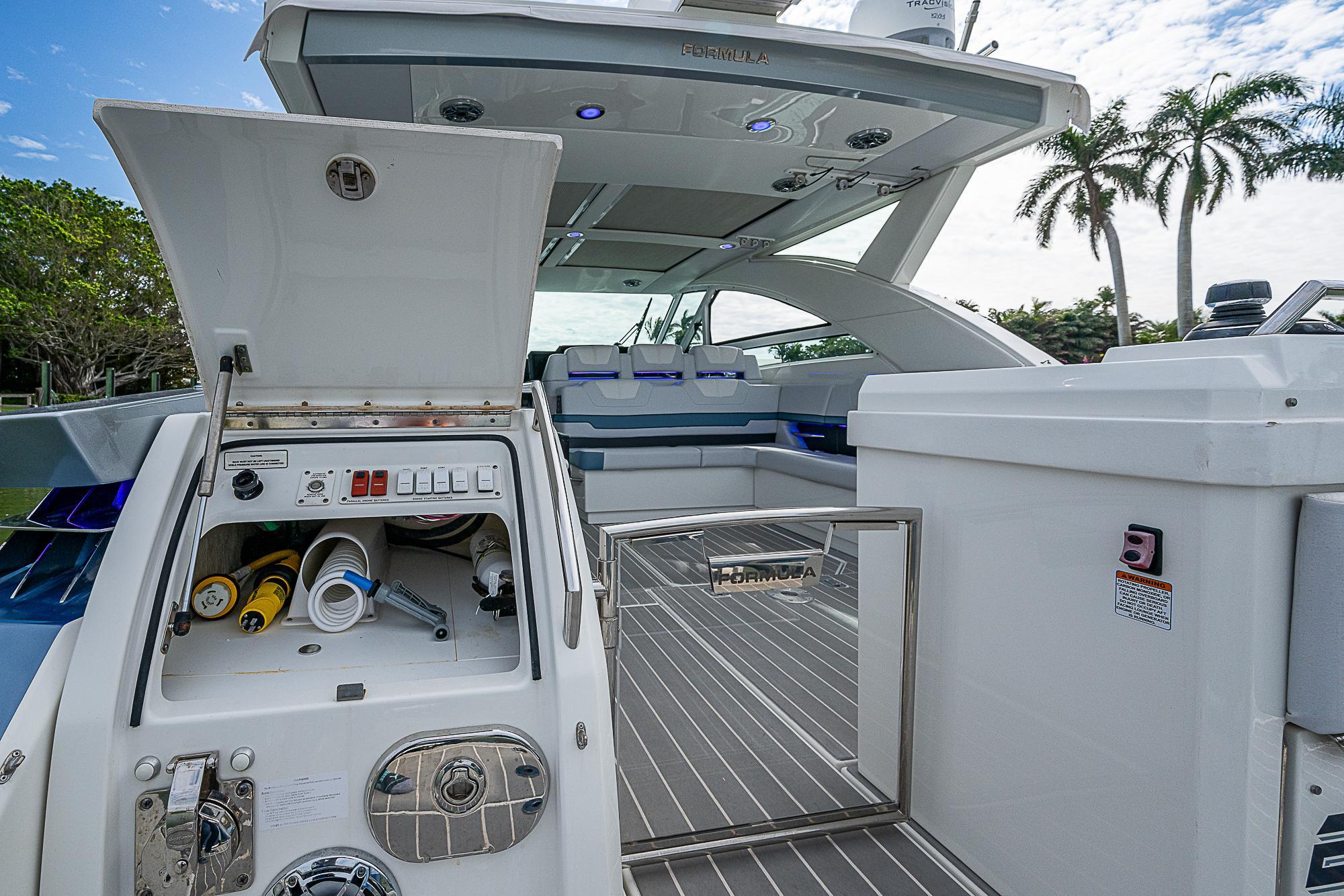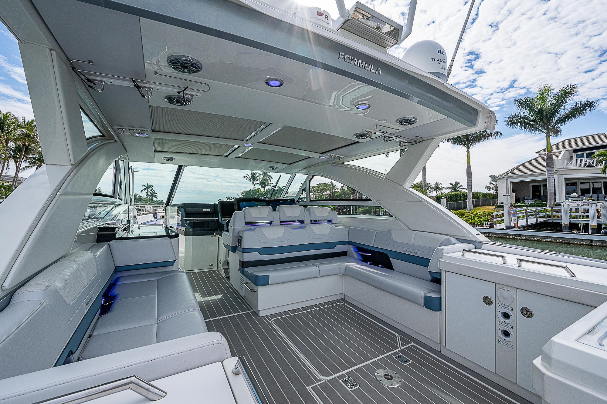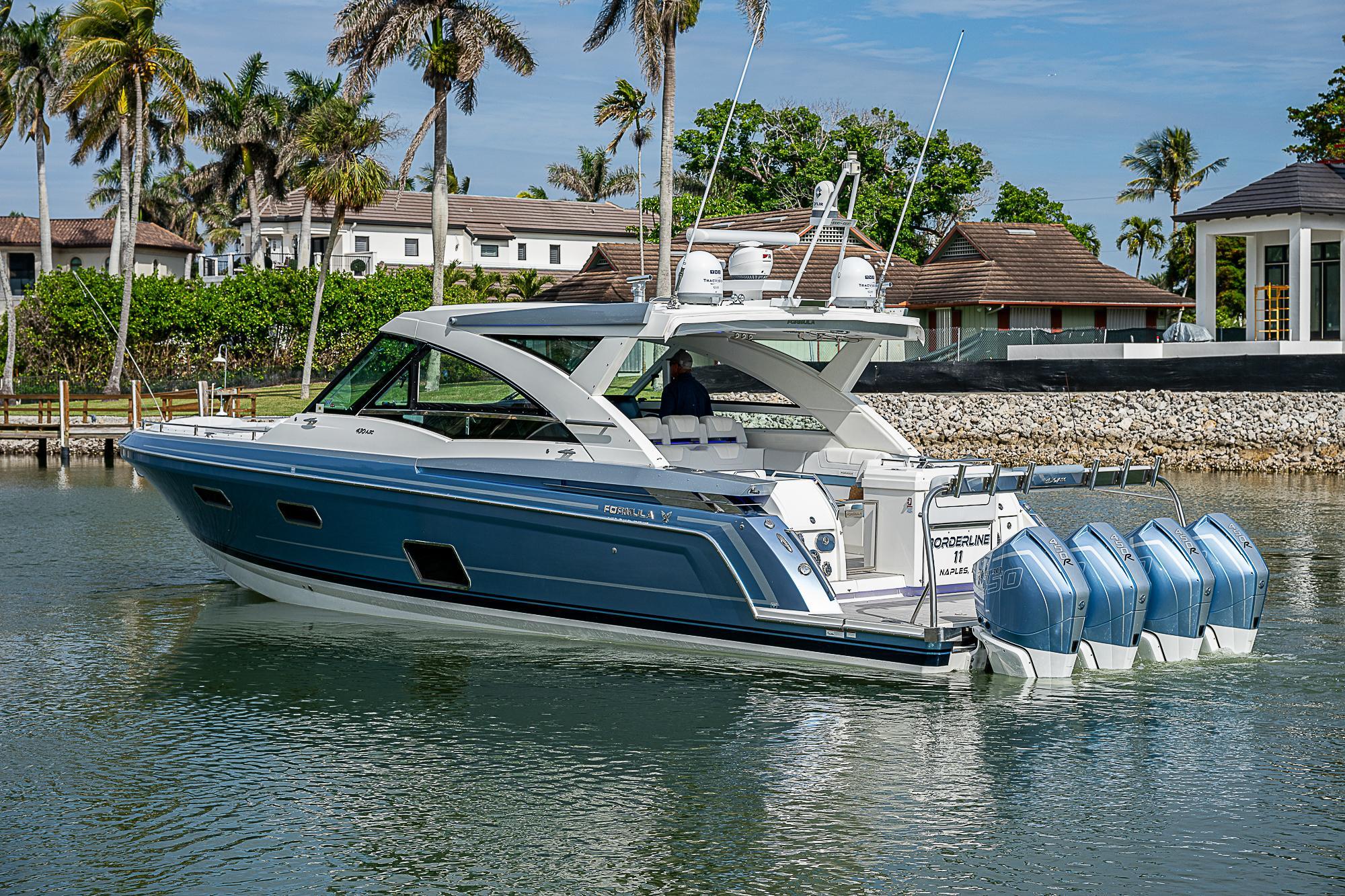 The Formula 430 All Sport Crossover is the latest of the revolutionary 430 Super Sport Crossover. True to the Formula Crossover mission of providing a platform where boaters truly can have the best of all worlds, the 430 ASC is an unprecedented fusion of dayboat versatility, overnight capabilities and sporting accommodations, where playing hard no longer means hard work or compromise for anyone aboard. At 43’ in length with a 12’ beam, the 430 ASC retains all of the SSC’s comfort amenities forward with a generous shot of offshore adventure aft.Borderline 11 is the most optioned out 430ASC on the market today. She has only 190 original hours on the Quad Mercury 450R's .........Custom paint, upgraded electronics, SeaKeeper 6 Gyro stabilization, and lift stored with an open checkbook mentality. If you are in the market for a high performance midsize cruiser that fishes as well as it entertains, this set up is for you. The owner has recent taken delivery of his new boat and ready to make a deal.