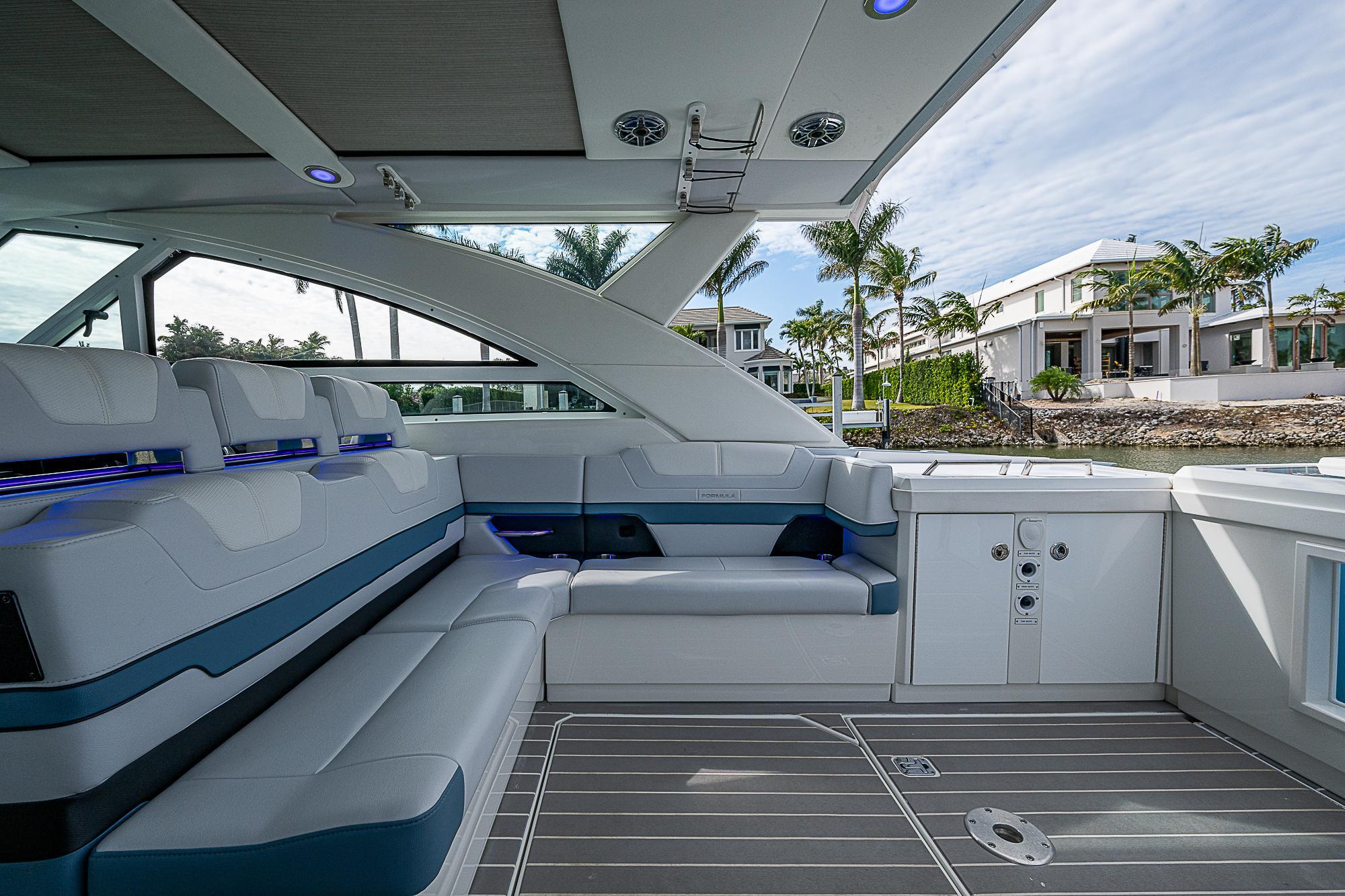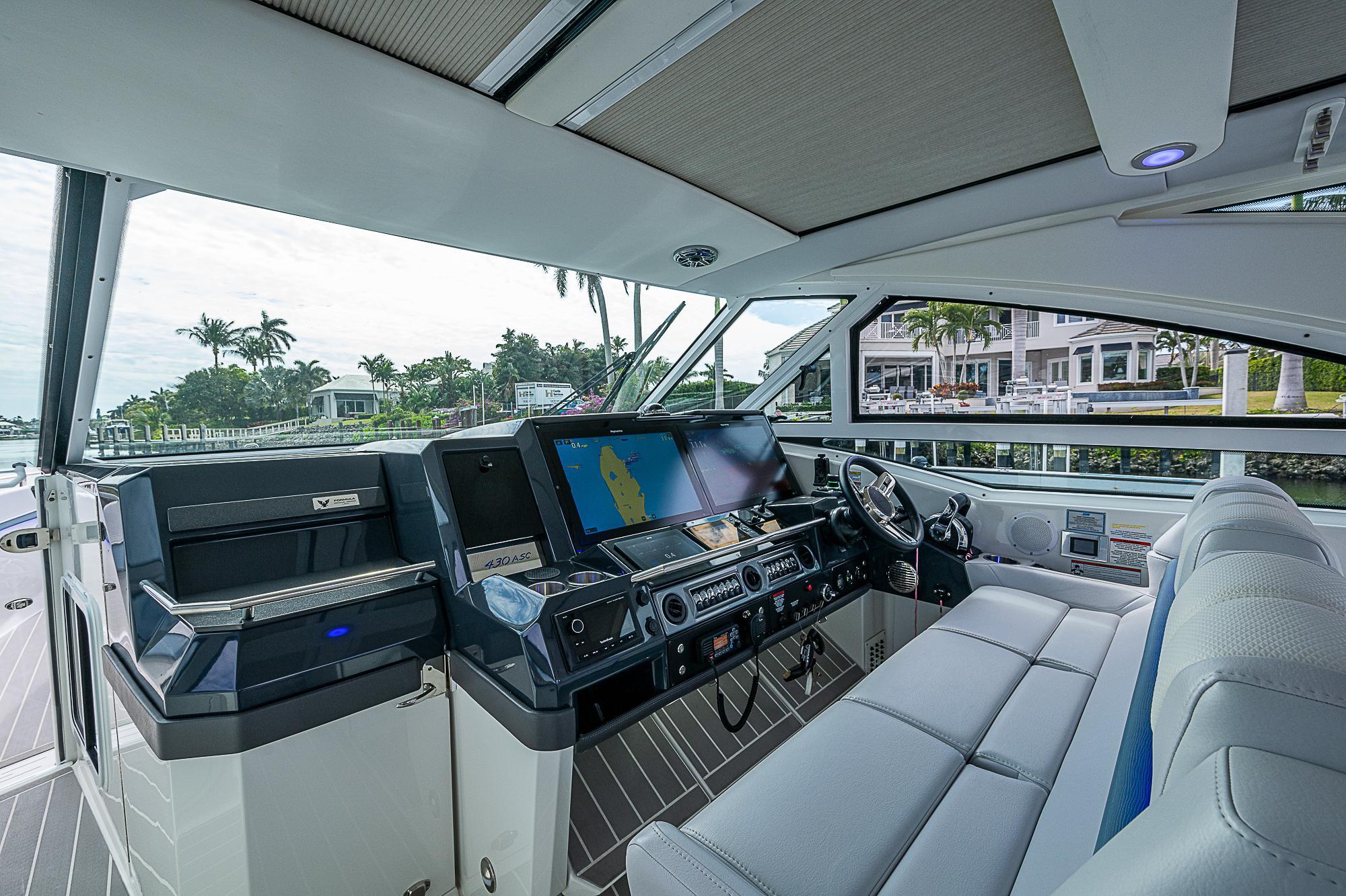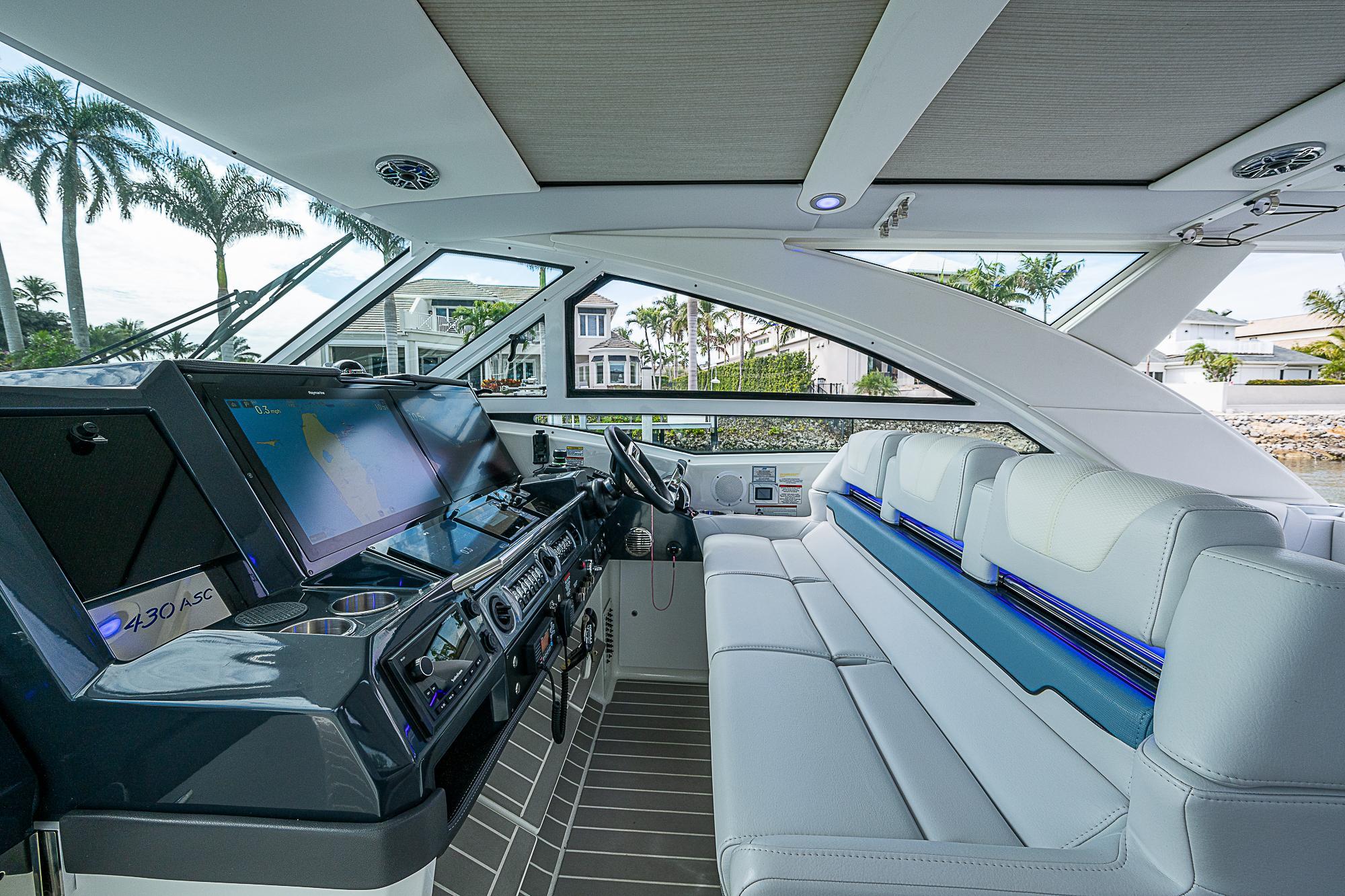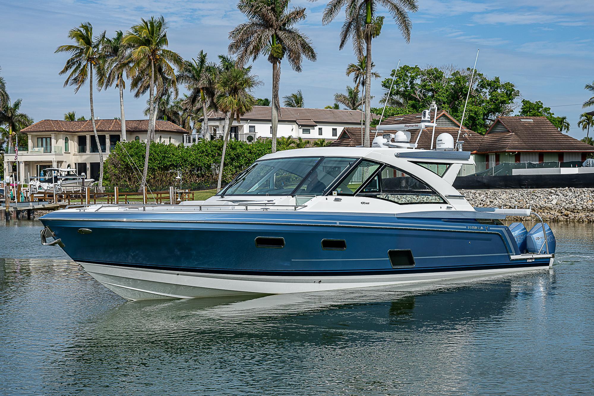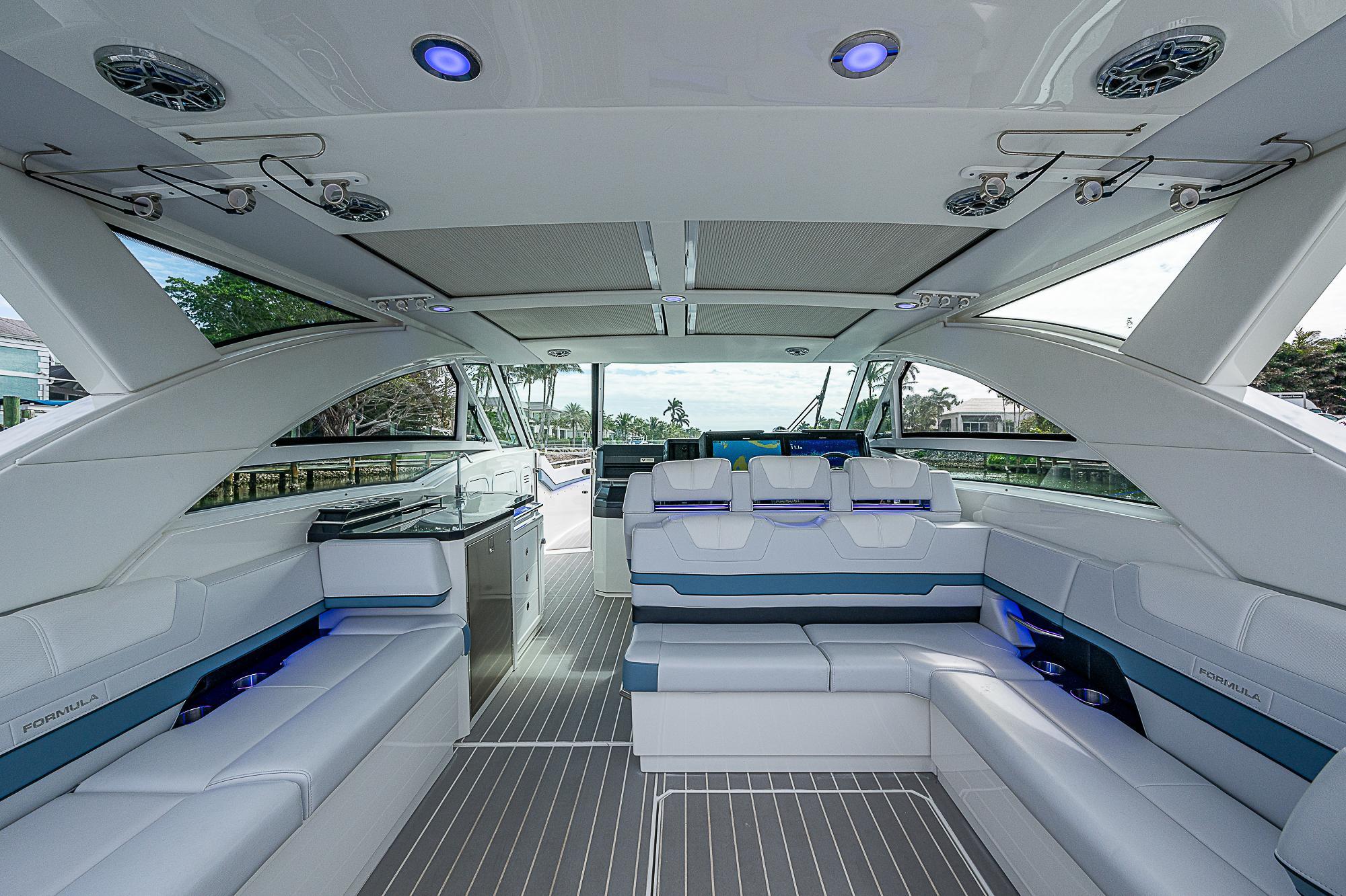 The Formula 430 All Sport Crossover is the latest of the revolutionary 430 Super Sport Crossover. True to the Formula Crossover mission of providing a platform where boaters truly can have the best of all worlds, the 430 ASC is an unprecedented fusion of dayboat versatility, overnight capabilities and sporting accommodations, where playing hard no longer means hard work or compromise for anyone aboard. At 43’ in length with a 12’ beam, the 430 ASC retains all of the SSC’s comfort amenities forward with a generous shot of offshore adventure aft.Borderline 11 is the most optioned out 430ASC on the market today. She has only 190 original hours on the Quad Mercury 450R's .........Custom paint, upgraded electronics, SeaKeeper 6 Gyro stabilization, and lift stored with an open checkbook mentality. If you are in the market for a high performance midsize cruiser that fishes as well as it entertains, this set up is for you. The owner has recent taken delivery of his new boat and ready to make a deal.